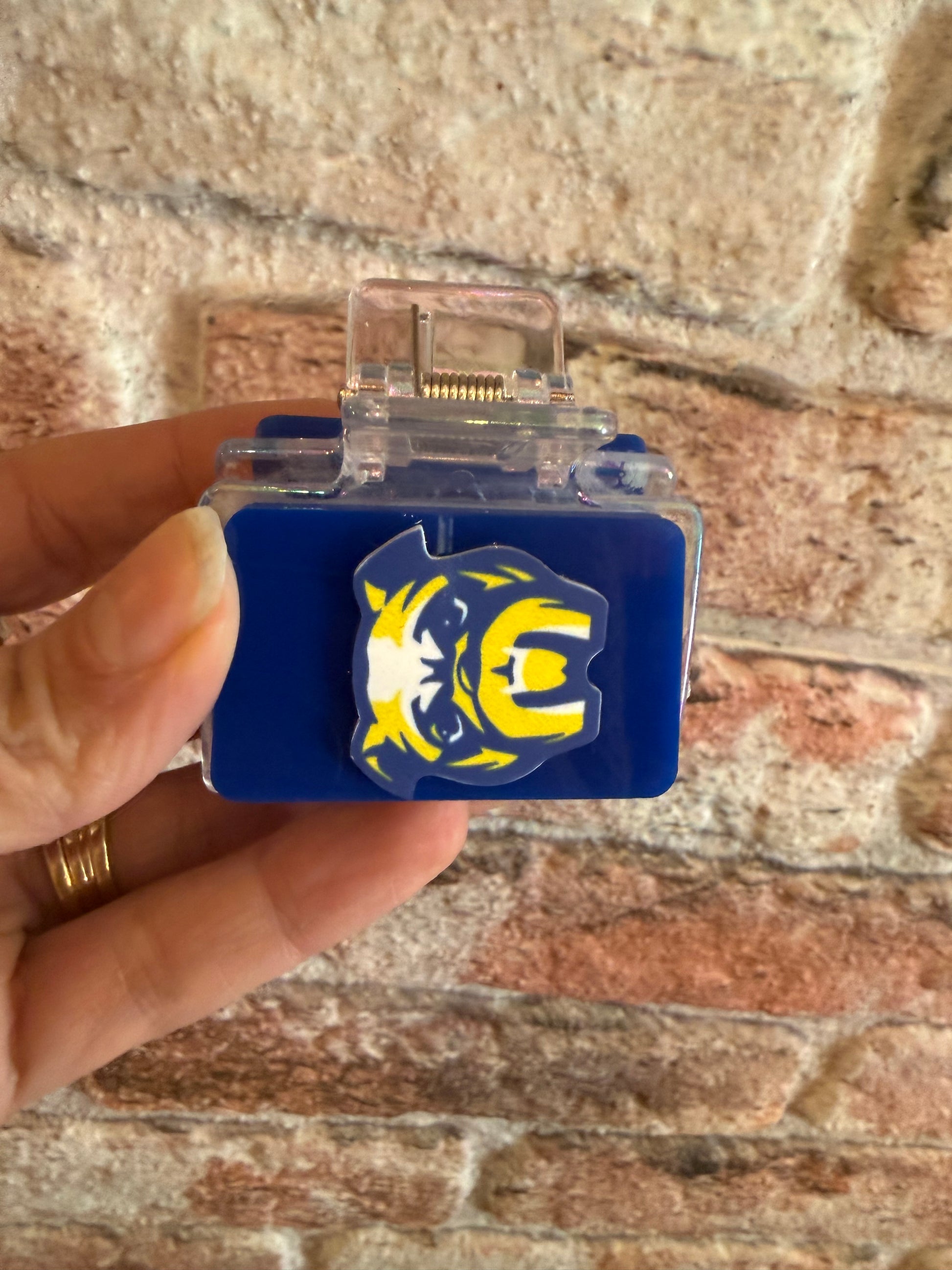 Amp up your 'do with these stylish custom Hair Claw Clips! This small clip (around 2" long) features an acrylic base with a laser cut and printed logo or mascot.