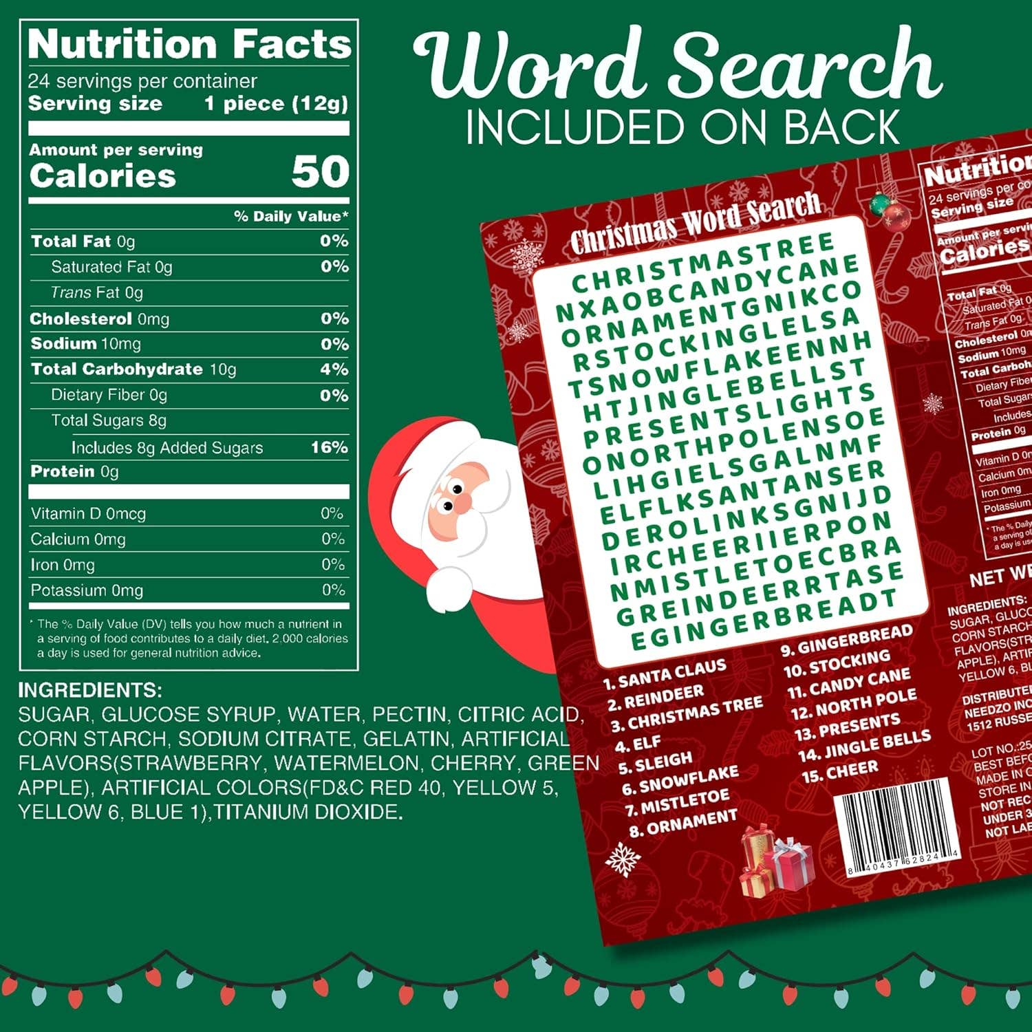 Includes assorted gummies in strawberry, cherry, green apple, and watermelon flavors