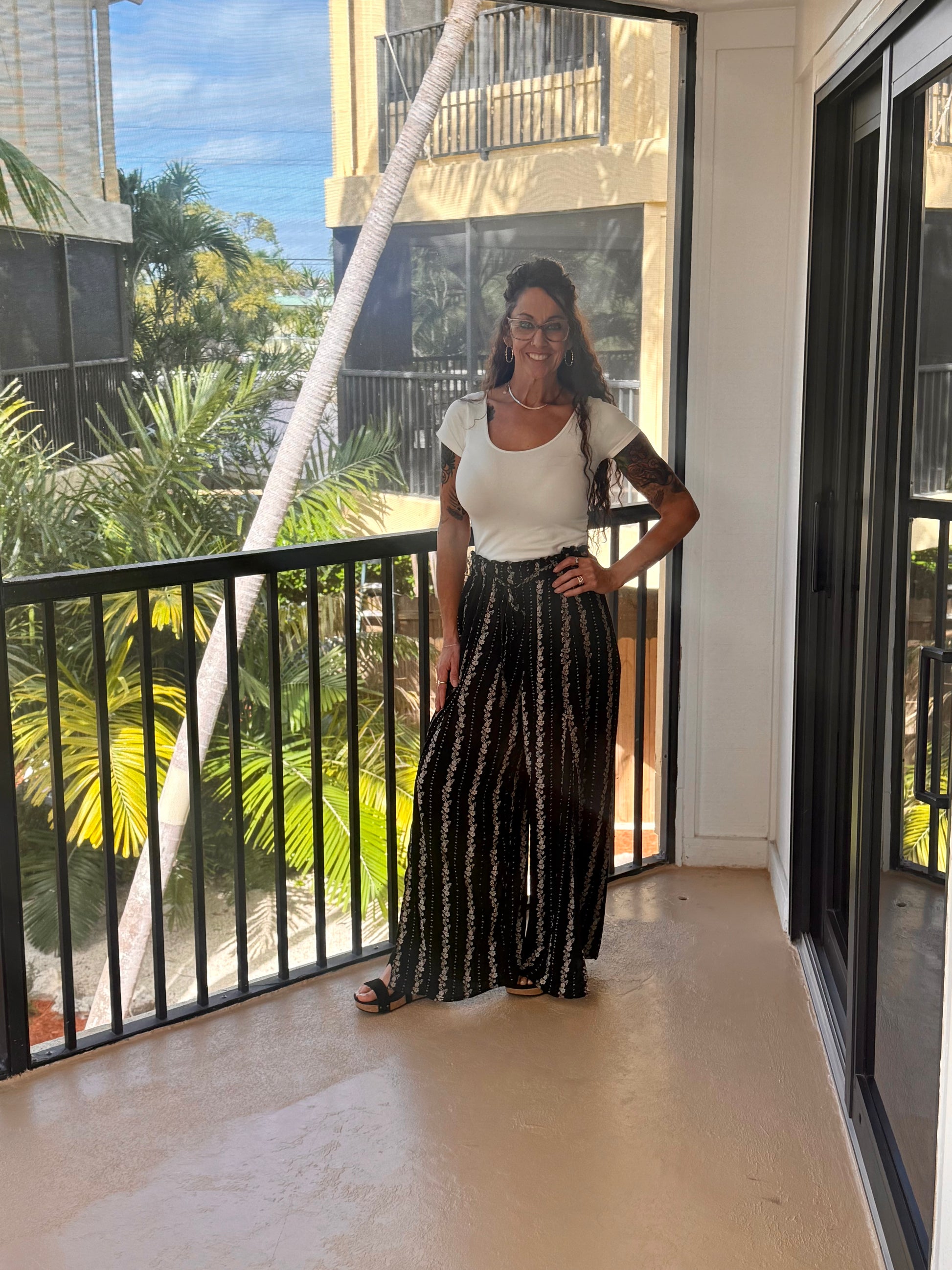 Key Largo Black High Waisted SLIT FRONT WIDE LEG PANTS: BLACK
