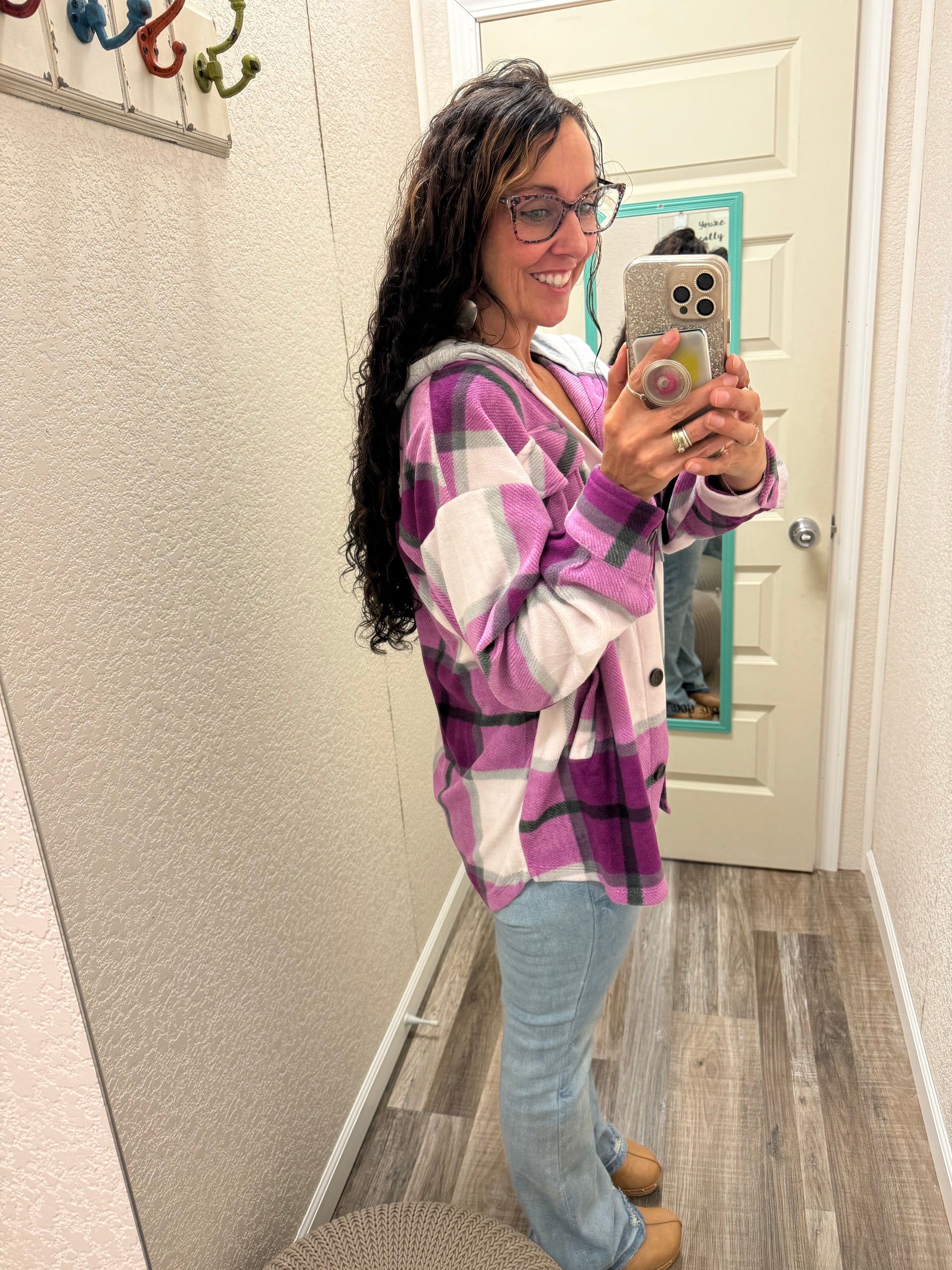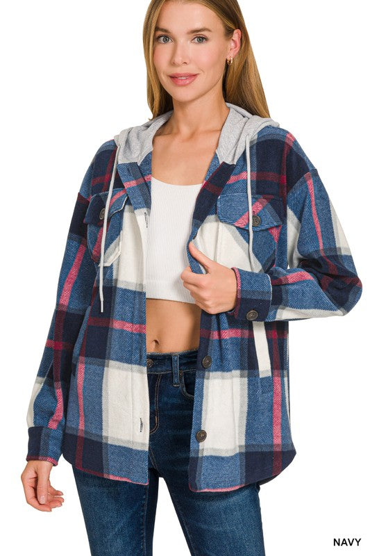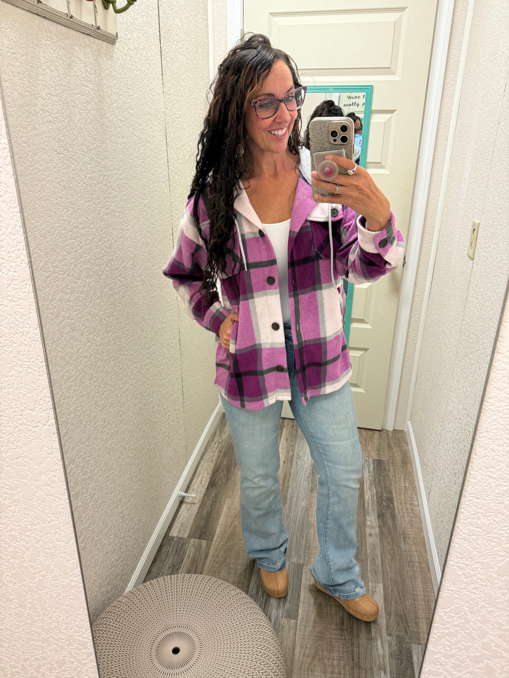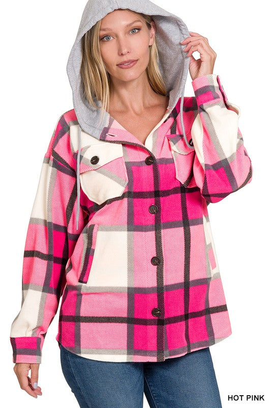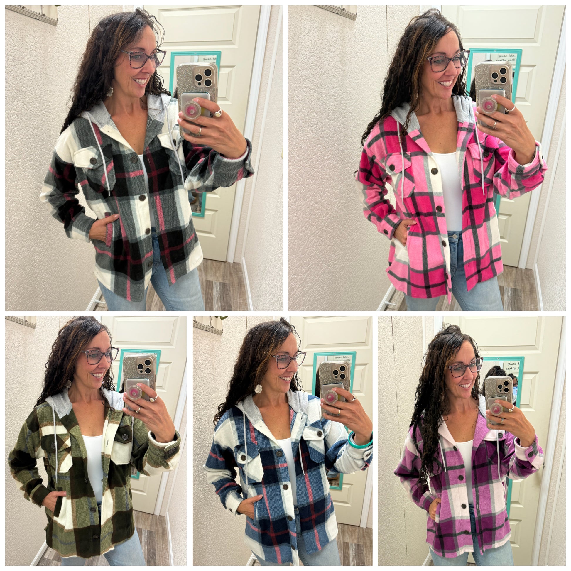 Expertly crafted with a stylish plaid design, this Plaid Fleece Shacket is the perfect combination of fashion and functionality. The hood and drawstring provide added protection from the elements, while the soft fleece material keeps you warm and cozy. Stay on trend and stay warm with this must-have jacket.
