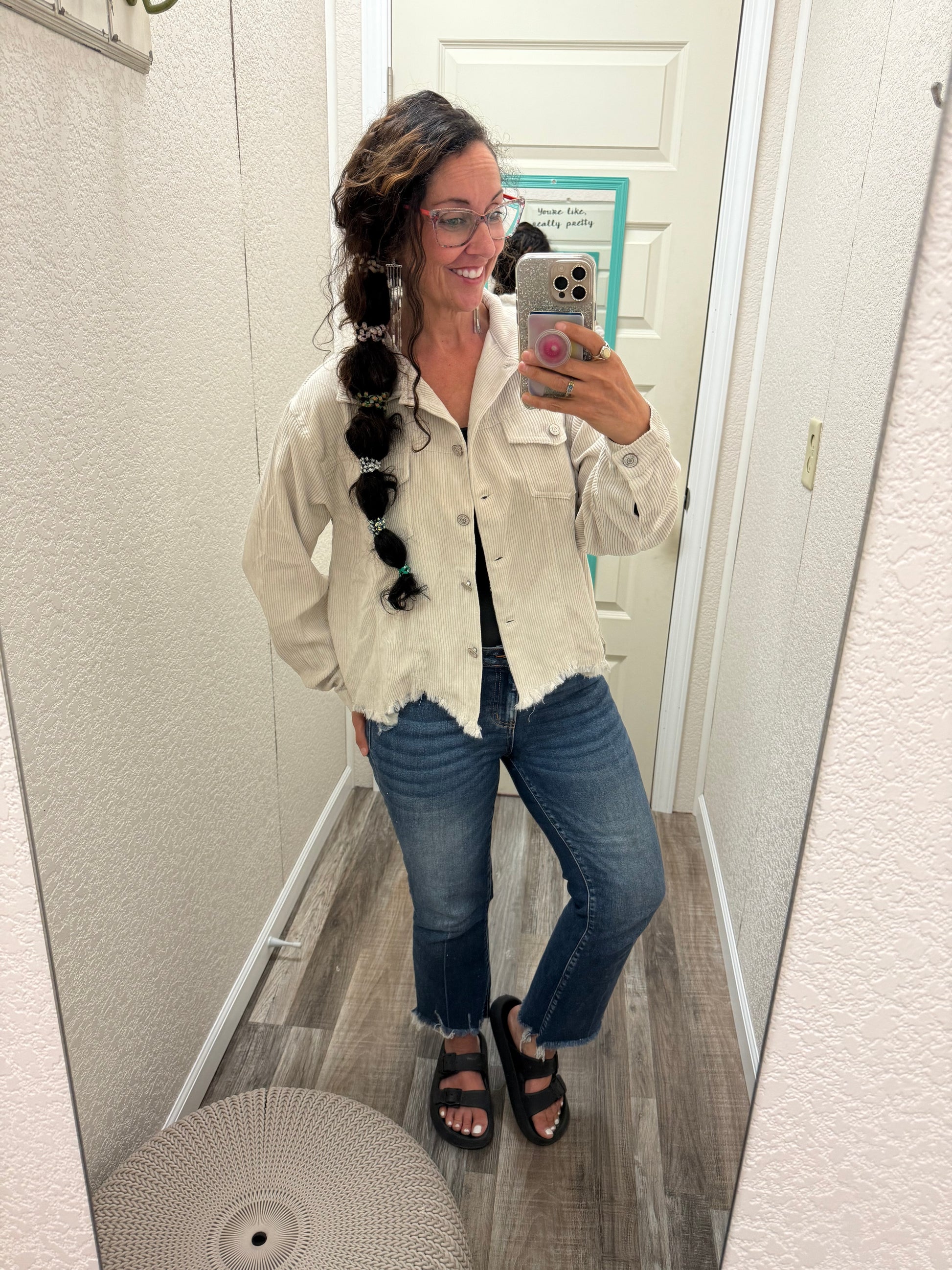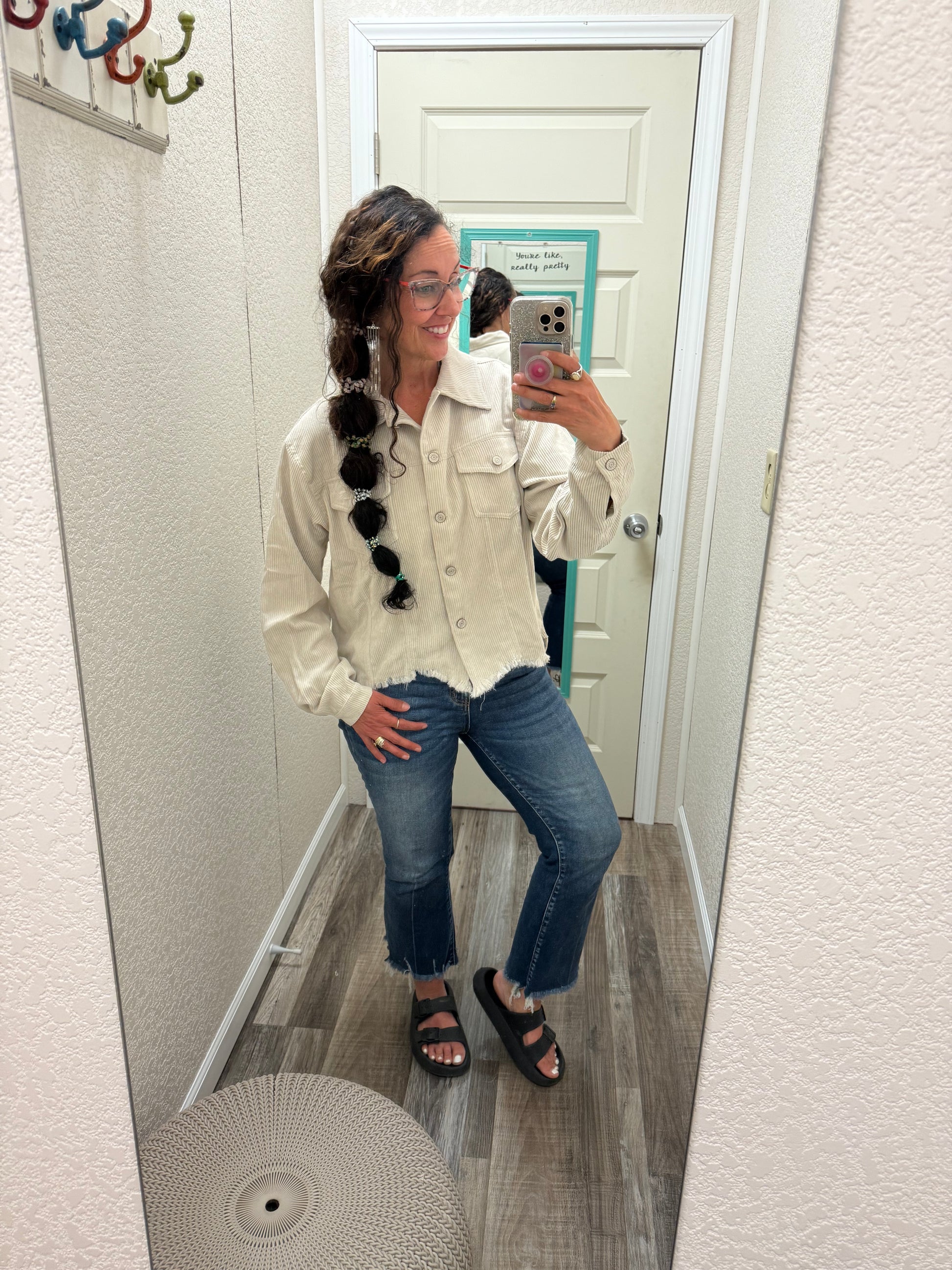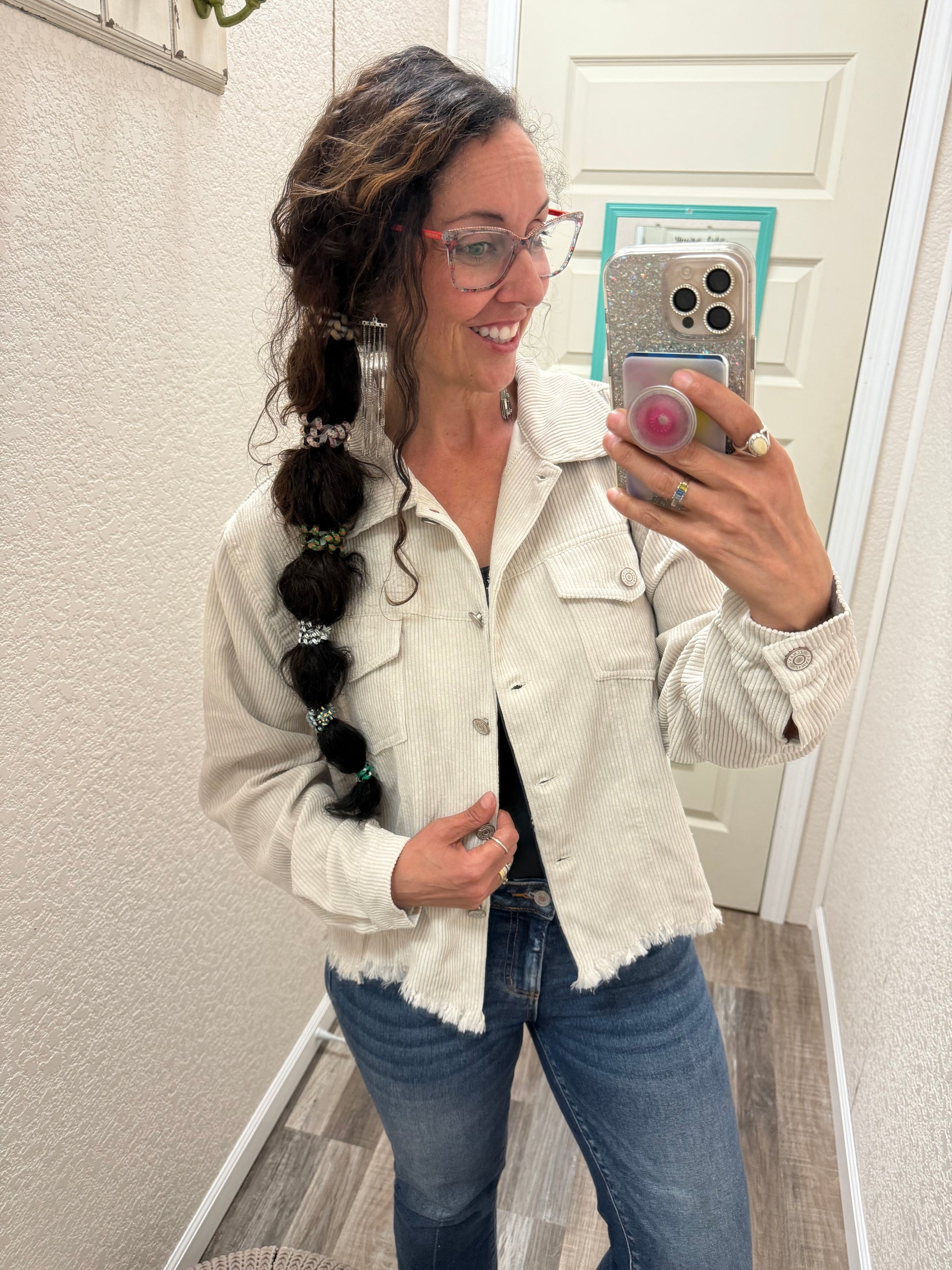 The Britt Distressed Corduroy Cropped Jacket exudes a rugged, yet chic style with its distressed frayed hem and cracked corduroy material. Experience a unique and trendy look while staying comfortable and cool. Crafted with expert craftsmanship and attention to detail, this jacket is sure to elevate any outfit.