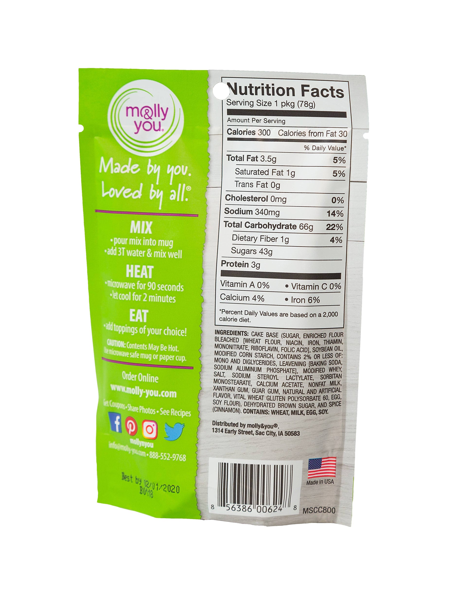 Brown sugar and cinnamon swirled in a rich vanilla mug cake. Just add water, stir and microwave.