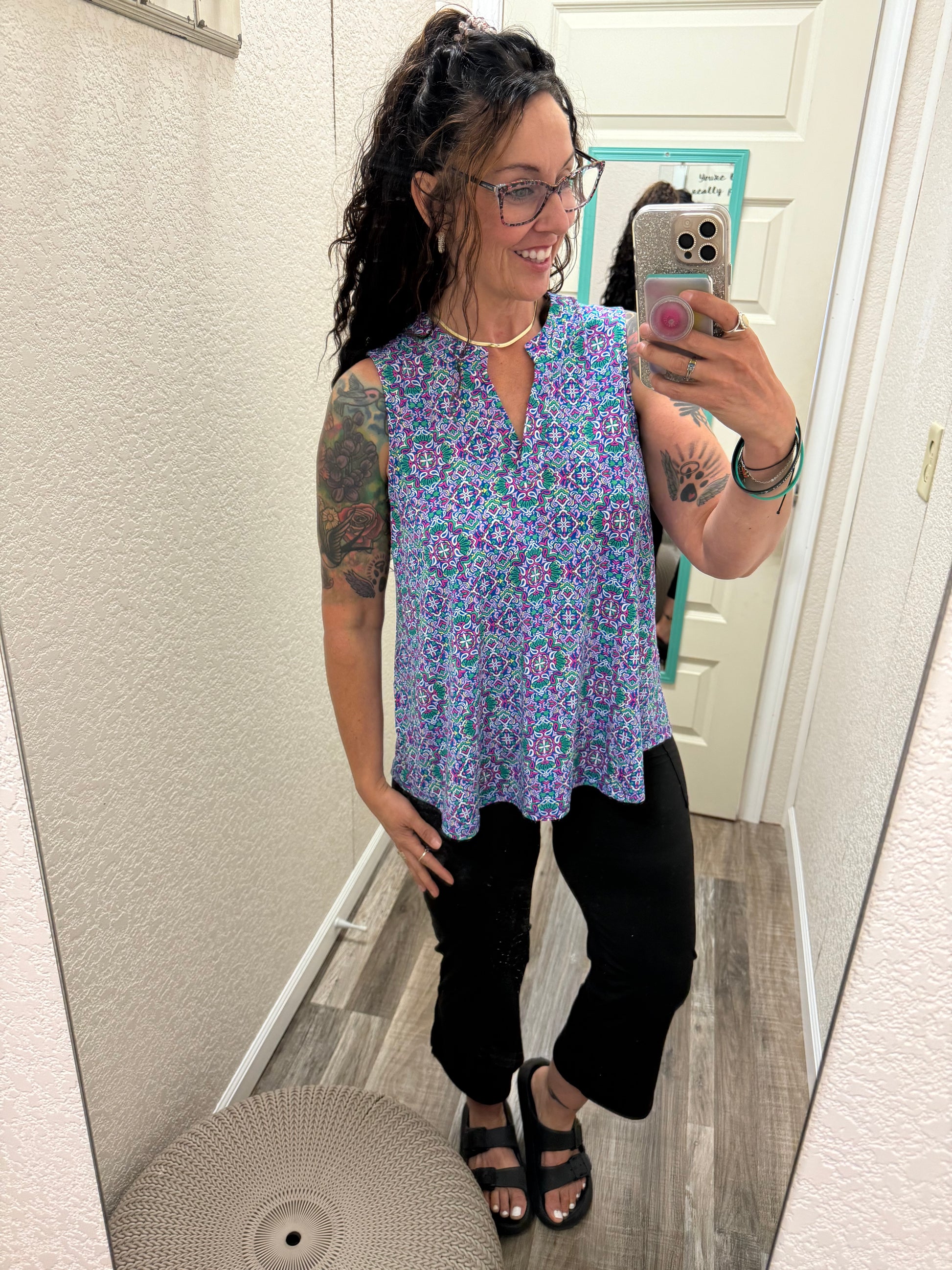 The Lizzy Tank is a must-have addition to any wardrobe. Its wrinkle-free fabric and relaxed stretchy fit make it perfect for any occasion. The A-line bodice and China collar split neckline add a touch of sophistication, while the easy flowy design ensures ultimate comfort. This versatile top is non-sheer and will become your go-to for any event.