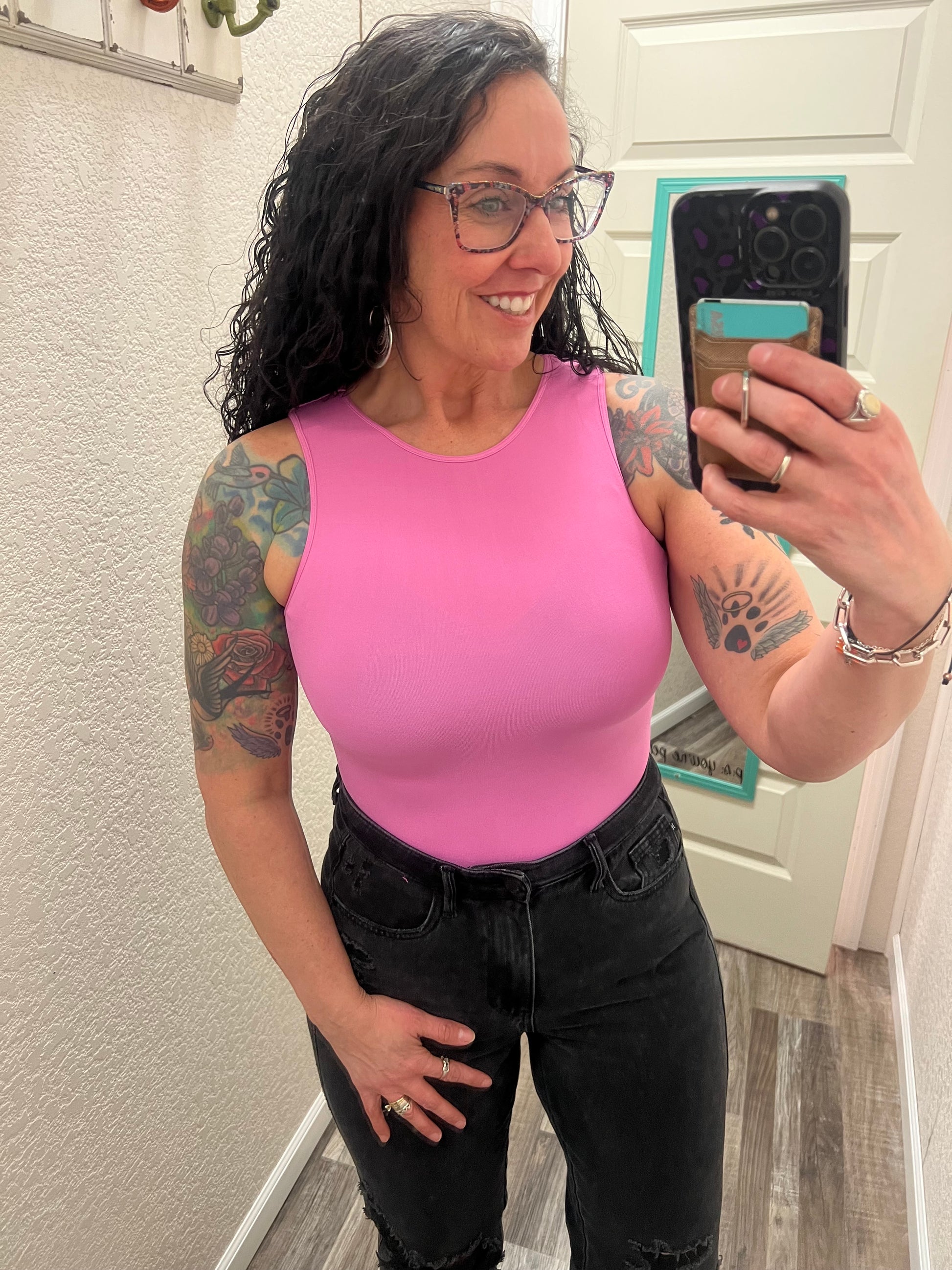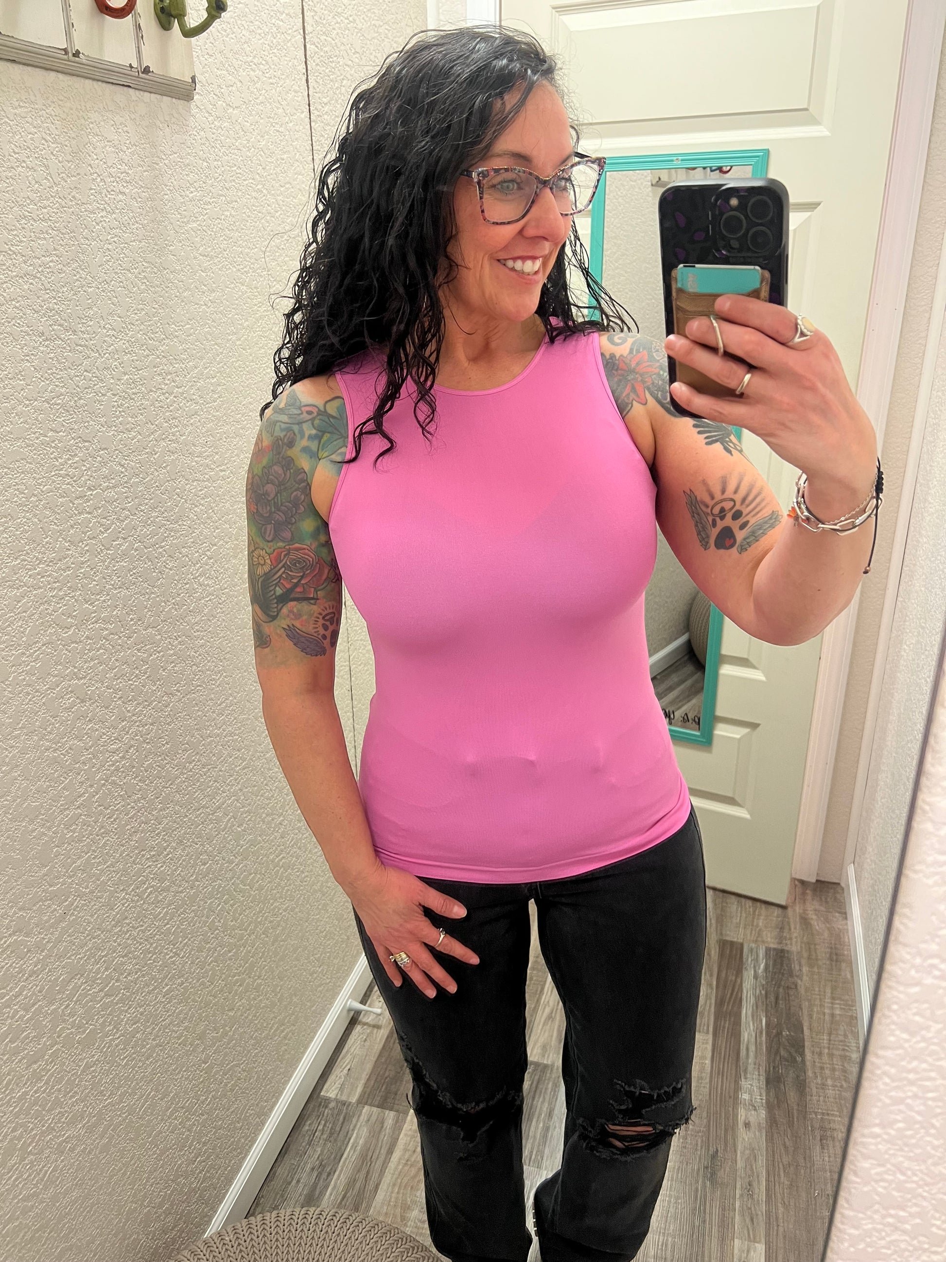 Introducing the PinkOrchid High Neck Trust Me Tank - the perfect choice for any fashionista. Made in USA with a seamless design and fabric comprised of 92% Nylon and 8% Spandex, this tank guarantees comfort and versatility. With a one size fit, trust us when we say it will flatter any figure.