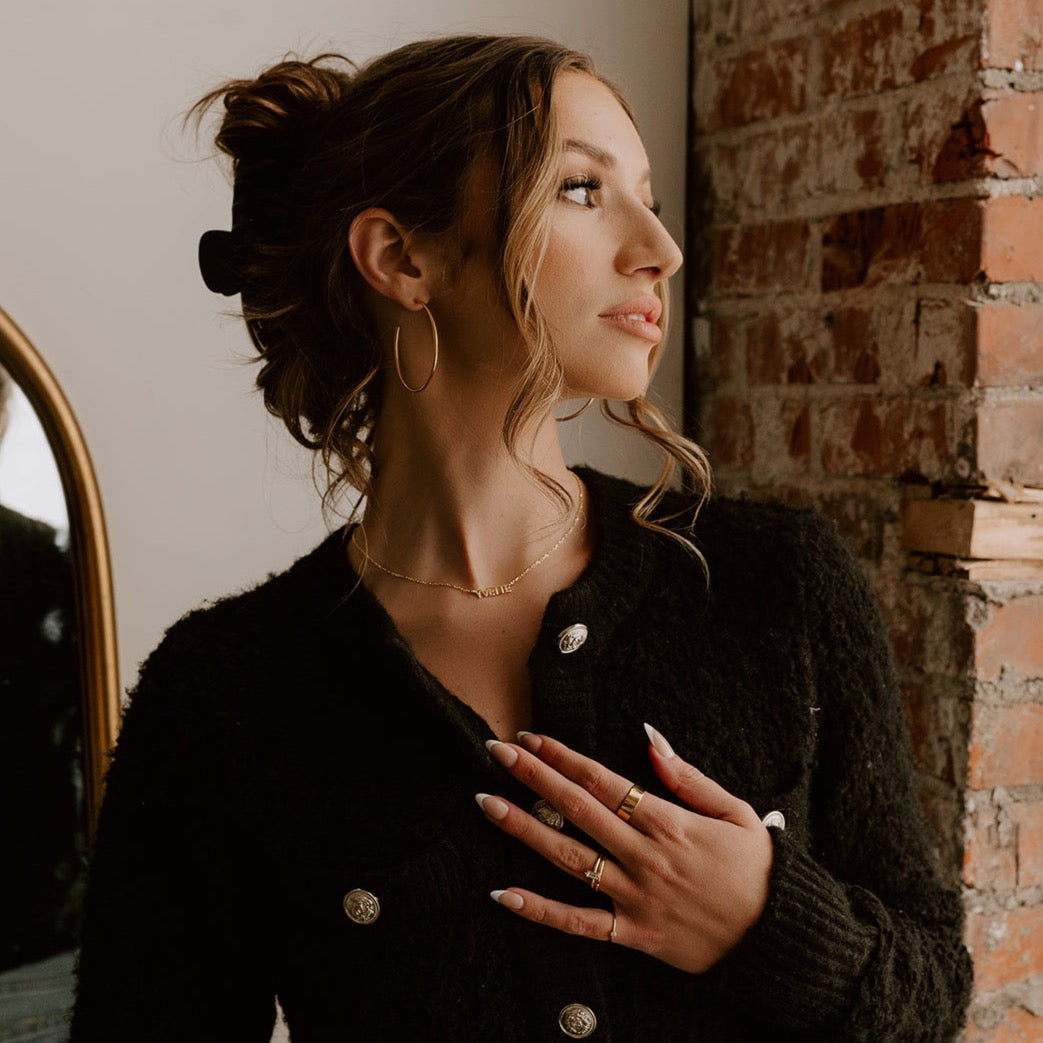 Our best selling mantra style with new paperclip chain detail. Lovely and perfect for every member of your family!
