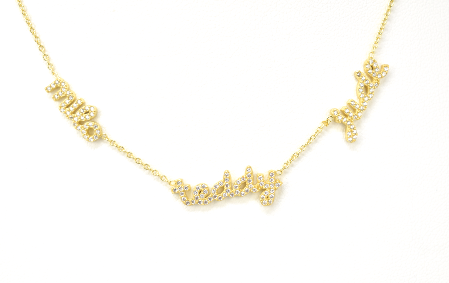 Custom Petite Crystal Script Multiple Name Necklace - Water Resistant