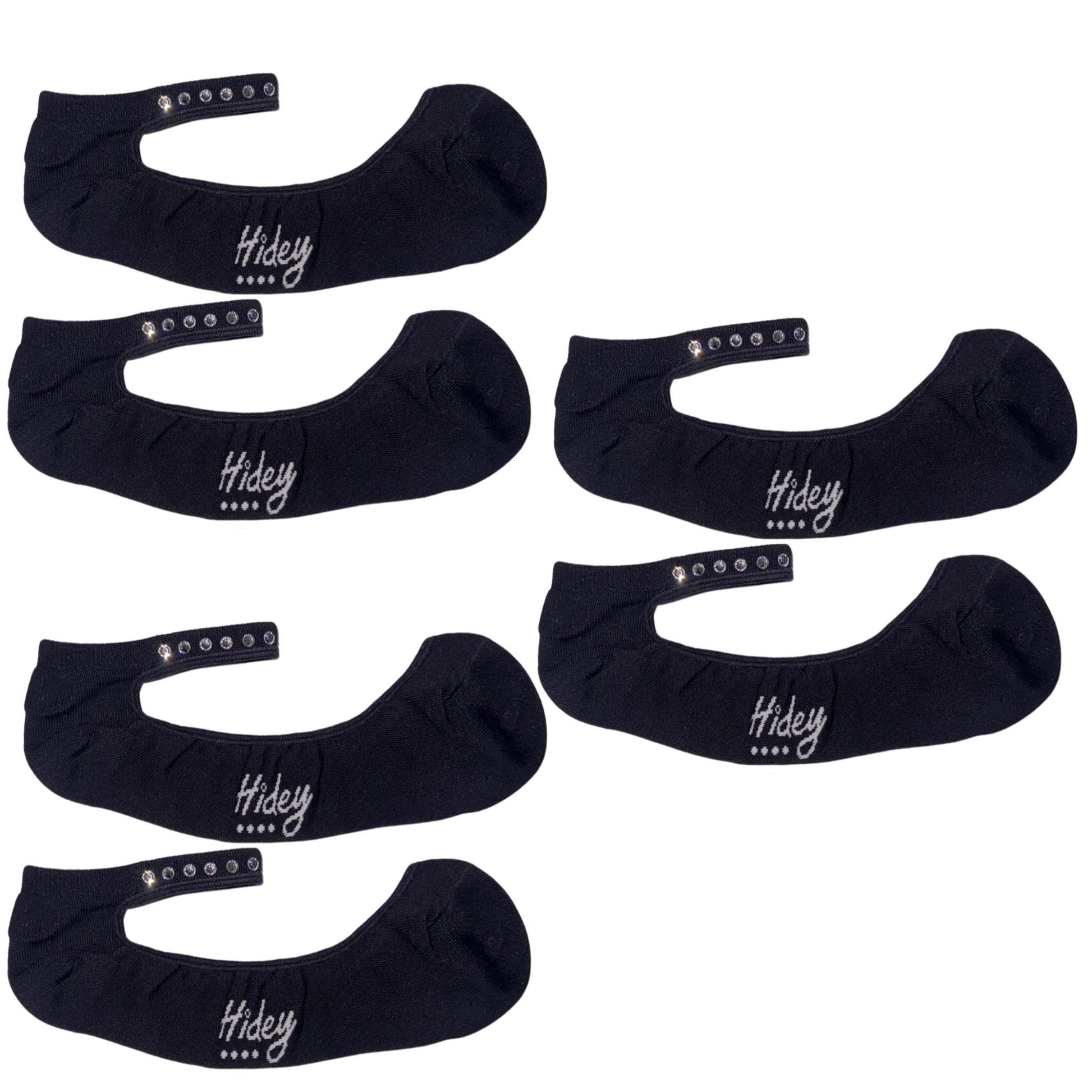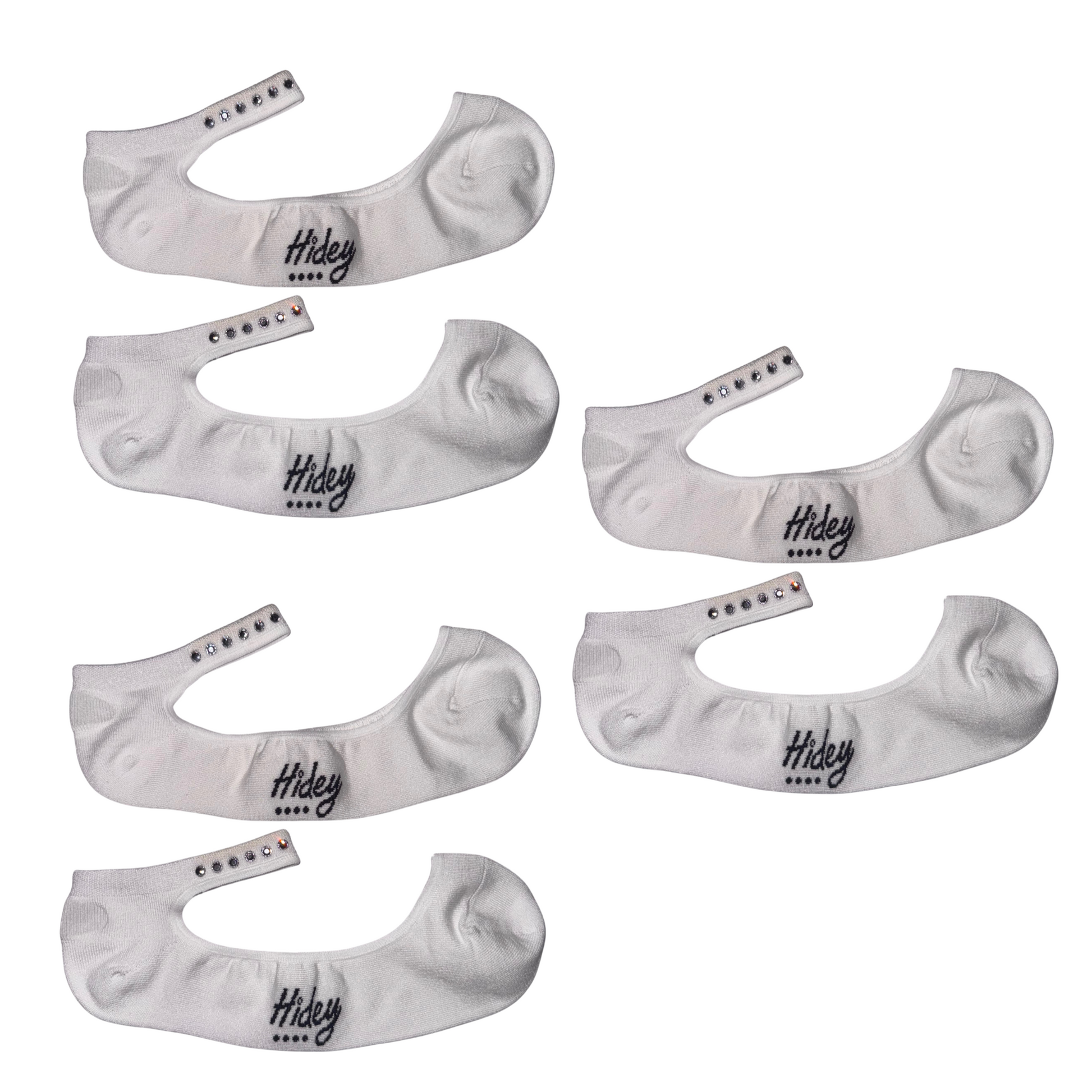 Hidey Socks are innovative liner socks that solve the universal problem of "no-show" socks sliding off your feet. They feature a unique, comfortable anklet (with optional Austrian crystal detail) that ensures the sock stays securely in place all day, combined with luxurious bamboo fabric for superior comfort and breathability. They are designed for both discreet wear (where the body of the sock is hidden) and visible elegance (where the anklet adds a stylish touch), all while providing ultimate stay-on confidence.