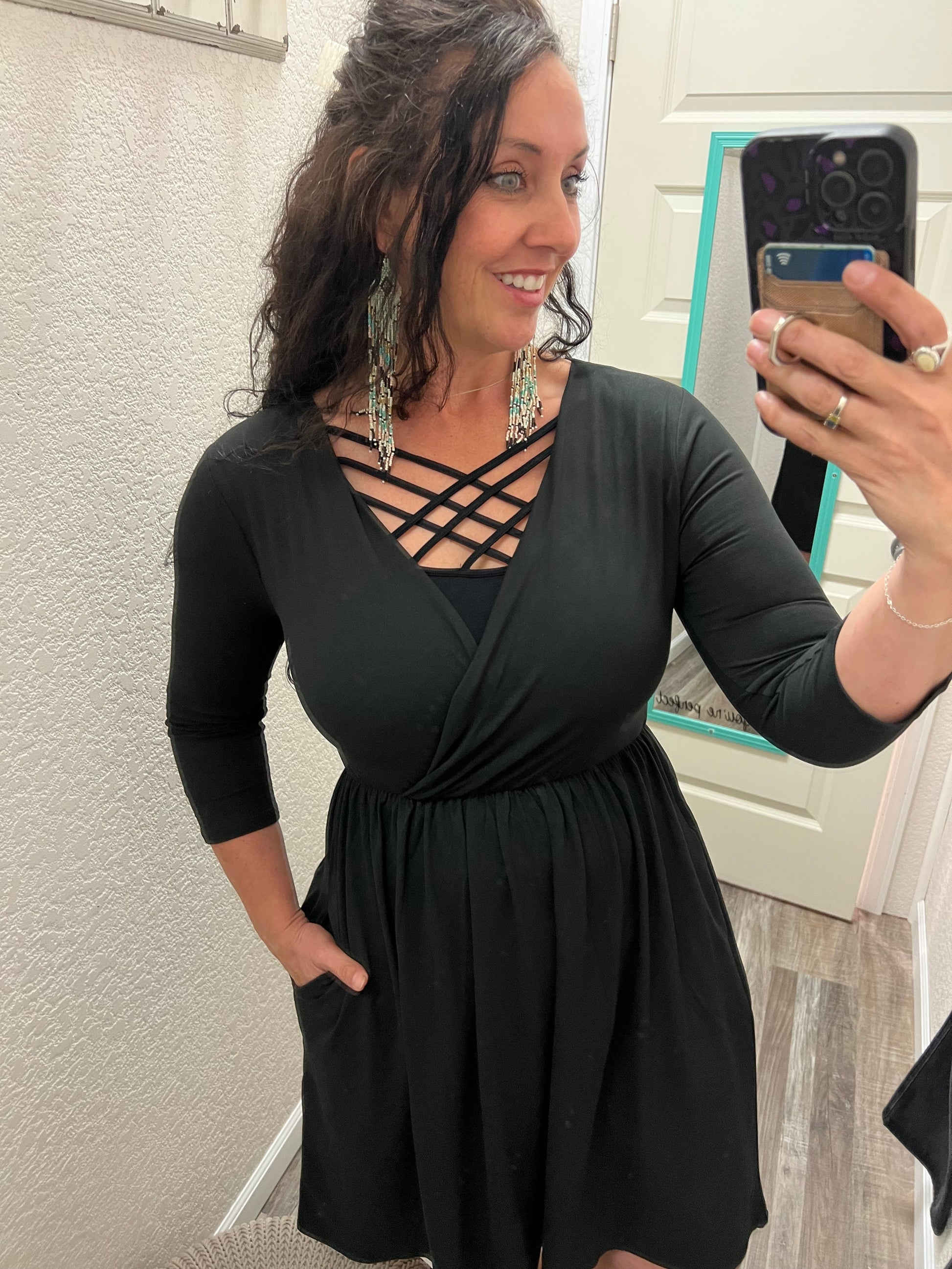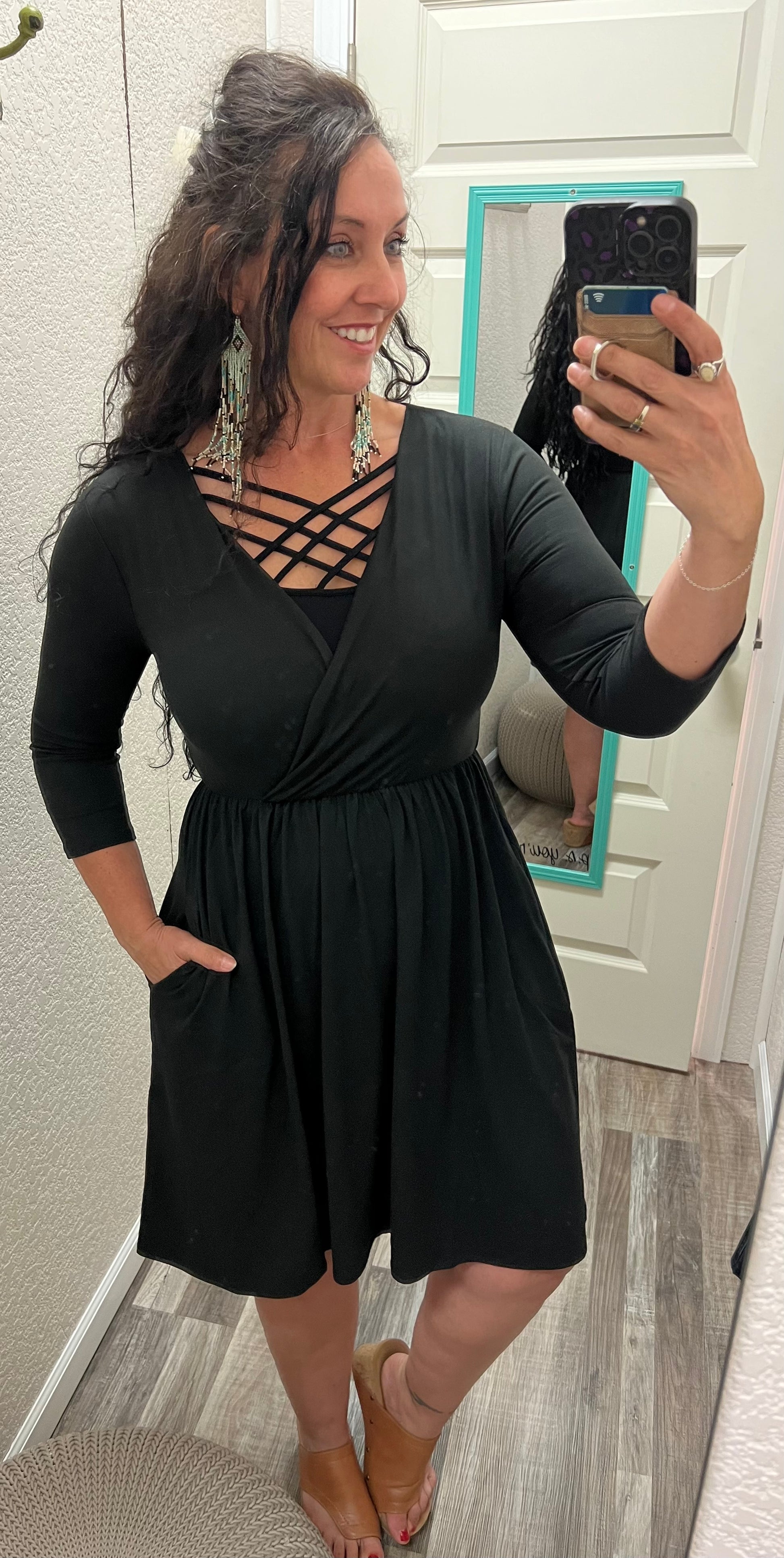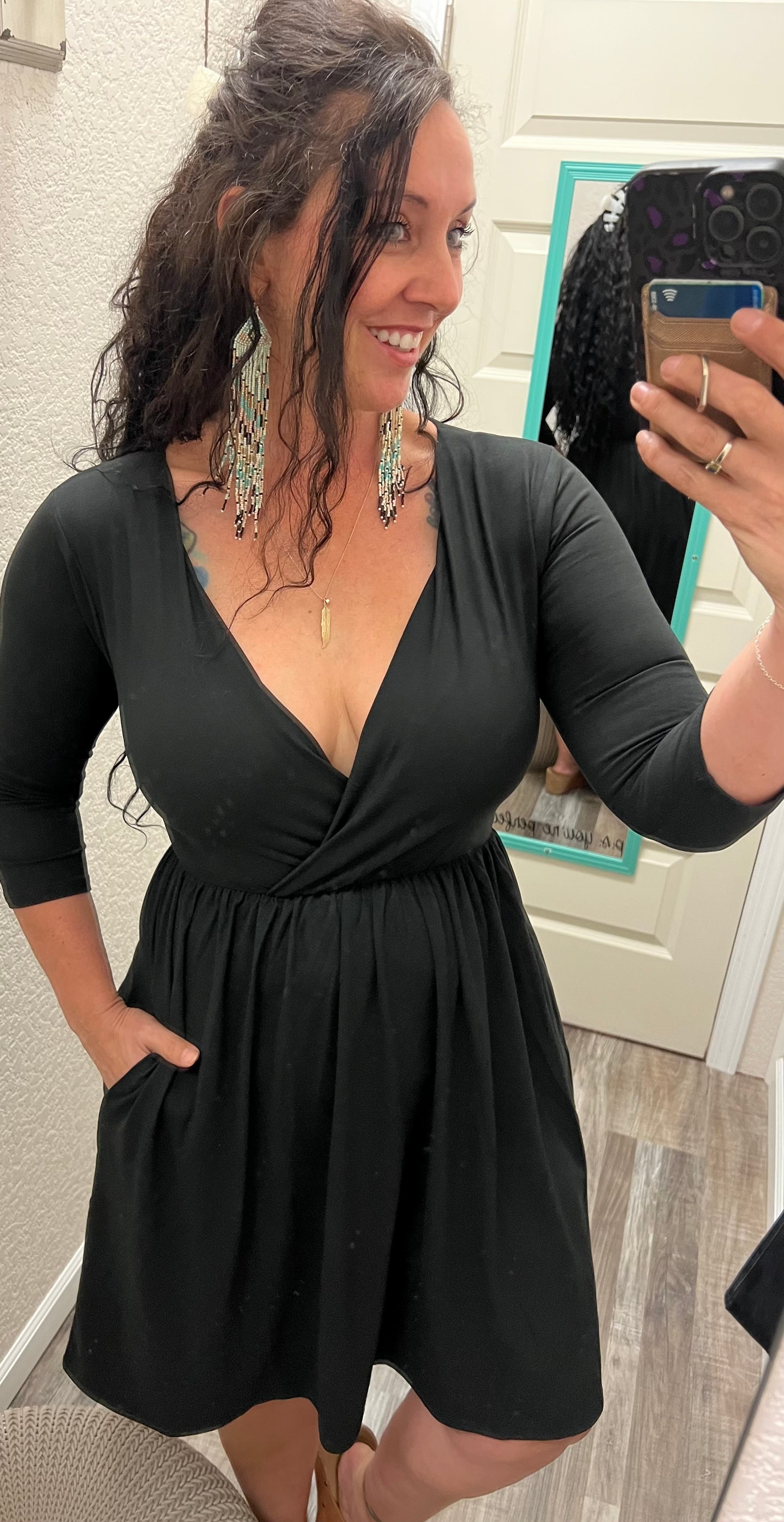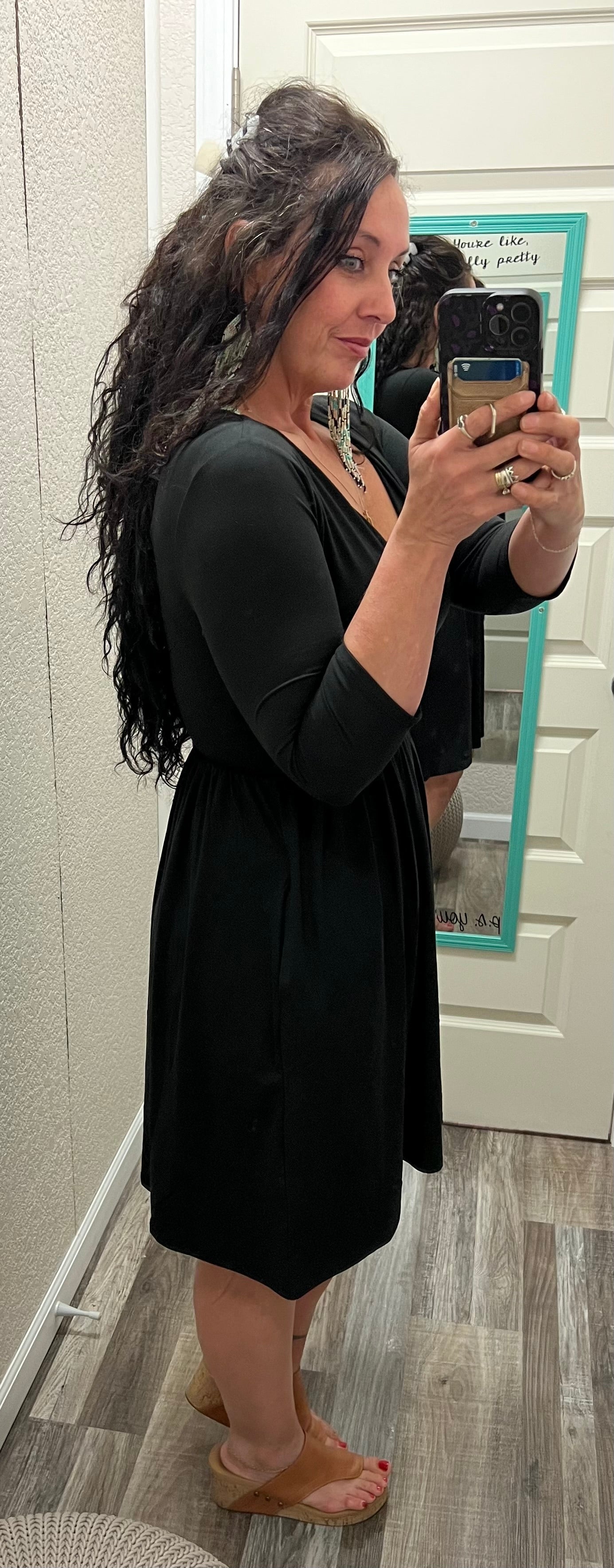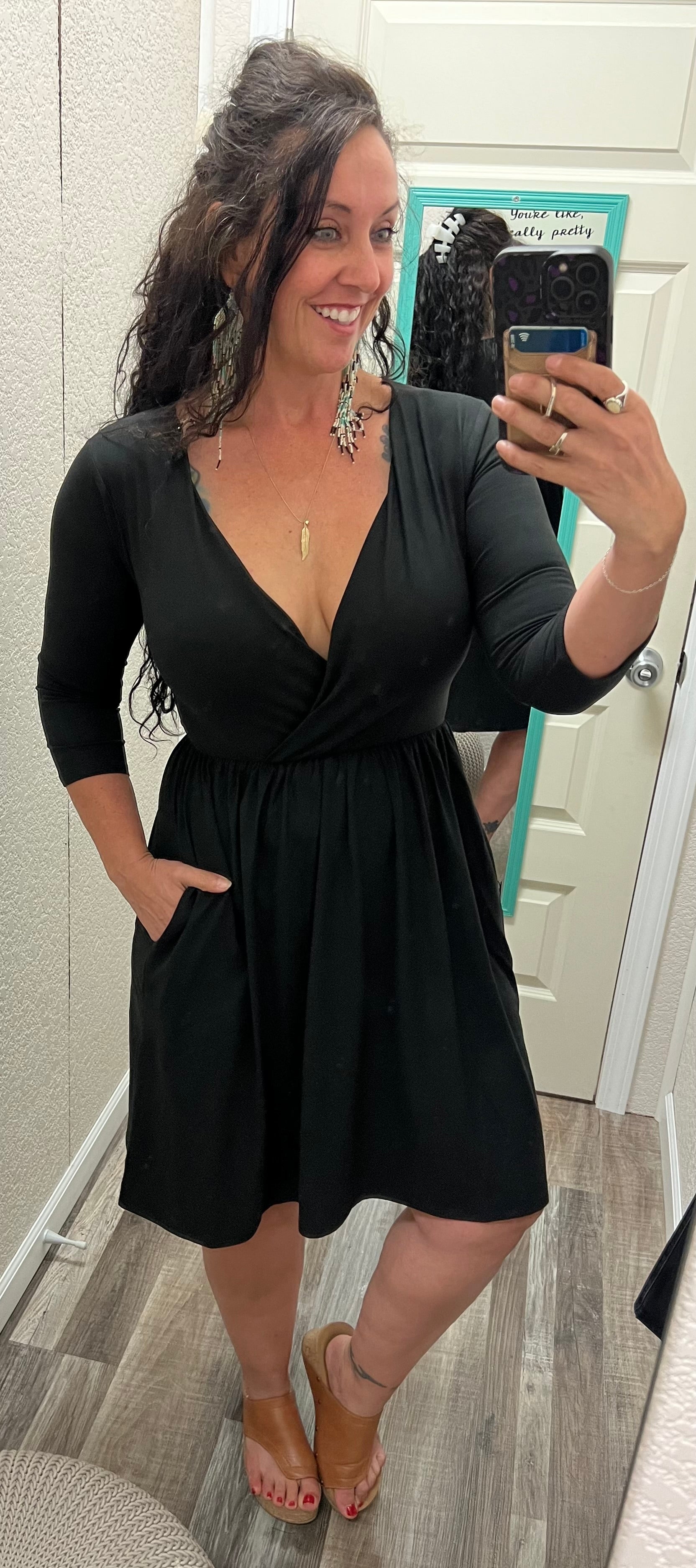 This is a stylish and comfortable surplice dress made from brushed buttery soft fabric with a flattering V neck. Experience the perfect blend of fashion and comfort with this versatile dress. Perfect for any occasion, it's sure to become a staple in your wardrobe.