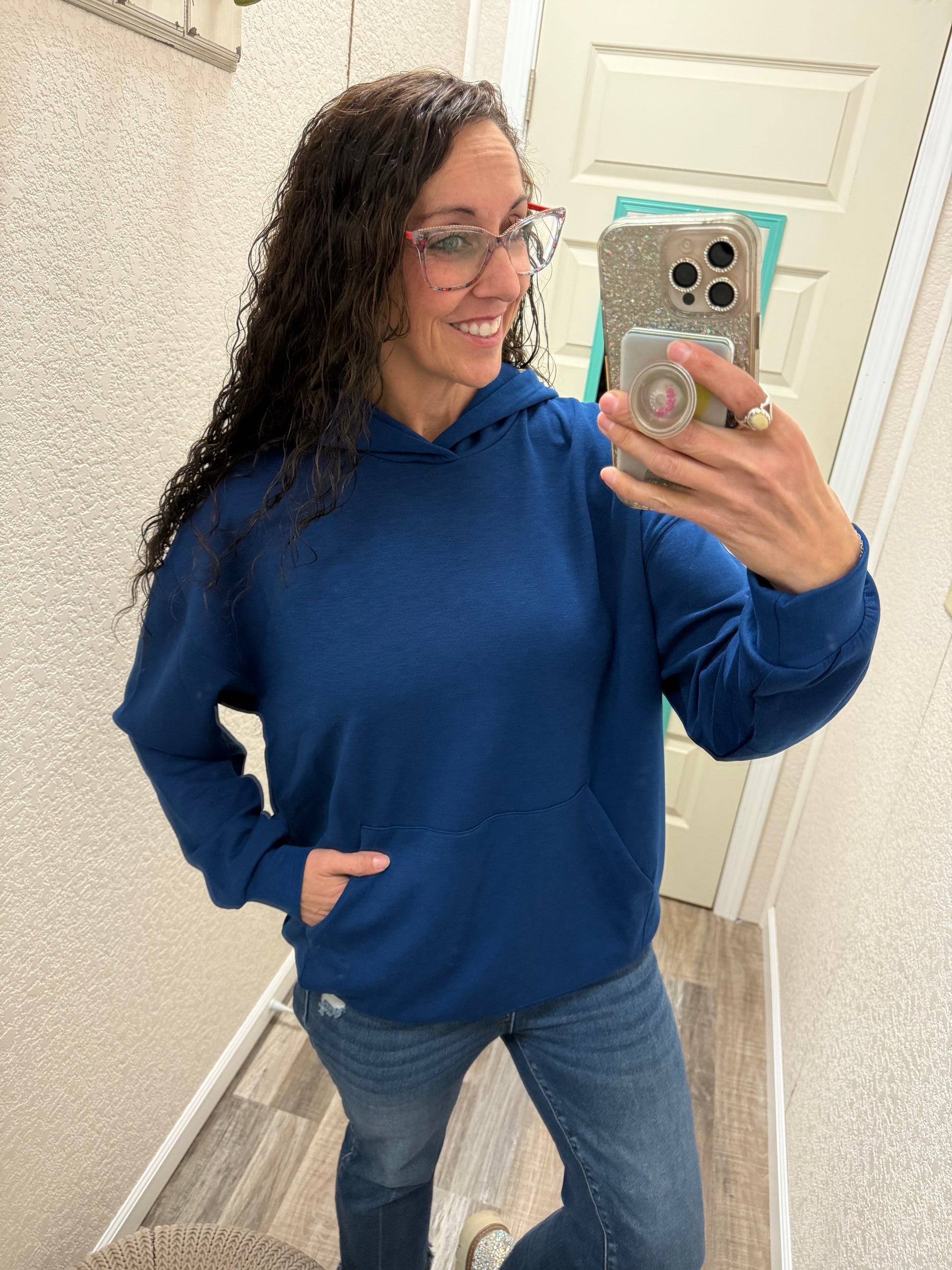 Expertly designed for versatility and comfort, the Madie Scuba Hoodie is a must-have addition to your wardrobe. Its scuba hoodie design and convenient kangaroo pockets make it the perfect choice for staying warm and stylish. A sister to the Sadie scuba pull over, this hoodie offers the same quality and functionality with a unique twist. Perfect for any occasion, this hoodie is a staple for any fashion-forward individual.
