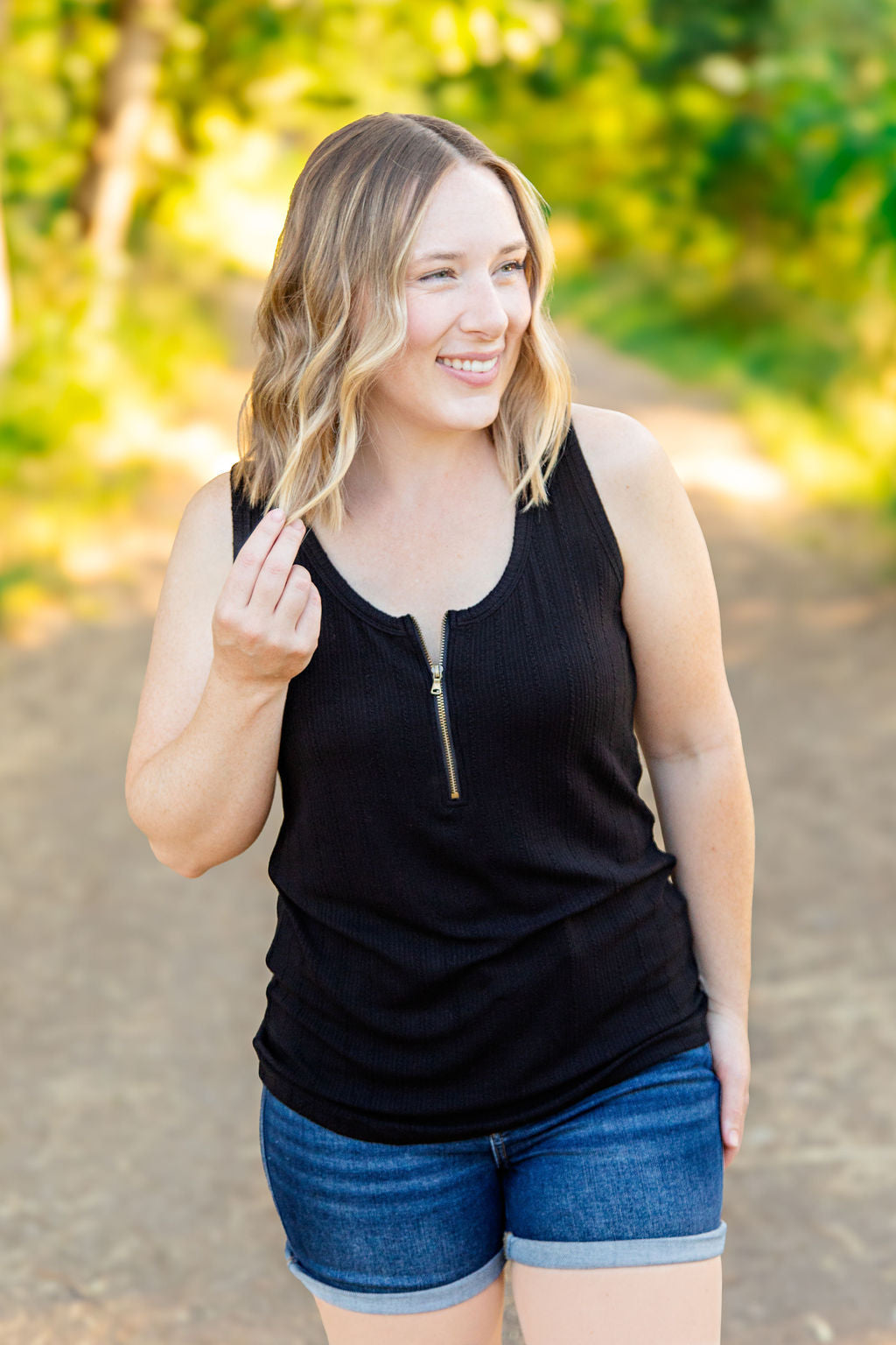 Mila Zipper Tank - Black