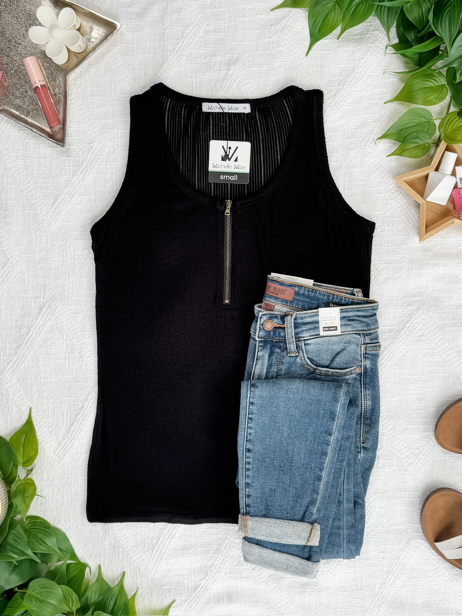 The Mila Zipper Tank in black is the ultimate versatile piece for your wardrobe. This sleek and stylish tank features a front zipper detail that adds a modern edge. The soft and stretchy fabric ensures a comfortable fit, perfect for layering or wearing alone. Whether you're dressing up for a night out or keeping it casual, this tank is a must-have.