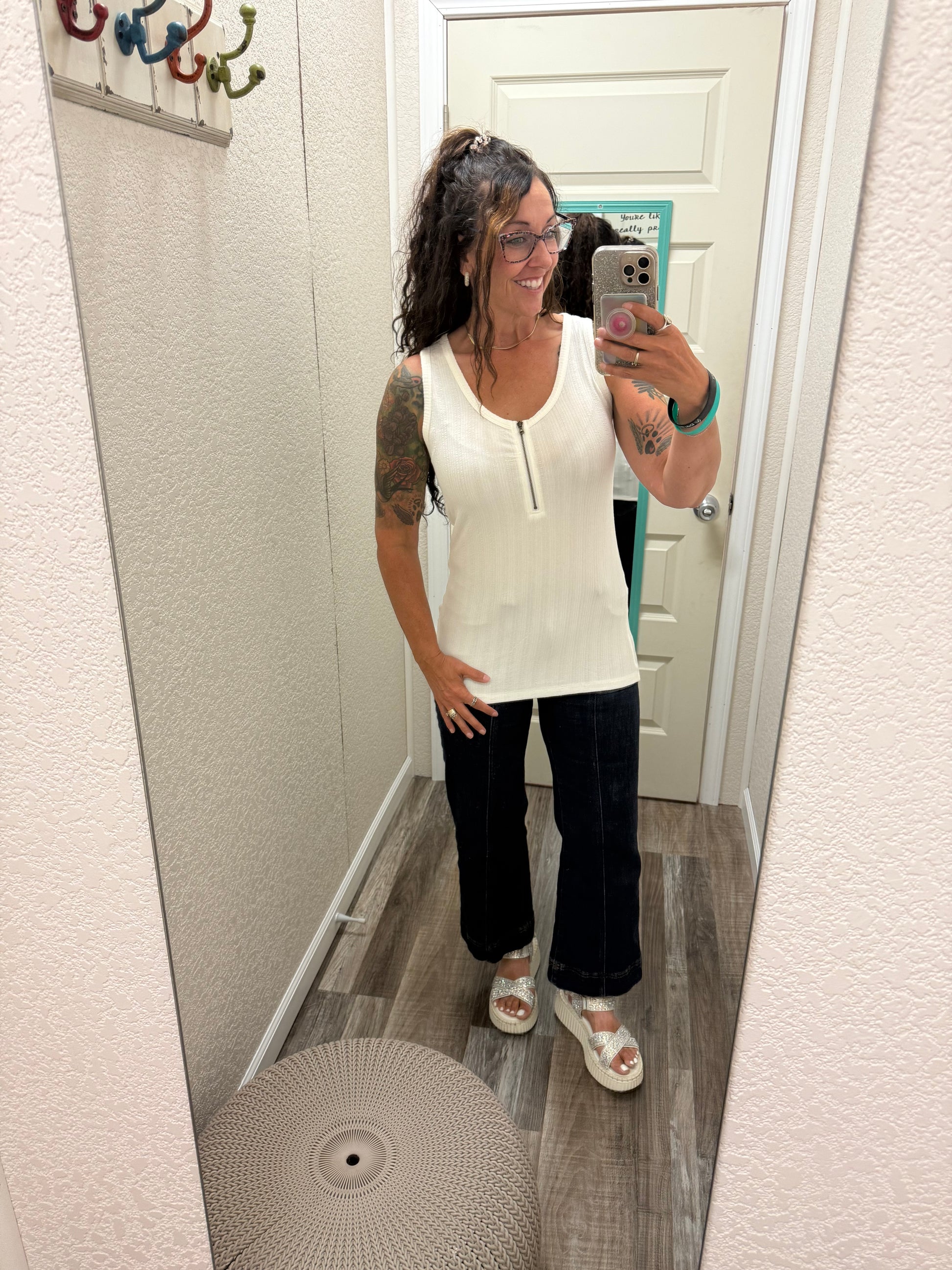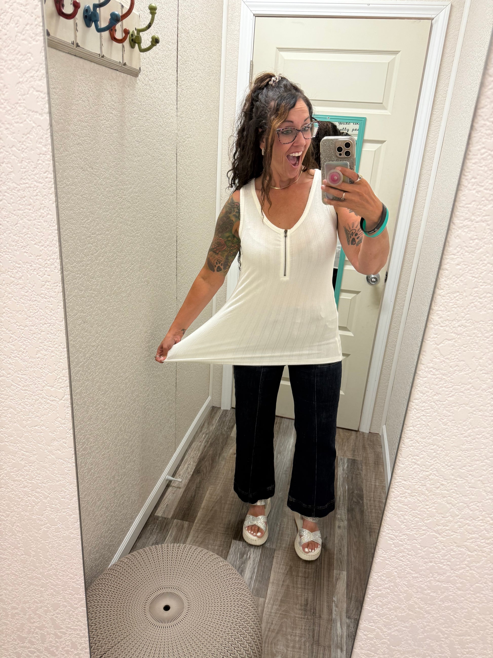Mila Zipper Tank - White