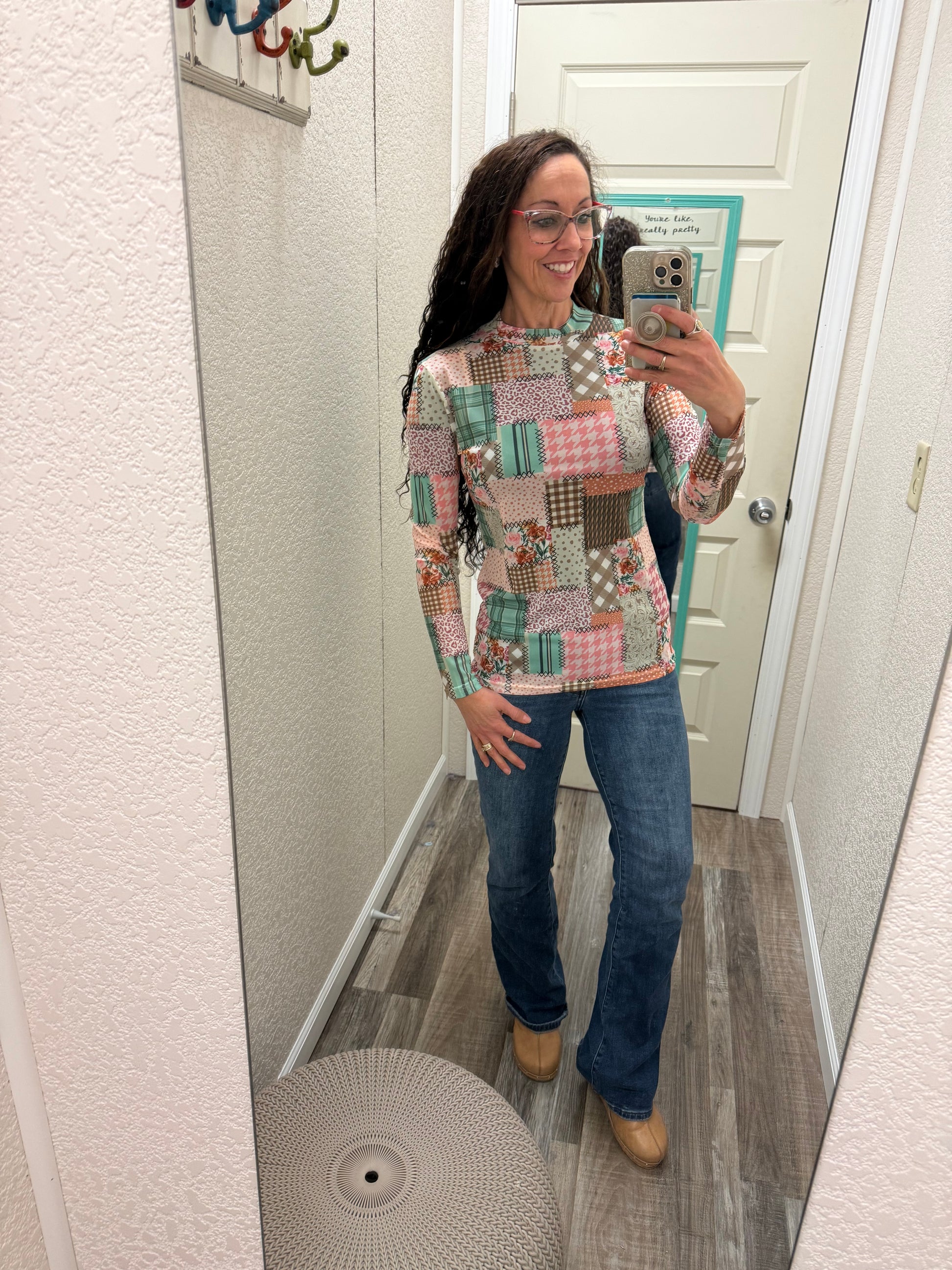 Embrace the season with this vibrant patchwork mesh top that celebrates spring in full color. Featuring a playful mix of pastel hues and geometric panels, it's the perfect piece to layer or wear solo when the weather warms up. The breathable mesh construction keeps you cool and comfortable, while the eye-catching design makes a bold statement. Whether you're heading to brunch or catching up with friends, this cheerful top brings instant personality to any outfit.