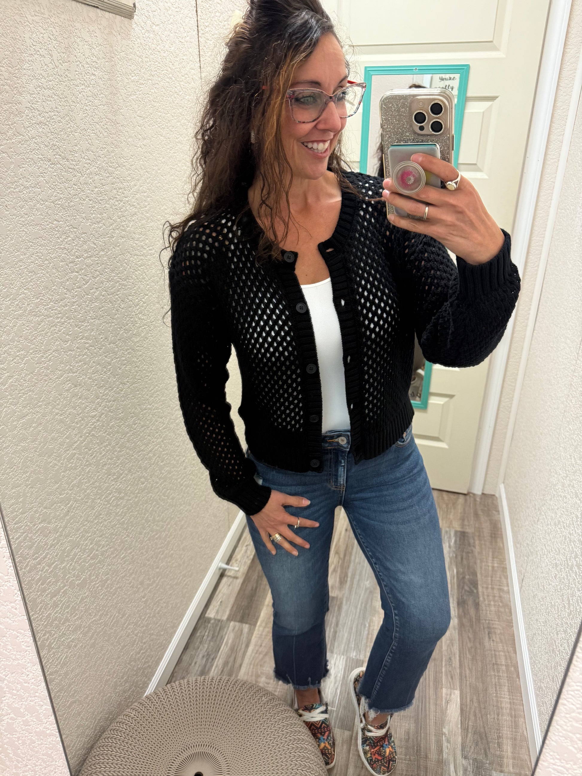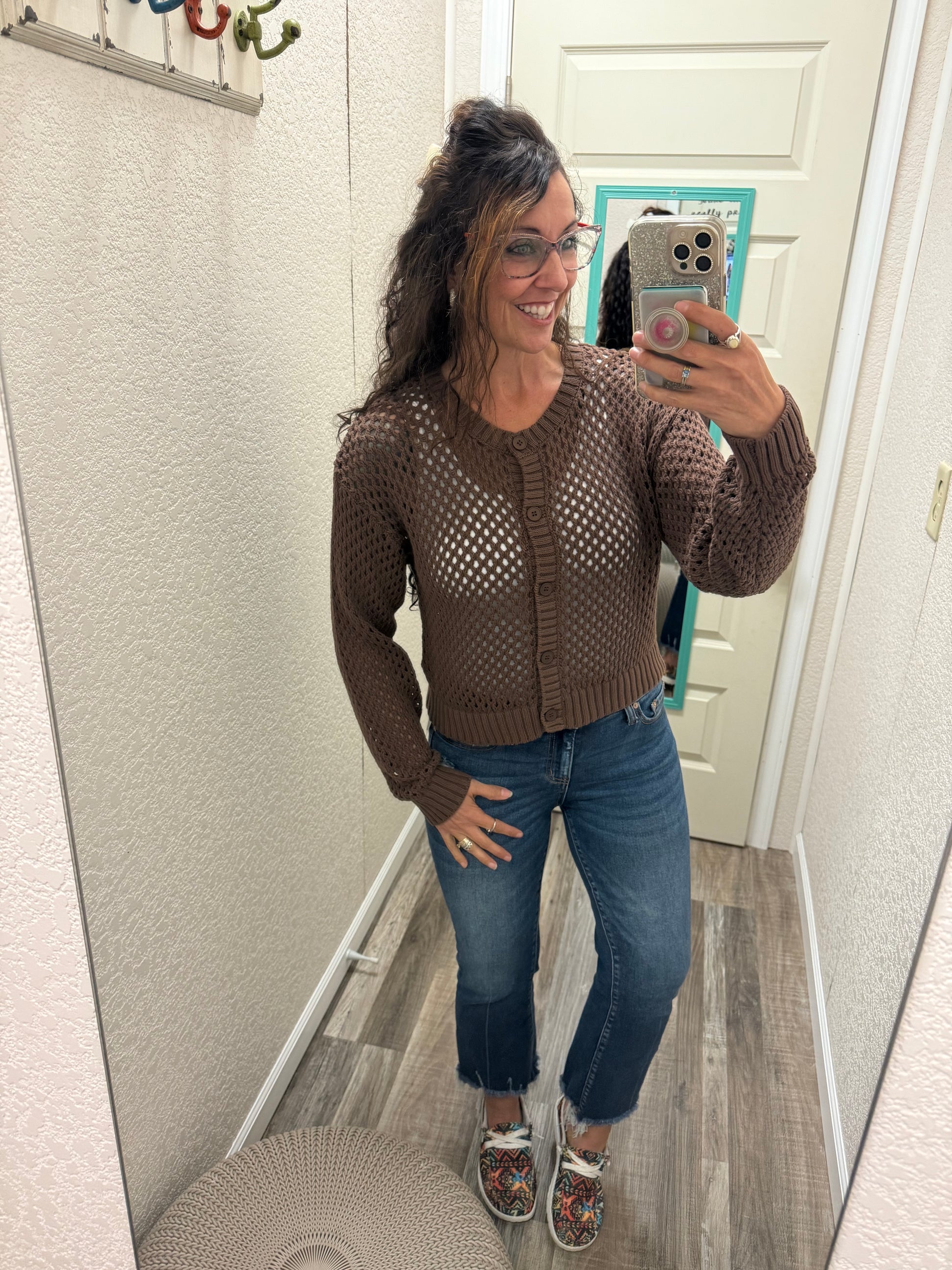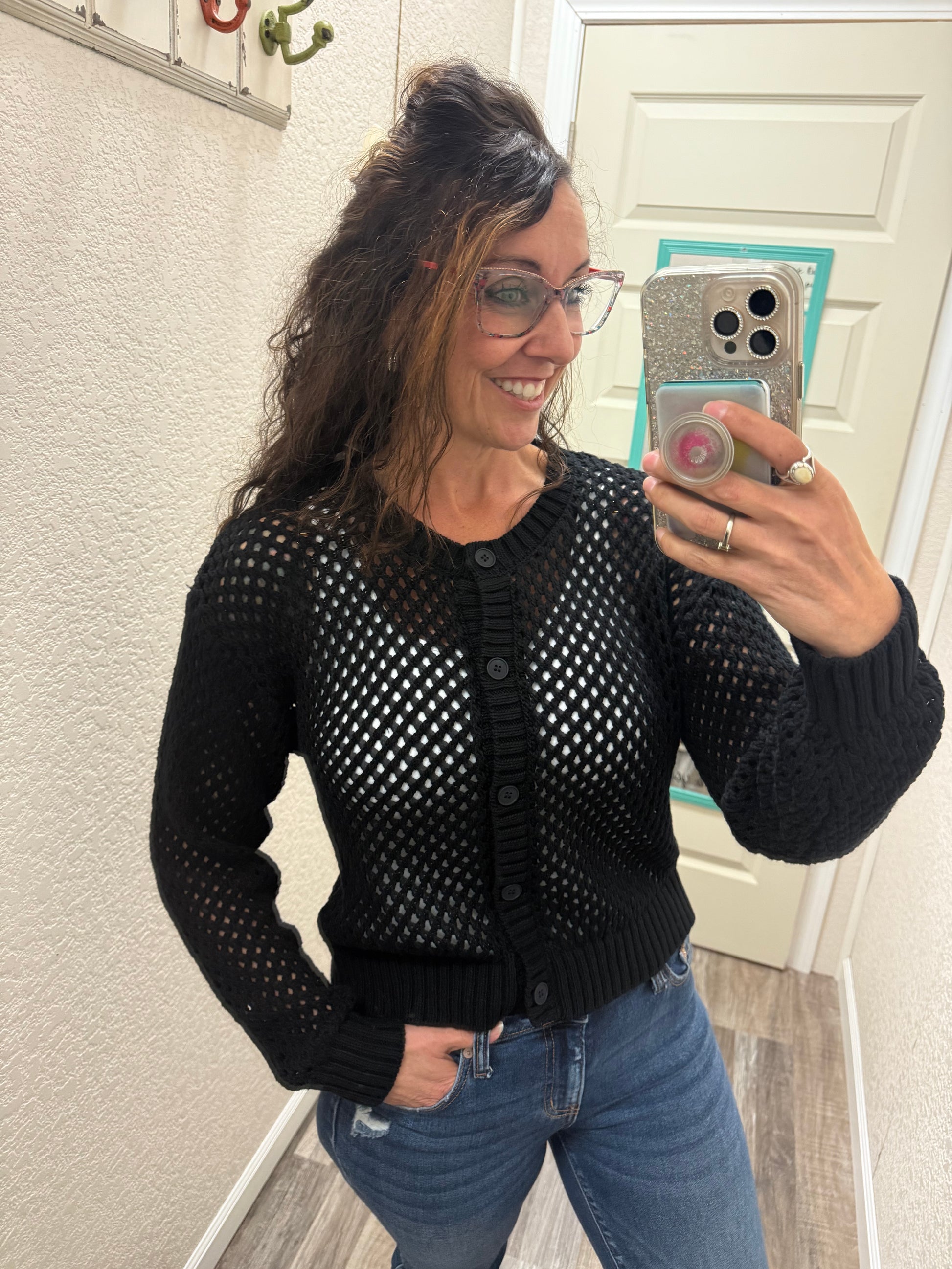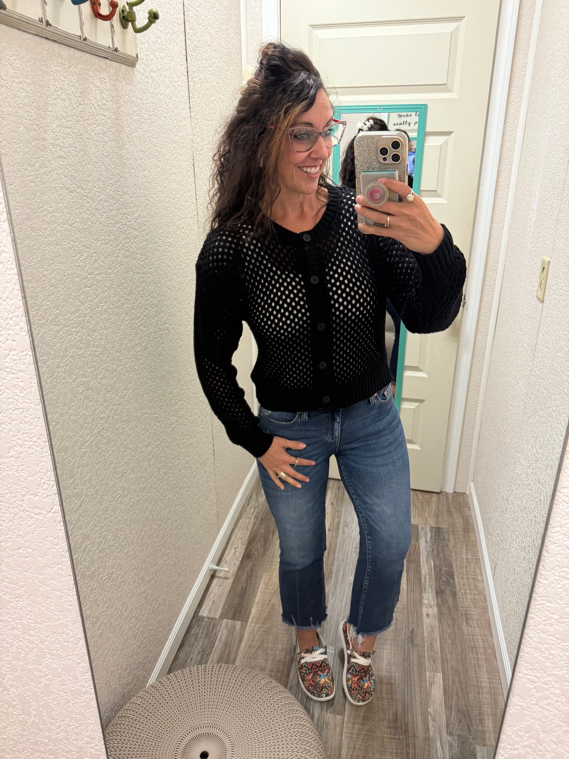 Expertly crafted with a delicate crochet design, the Nicki Crochet Sweater Cardigan is a must-have addition to your wardrobe. Perfectly cropped for a modern and chic look, this sweater cardigan offers both style and comfort. Elevate your outfit and stay cozy with this stunning piece.
