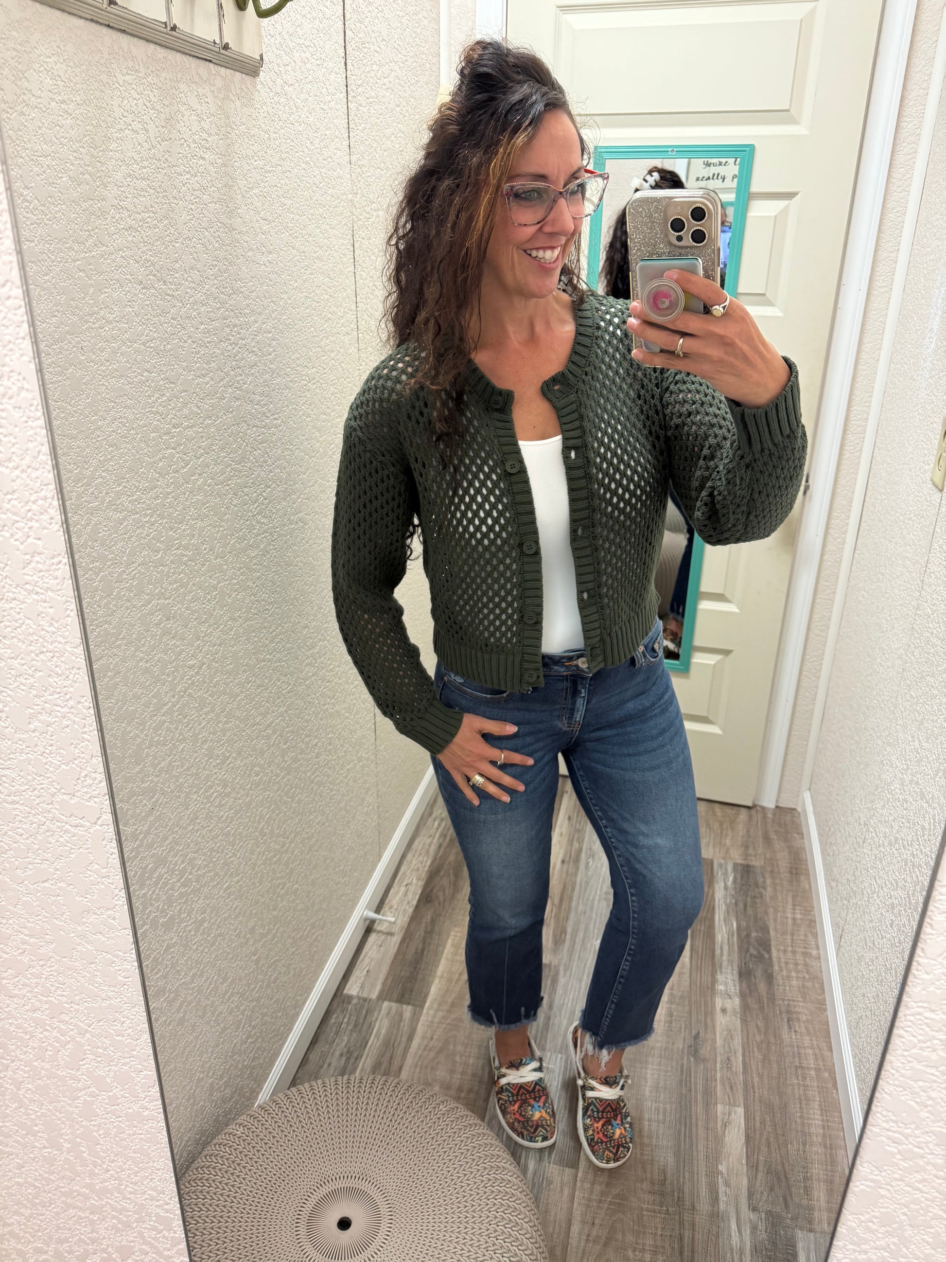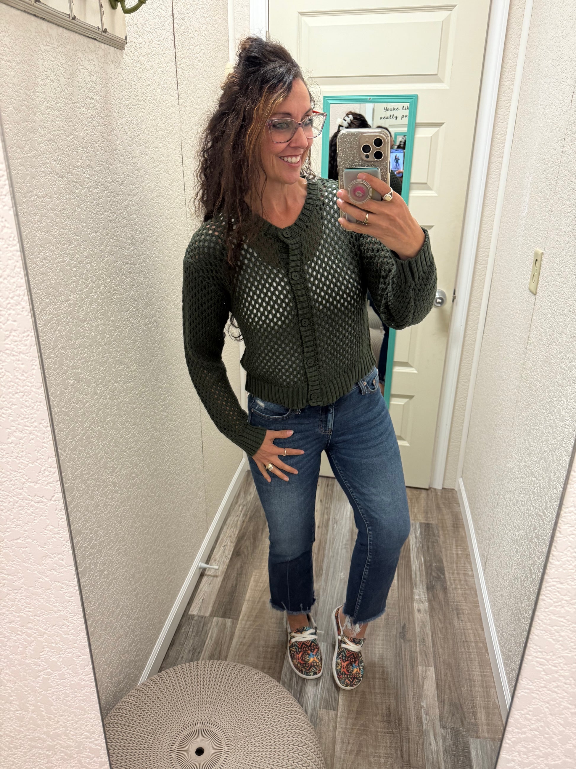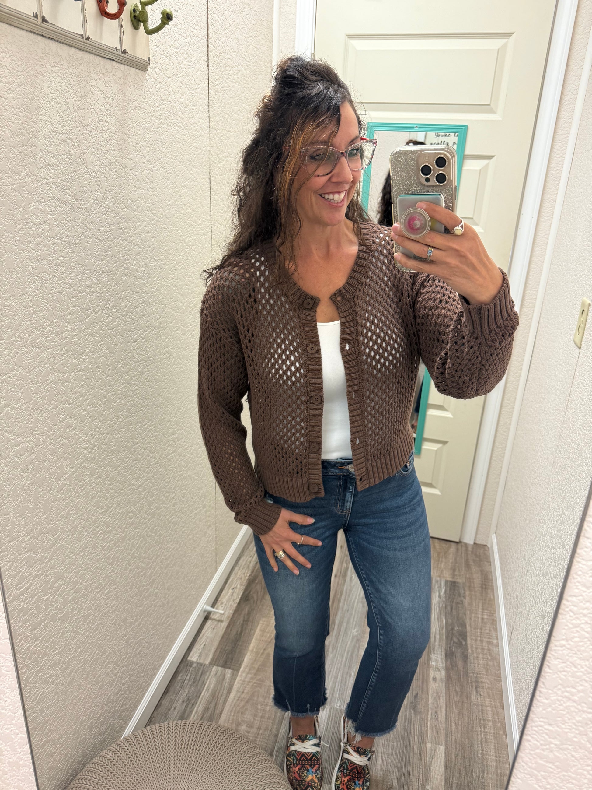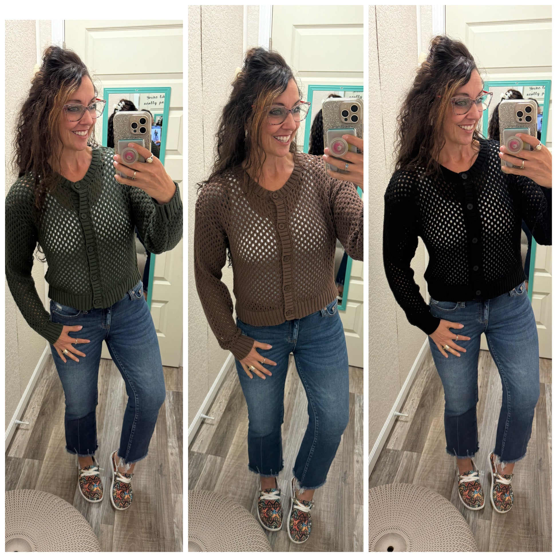 Expertly crafted with a delicate crochet design, the Nicki Crochet Sweater Cardigan is a must-have addition to your wardrobe. Perfectly cropped for a modern and chic look, this sweater cardigan offers both style and comfort. Elevate your outfit and stay cozy with this stunning piece.