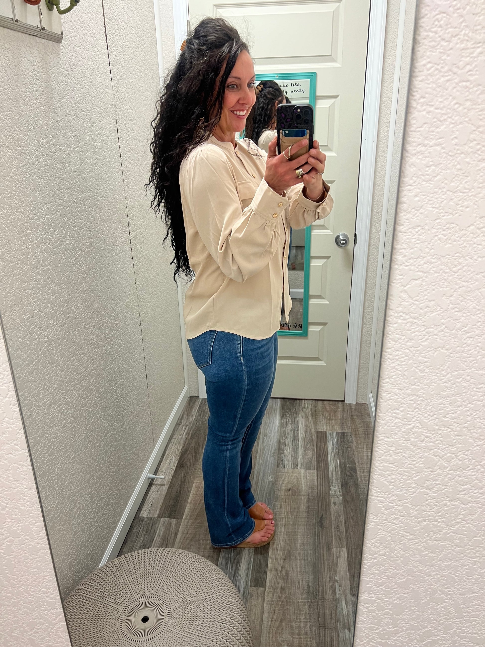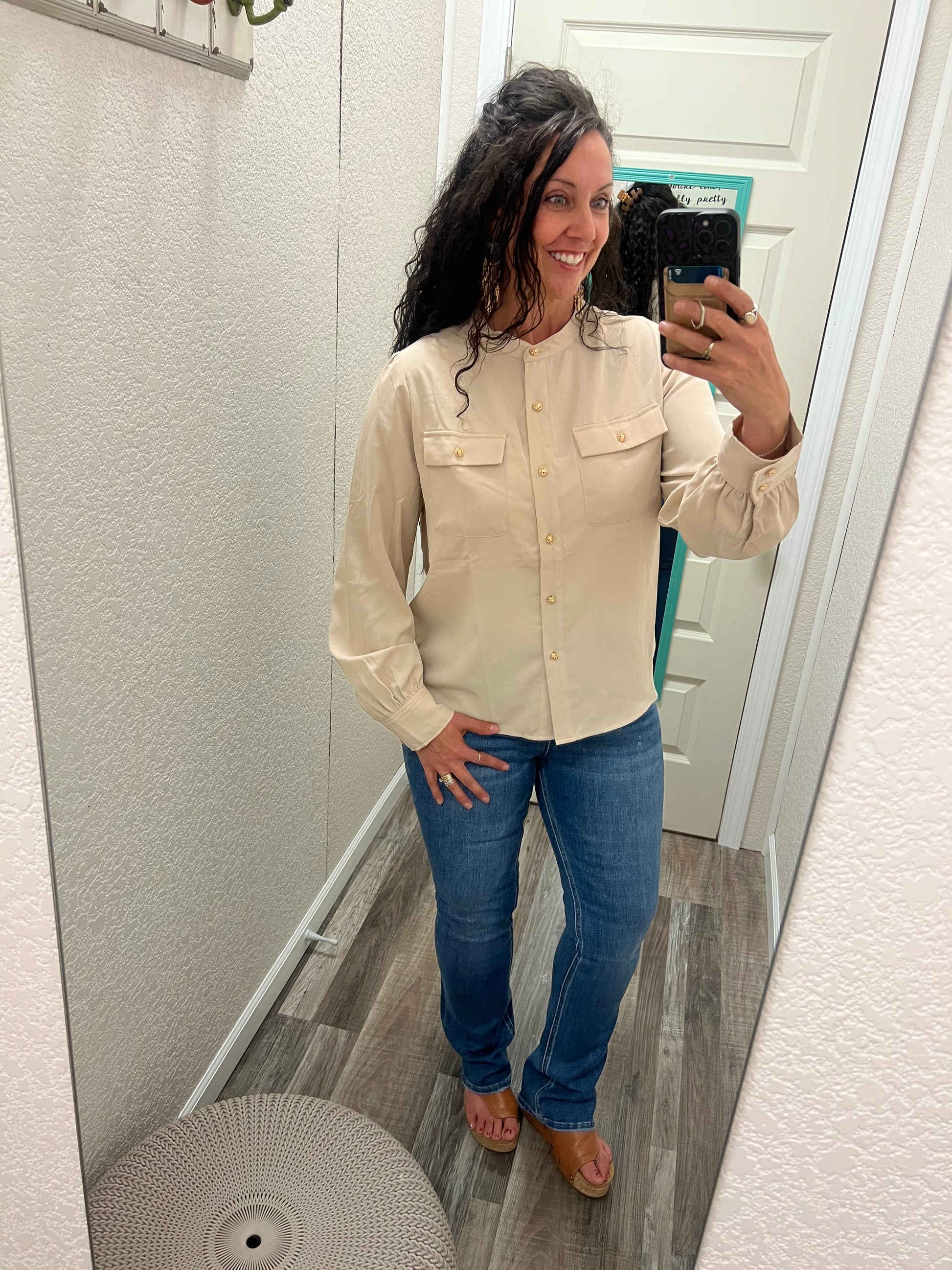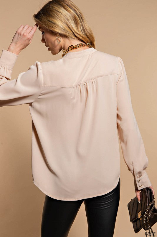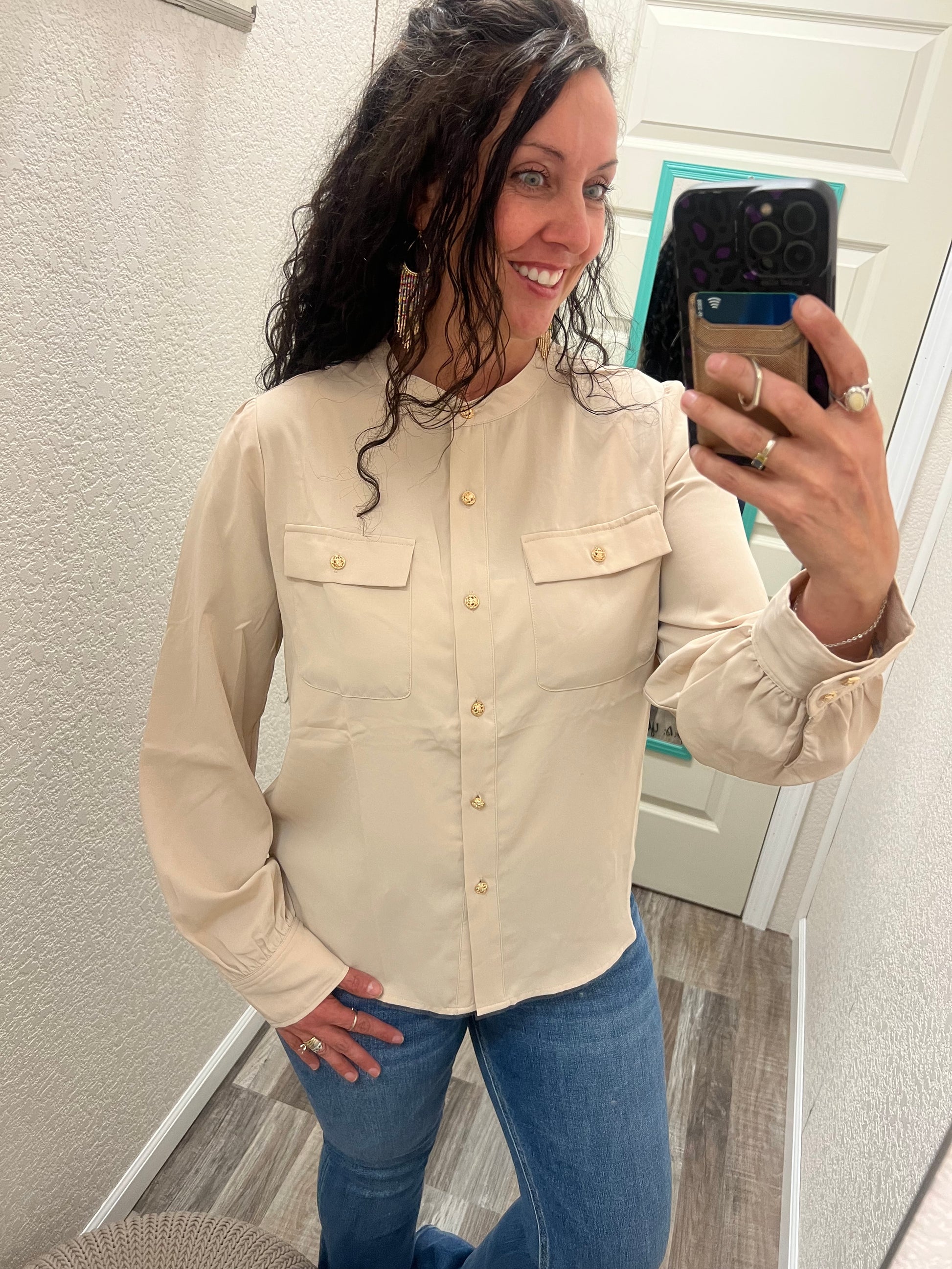 Nora - Beige - Silky Button Up Shirt