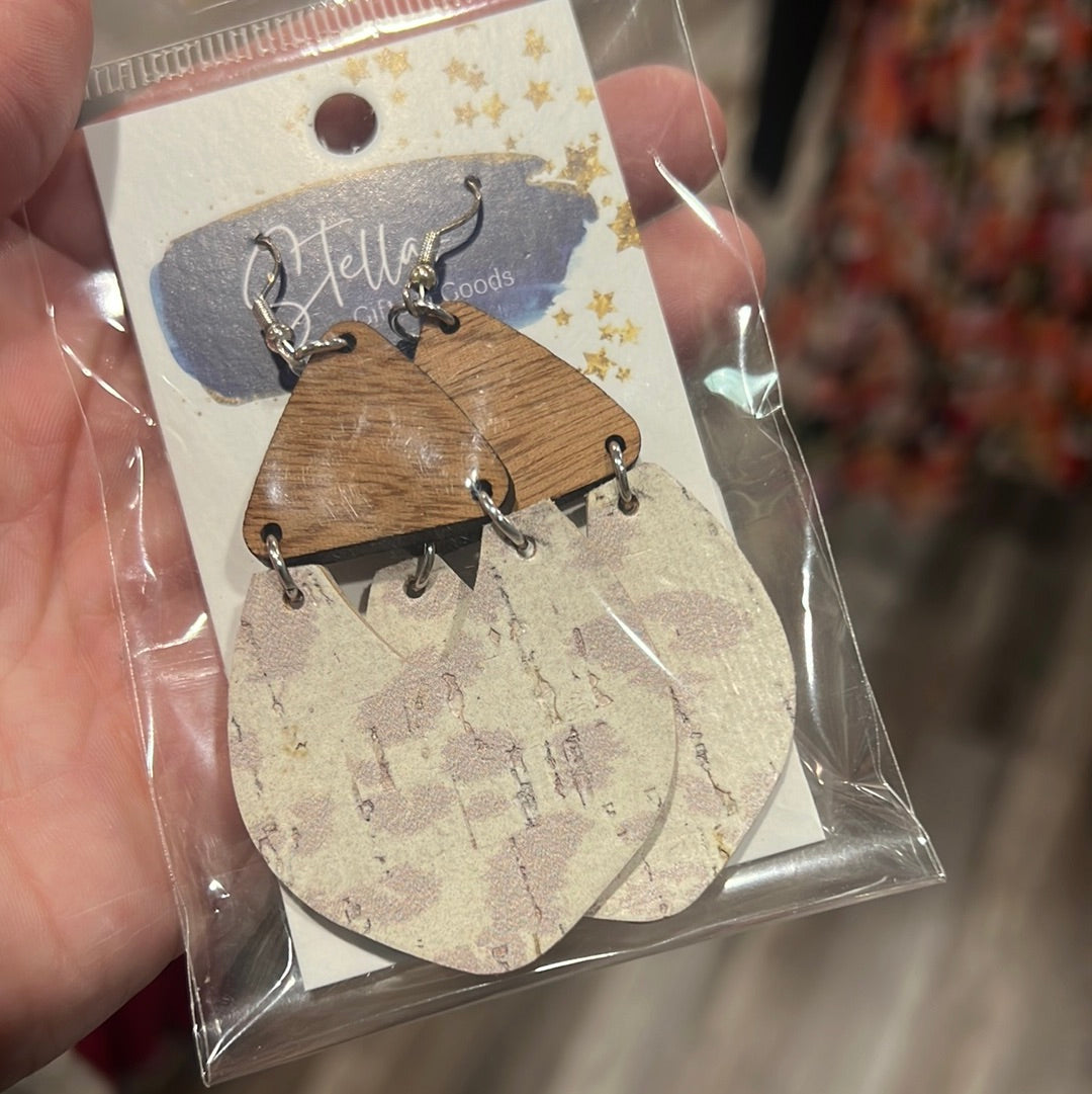 Nude Leopard Cork Leather & Wood Drop Dangles