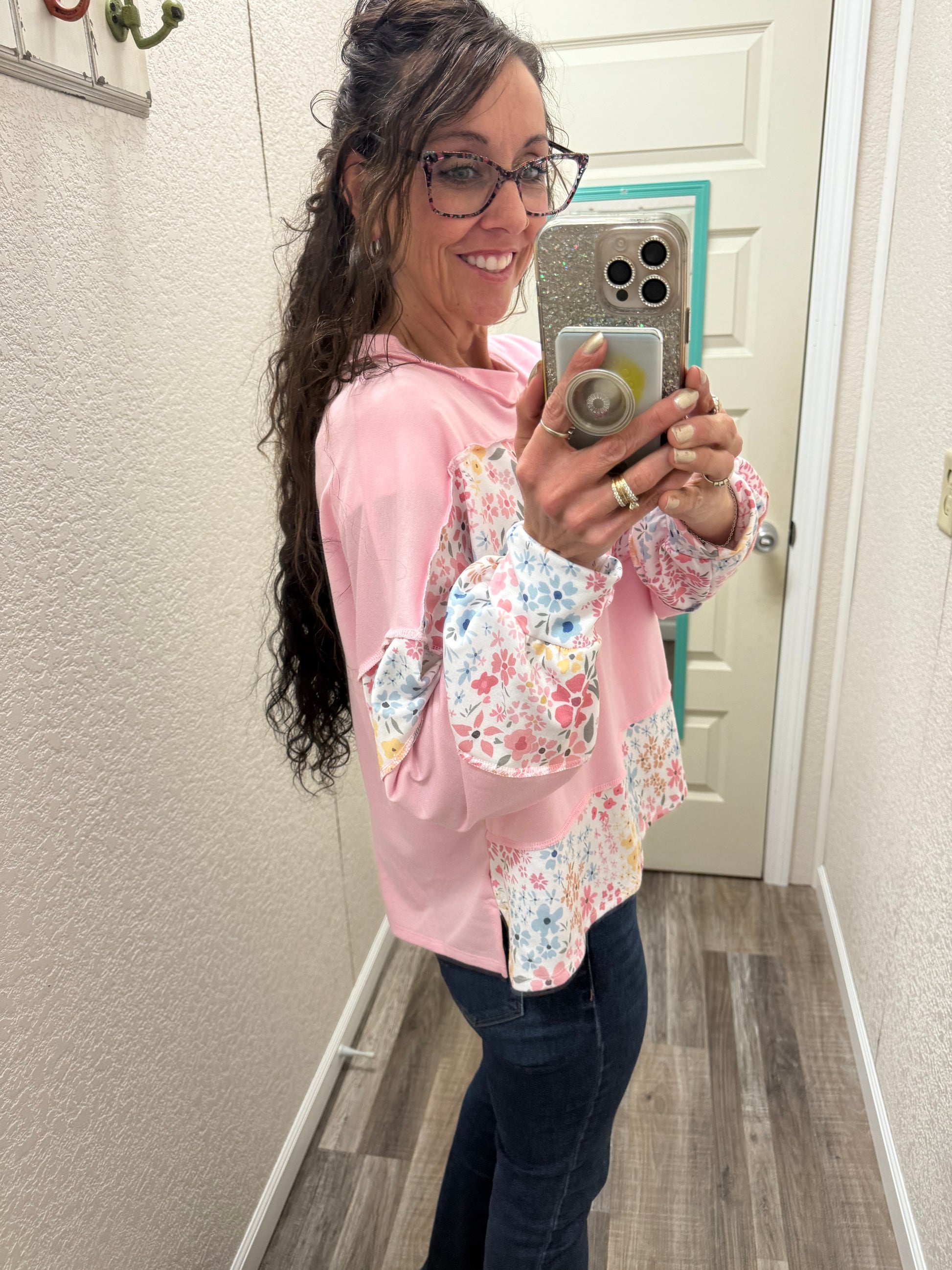 Elevate your casual wardrobe with this versatile pullover knit top, crafted from soft French terry fabric that delivers comfort without compromise. The round neckline and long sleeves provide classic coverage, while the floral print color block design adds visual interest and dimension. Reinforced outseam overlock stitching ensures durability through repeated wear and washing, and strategically placed side slits offer subtle movement and a refined silhouette. Perfect for layering or wearing solo, this piece transitions seamlessly from weekend errands to relaxed social gatherings.