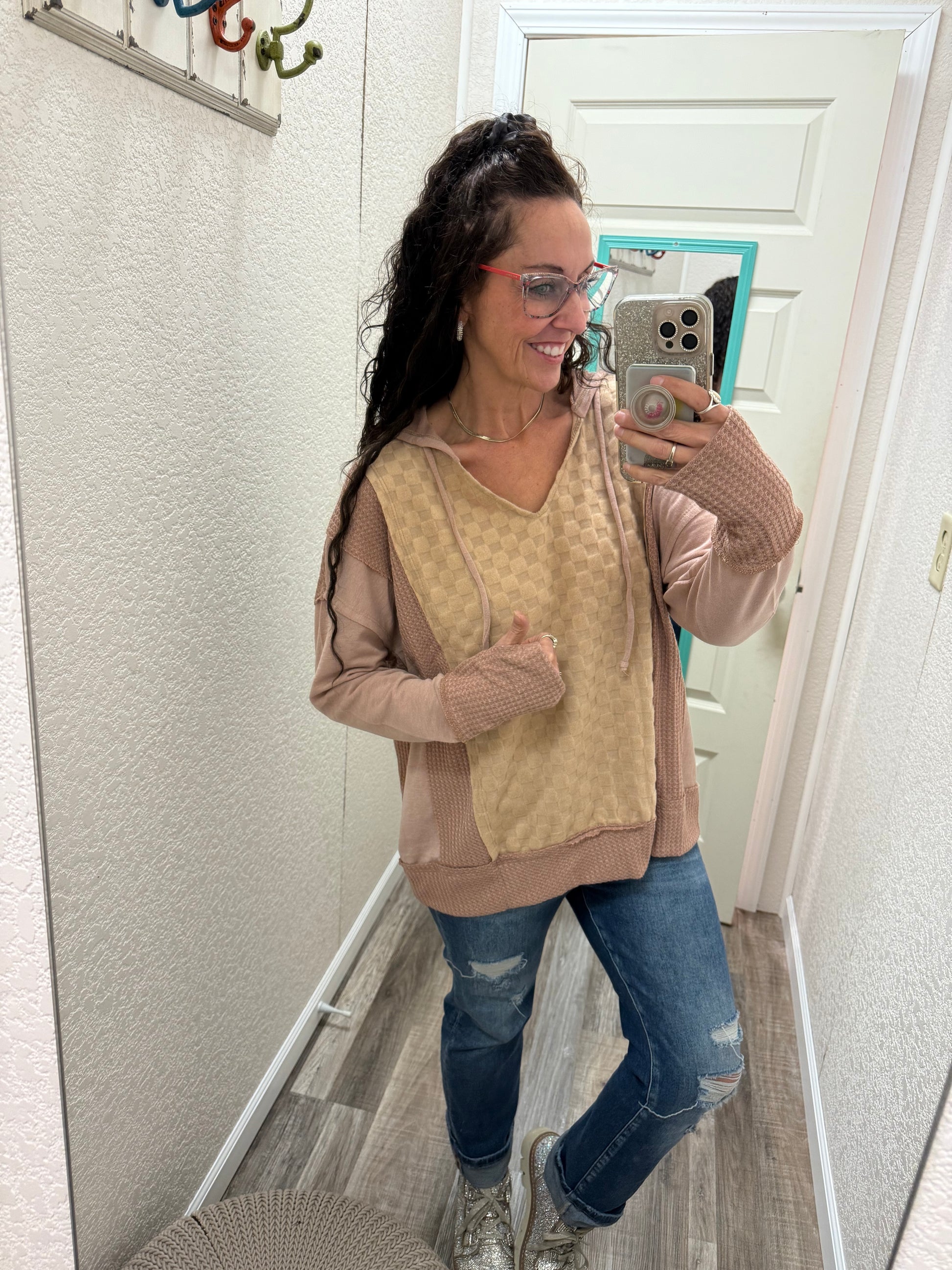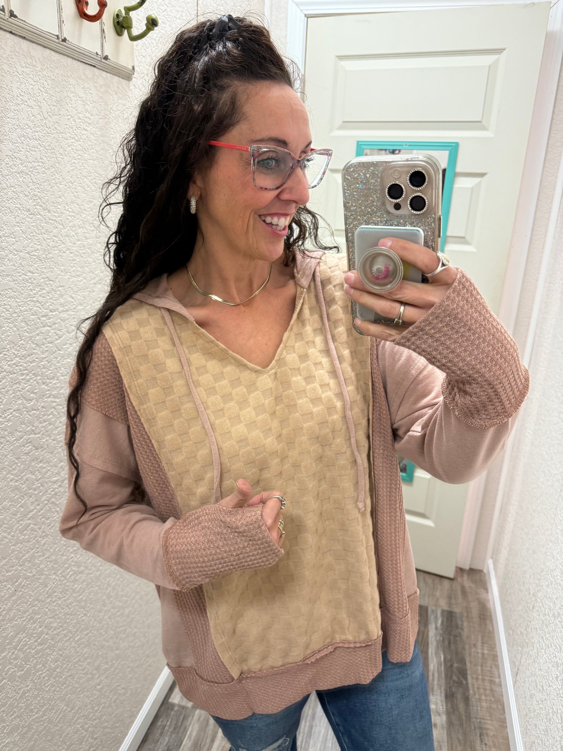 Crafted from a soft brushed checker waffle knit, the Hope hoodie boasts a sophisticated top block cut and edgy finishing detail. Enhance your wardrobe with this expertly designed and versatile piece.