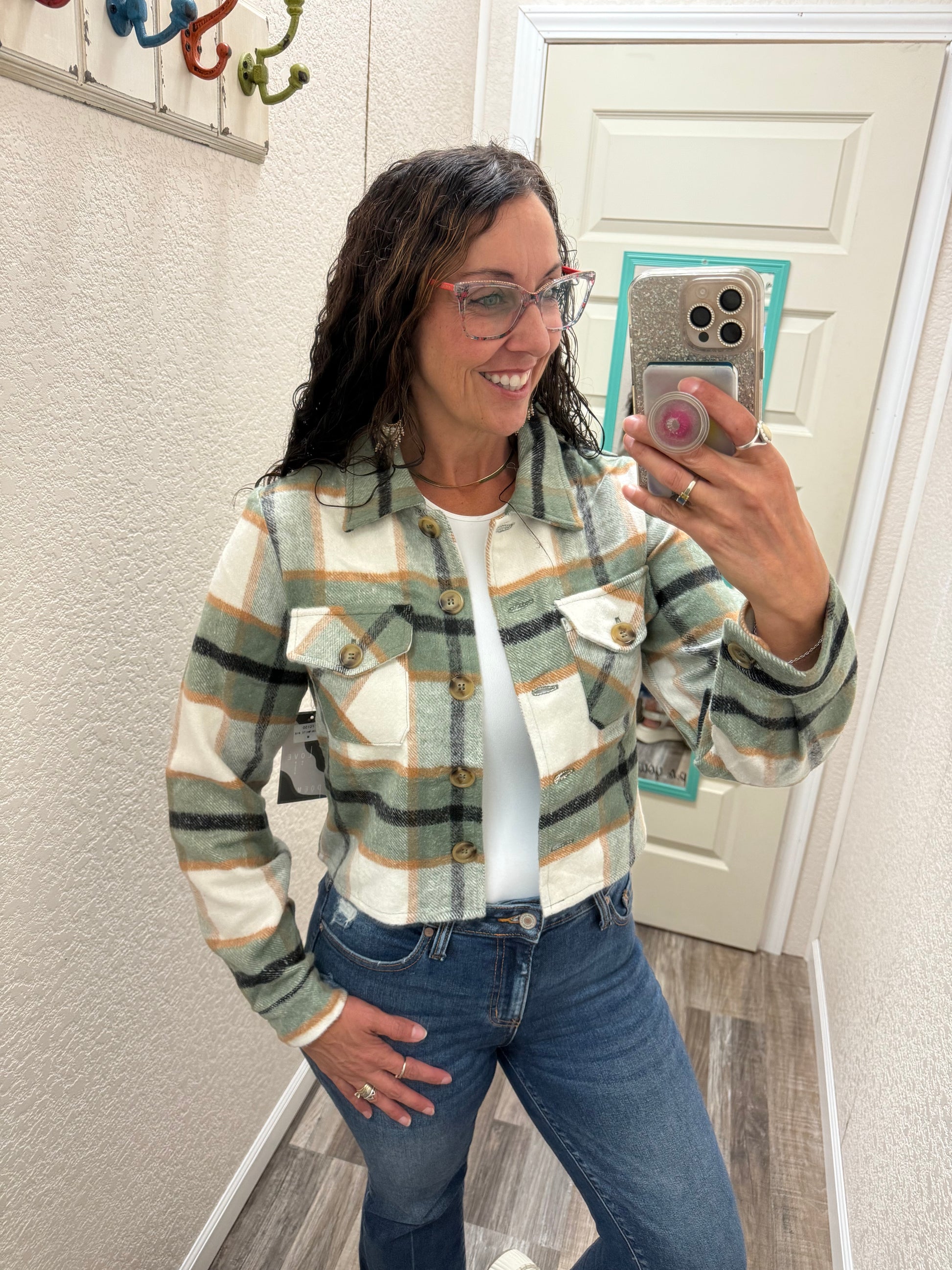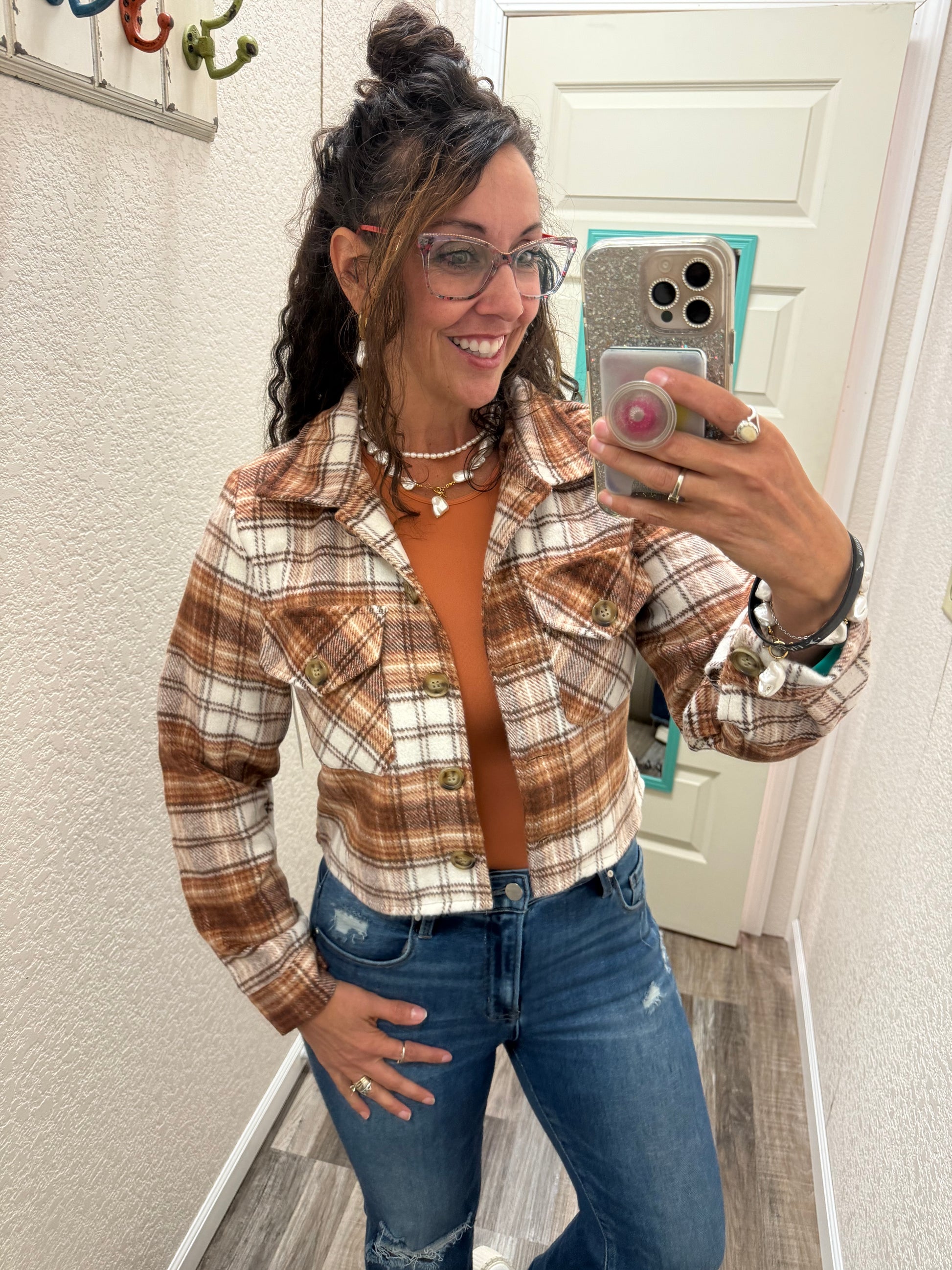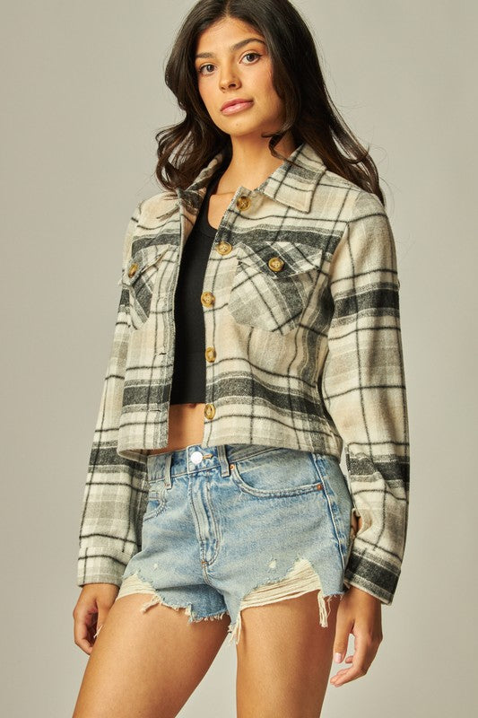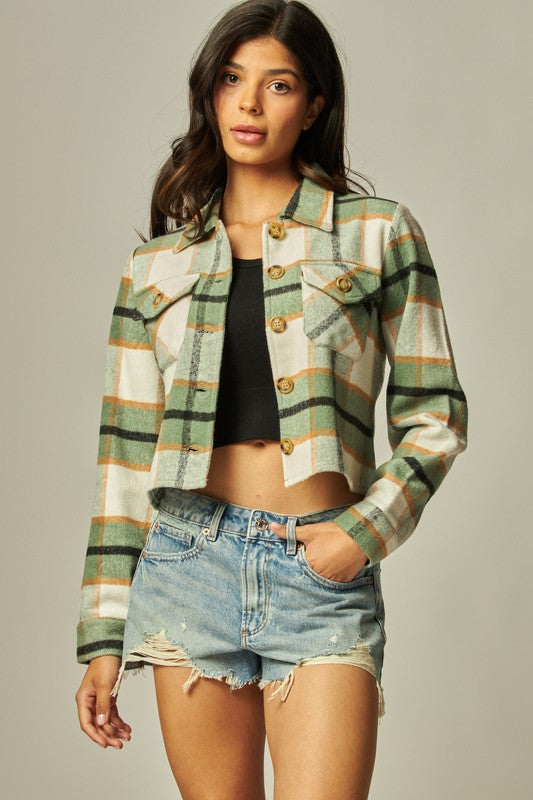 The Shania Cropped Flannel Shacket is a stylish and versatile addition to any wardrobe. Made with soft and cozy plaid flannel, this cropped jacket can be worn as a button-down or layered over your outfit. Perfect for cool weather, this shacket is both functional and fashionable.