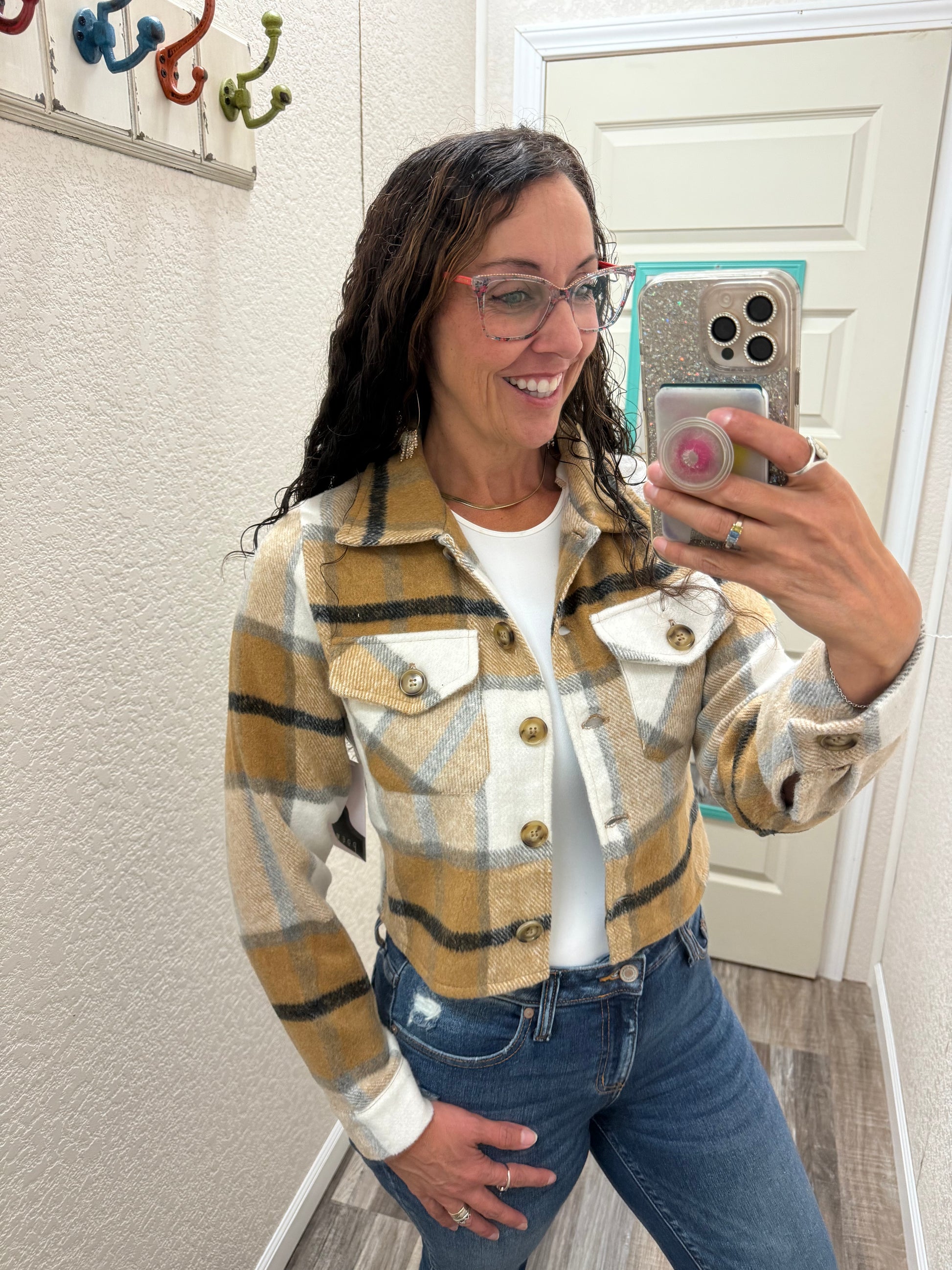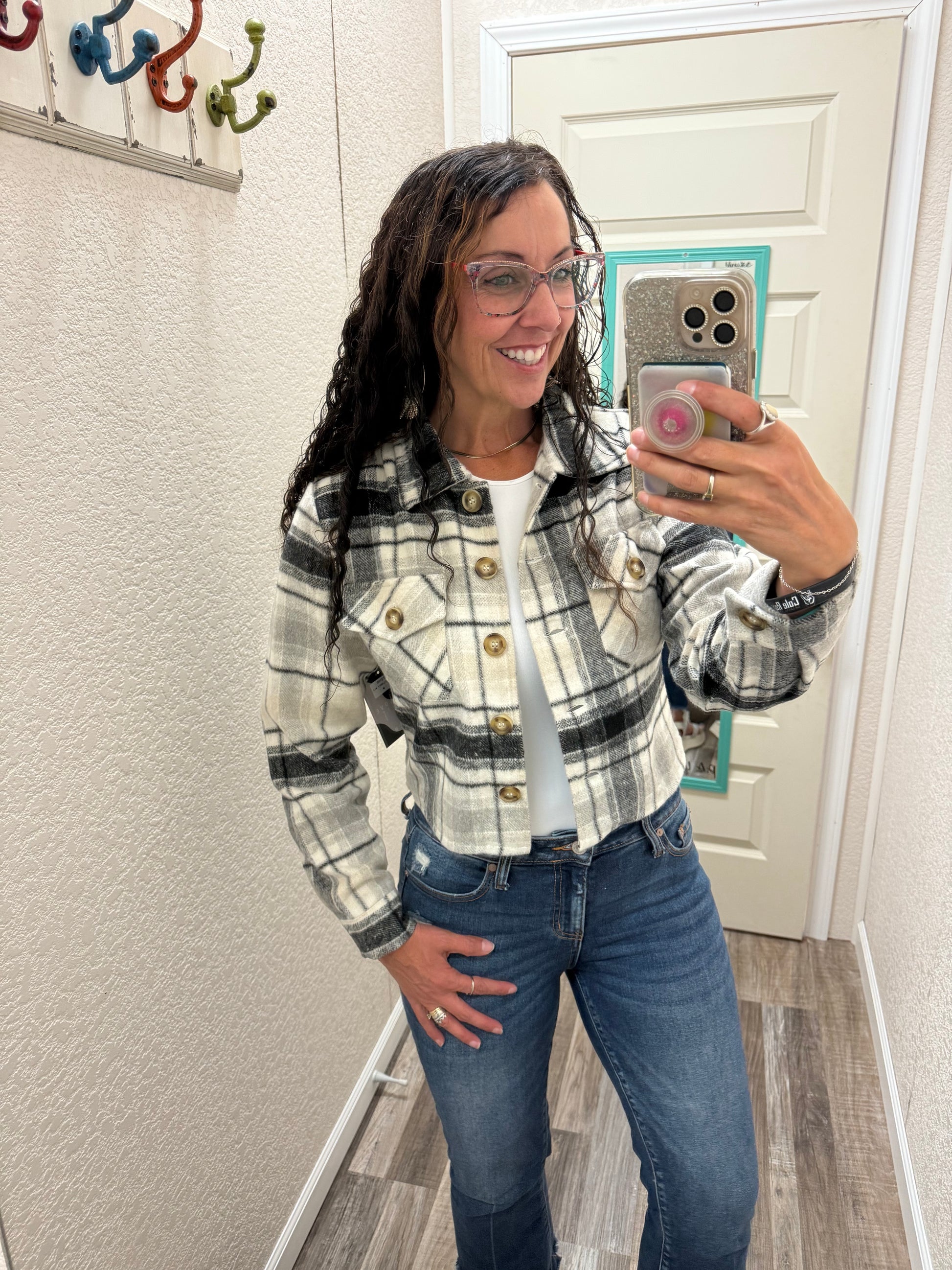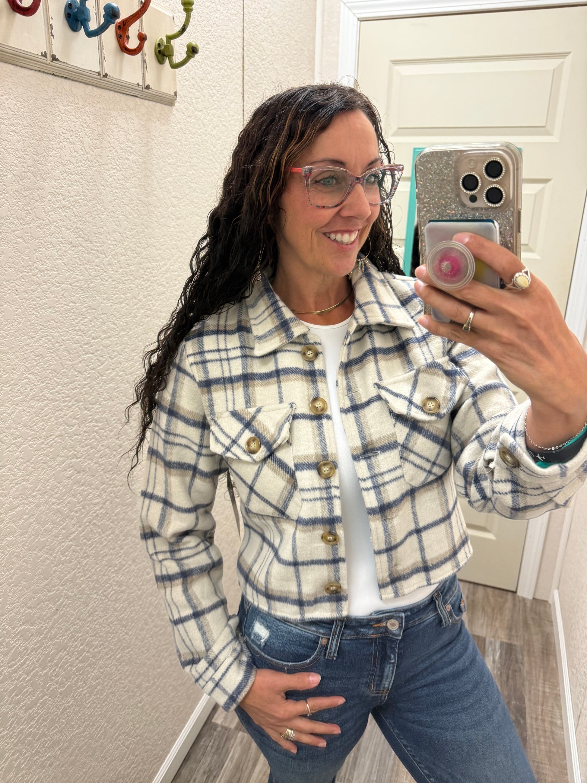 The Shania Cropped Flannel Shacket is a stylish and versatile addition to any wardrobe. Made with soft and cozy plaid flannel, this cropped jacket can be worn as a button-down or layered over your outfit. Perfect for cool weather, this shacket is both functional and fashionable.