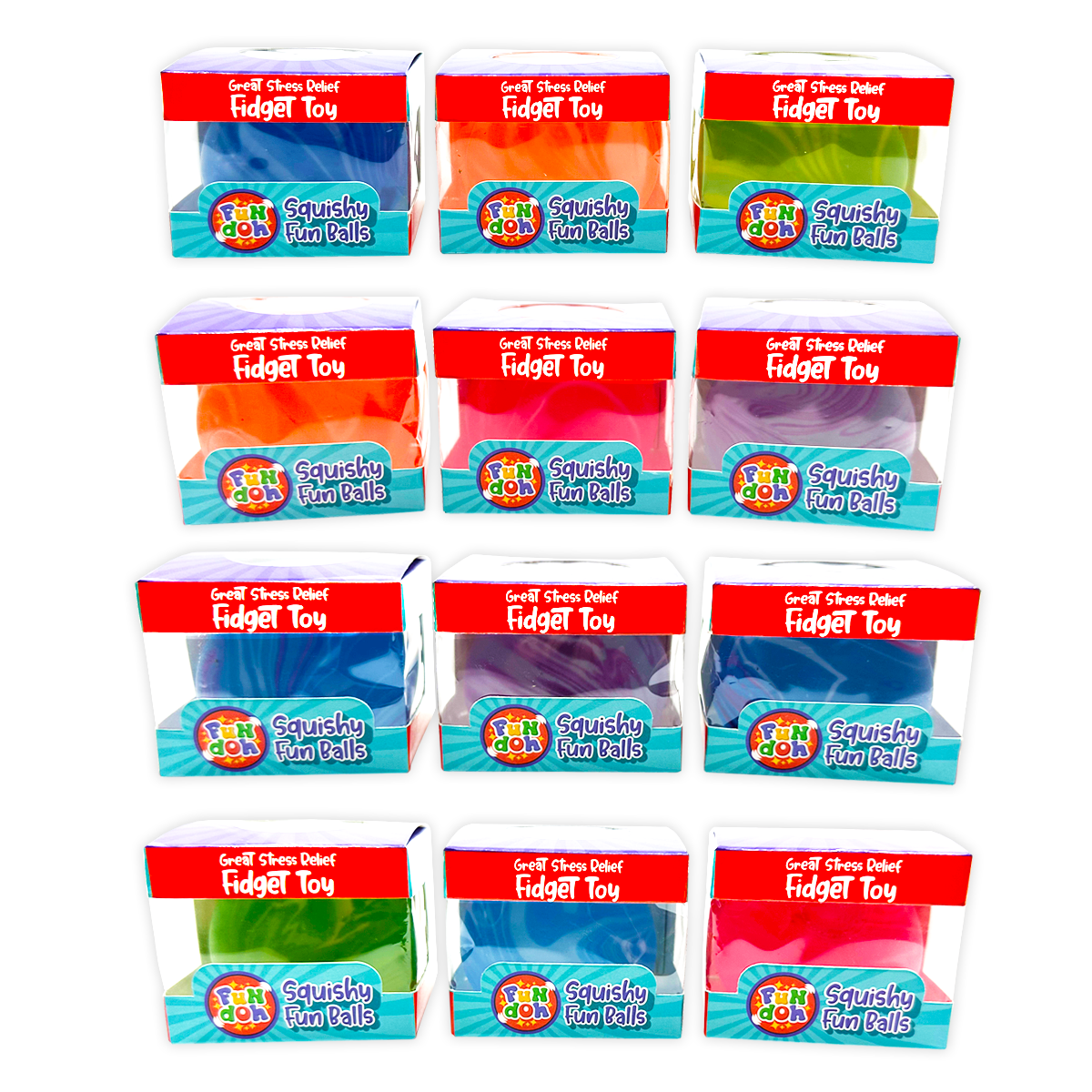 Get ready to squish, squeeze, and stretch your stress away with our Fun Doh Squishy Fun Balls! This display includes 12 colorful balls designed to provide endless hours of fidgeting fun. Say goodbye to stress and hello to relaxation with these delightful stress relief toys. Ages 3+.