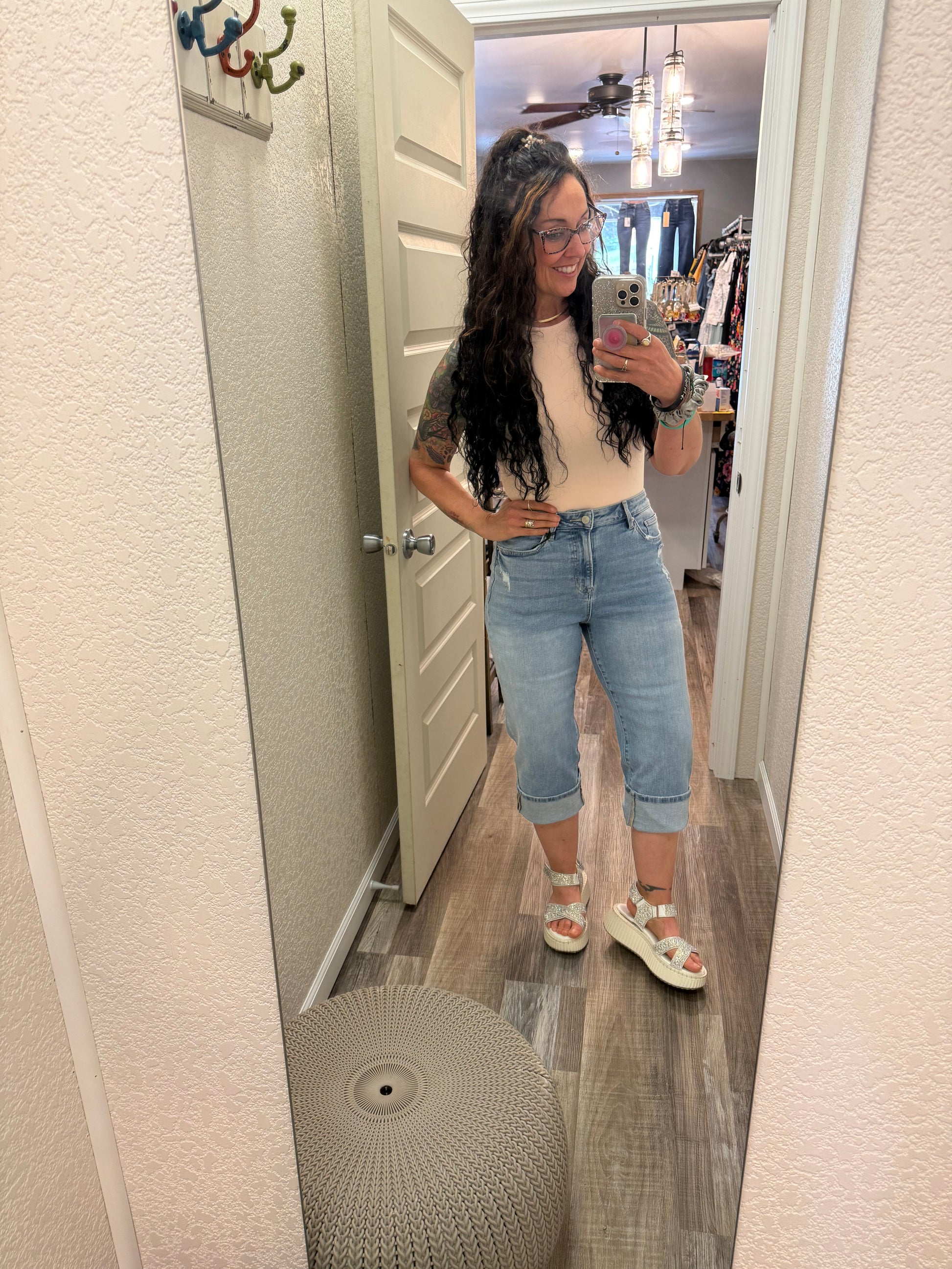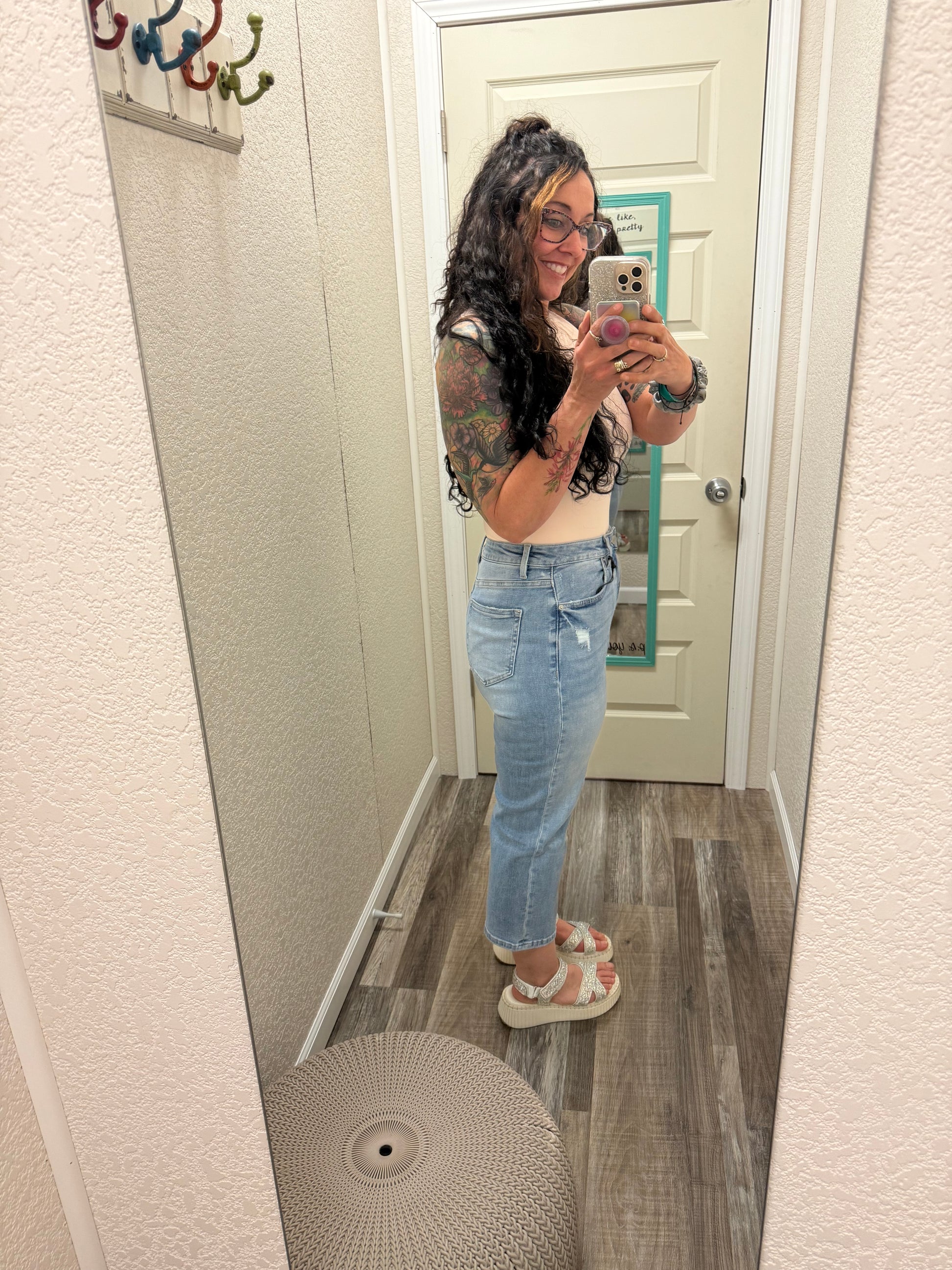 "These Sue Straight Capri Mica Jeans offer a classic straight leg fit that flatters any body type. Designed for versatile styling, they can easily be dressed up or down. Made with high-quality denim for comfort and durability, these jeans are a must-have staple in any wardrobe."