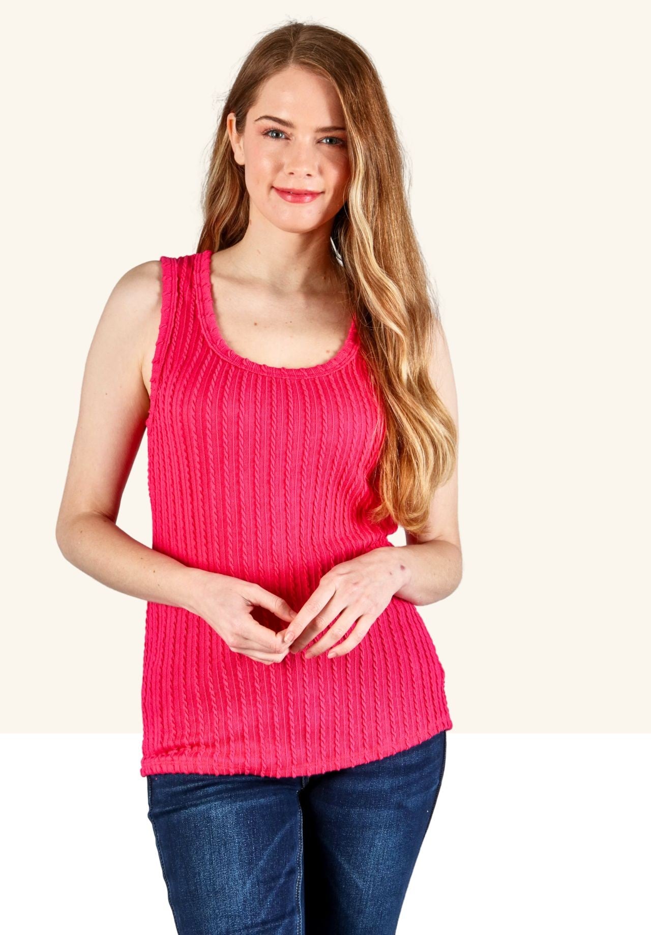 This expertly crafted textured tank combines style with comfort through its premium stretchy knit construction. The specialized poly-rayon-spandex blend (66% polyester, 33% rayon, 1% spandex) offers exceptional flexibility and shape retention while maintaining a luxurious feel against the skin. The solid design ensures versatile styling options for any wardrobe.