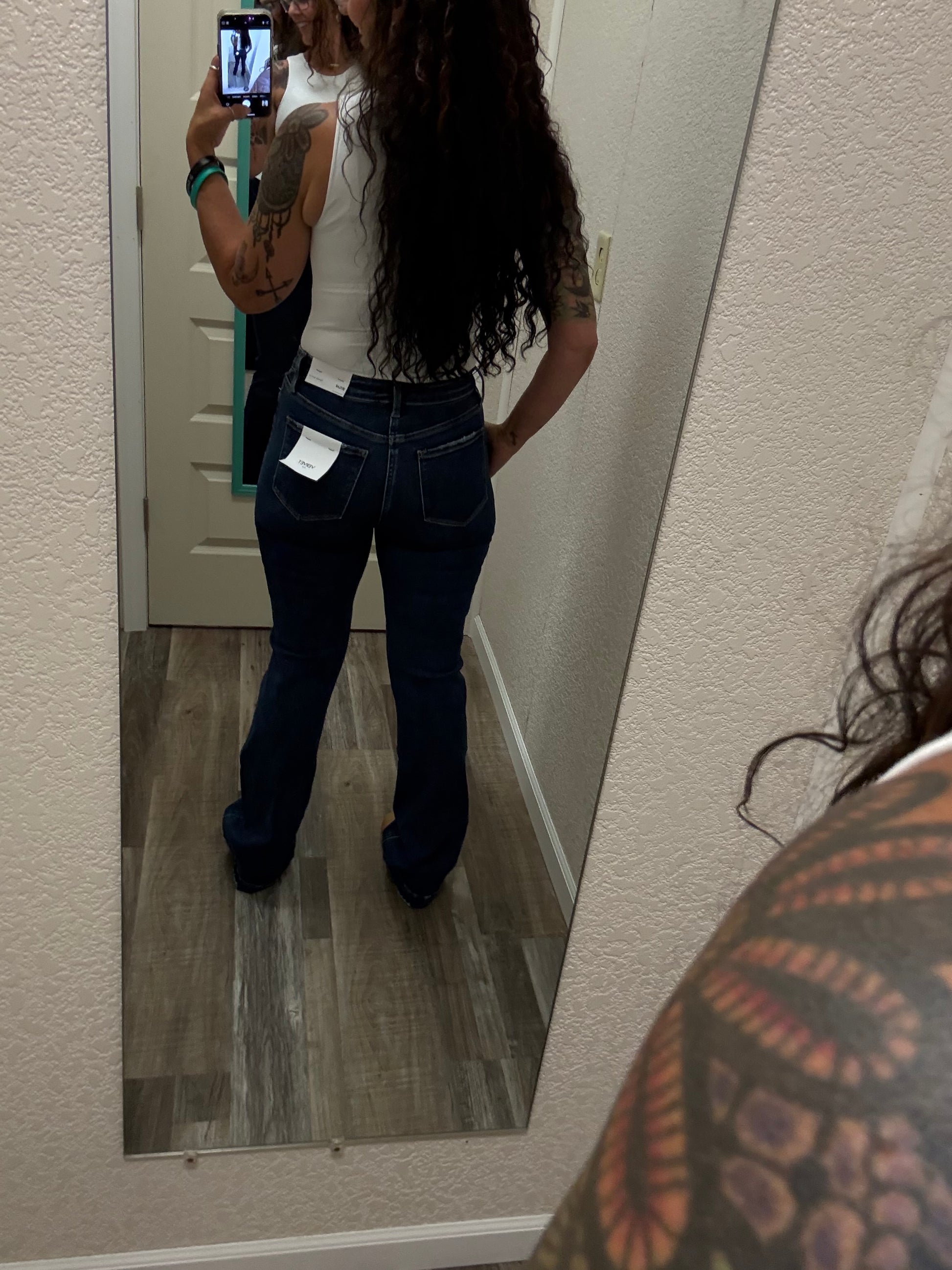 Elevate your denim game with our Sustainability High Rise Trouser Hem Bootcut Vervet Jeans. Made with comfort stretch denim, these full-length jeans feature a high rise waist and a trouser hem for a flattering, versatile look. With a F. rise of 10", inseam of 34", and leg opening of 18 1/2", these jeans provide the perfect fit. Crafted from 93% cotton, 5% polyester, and 2% spandex for ultimate comfort and durability.
