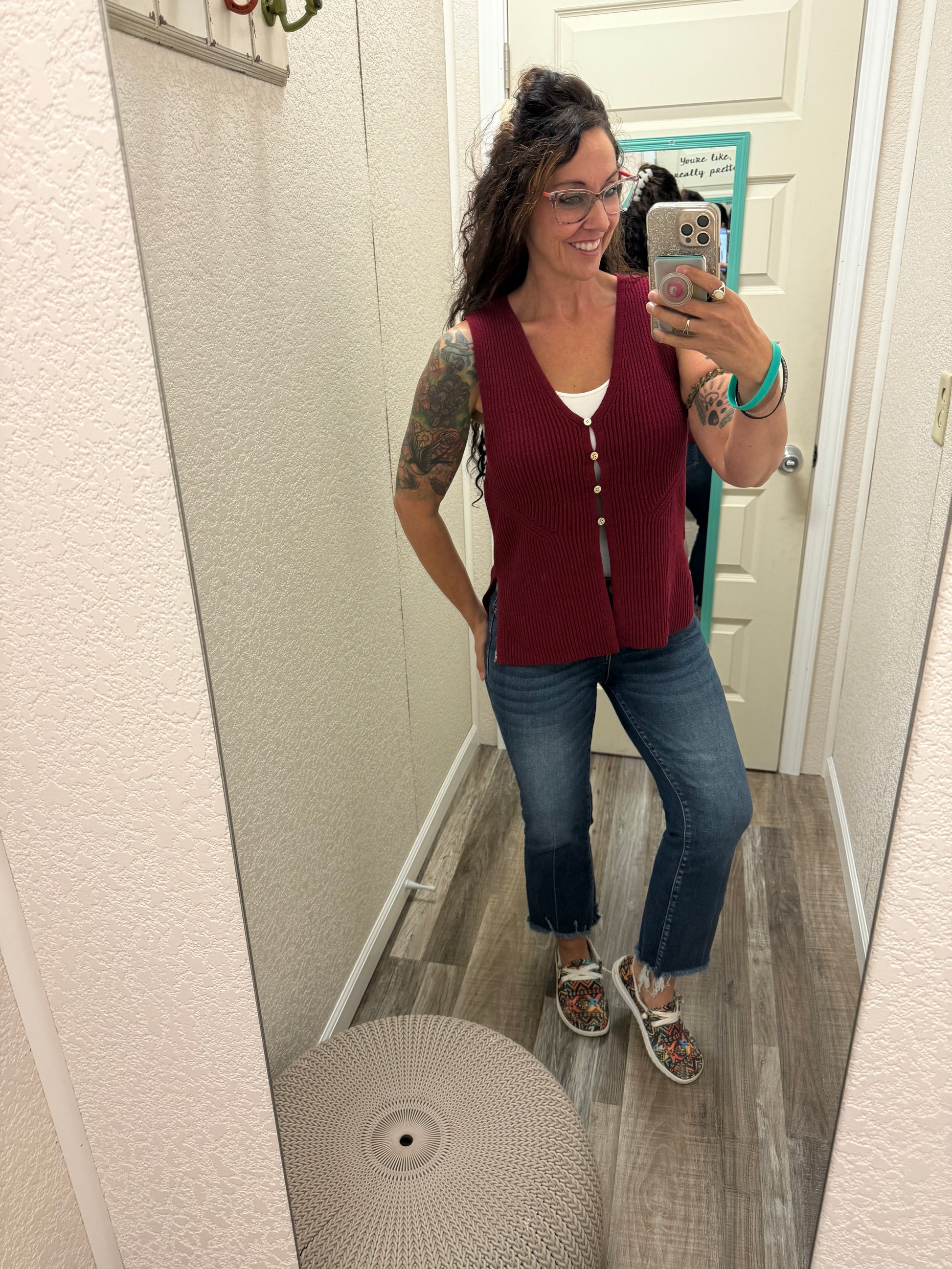 The Trista Sweater Vest features a classic four-button design that adds a touch of sophistication to any outfit. Made with high-quality materials, this vest is both comfortable and stylish, making it a versatile addition to your wardrobe. Elevate your look with this must-have piece.