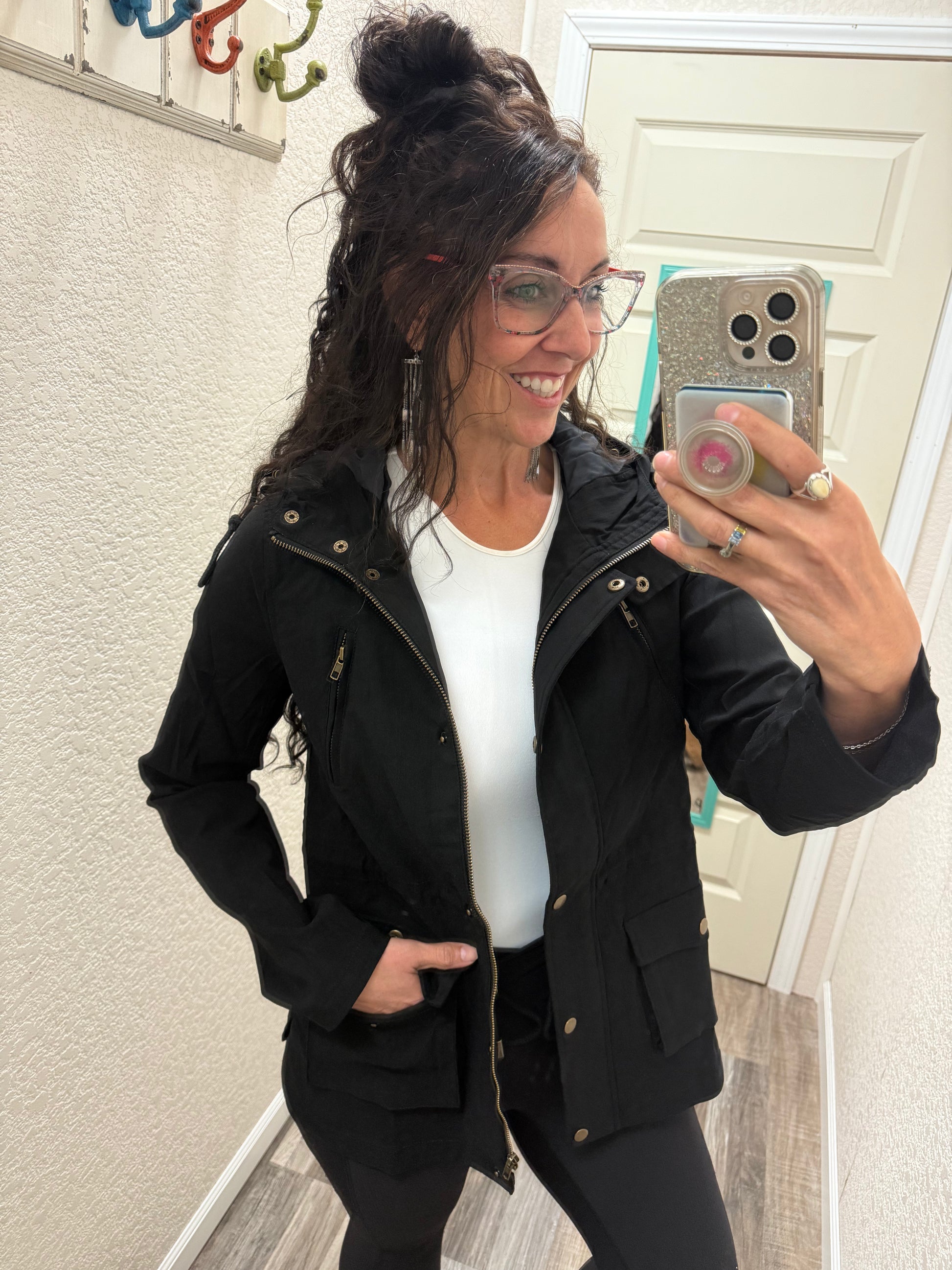 The Trust Me Jacket is an expertly designed jacket made for your active lifestyle. With its stretch fabric, adjustable waist, and multiple pockets, this jacket provides both comfort and functionality. The hood, zipper, and snaps add extra protection from the elements. Trust us, this jacket will be your go-to for any adventure.