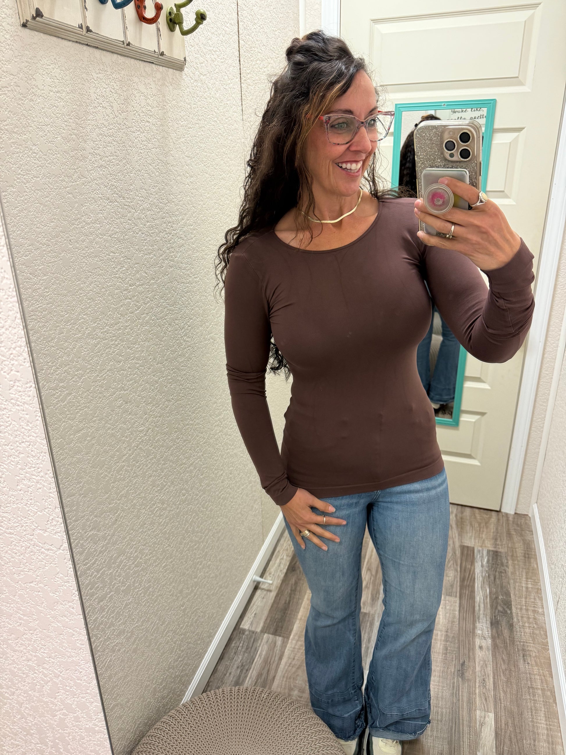 The Trust Me Long Sleeve Top is the perfect addition to your wardrobe. Made from seamless jersey, this top offers a comfortable and stylish fit that is perfect for any occasion. With its long sleeve design, it's a great choice for cooler weather.