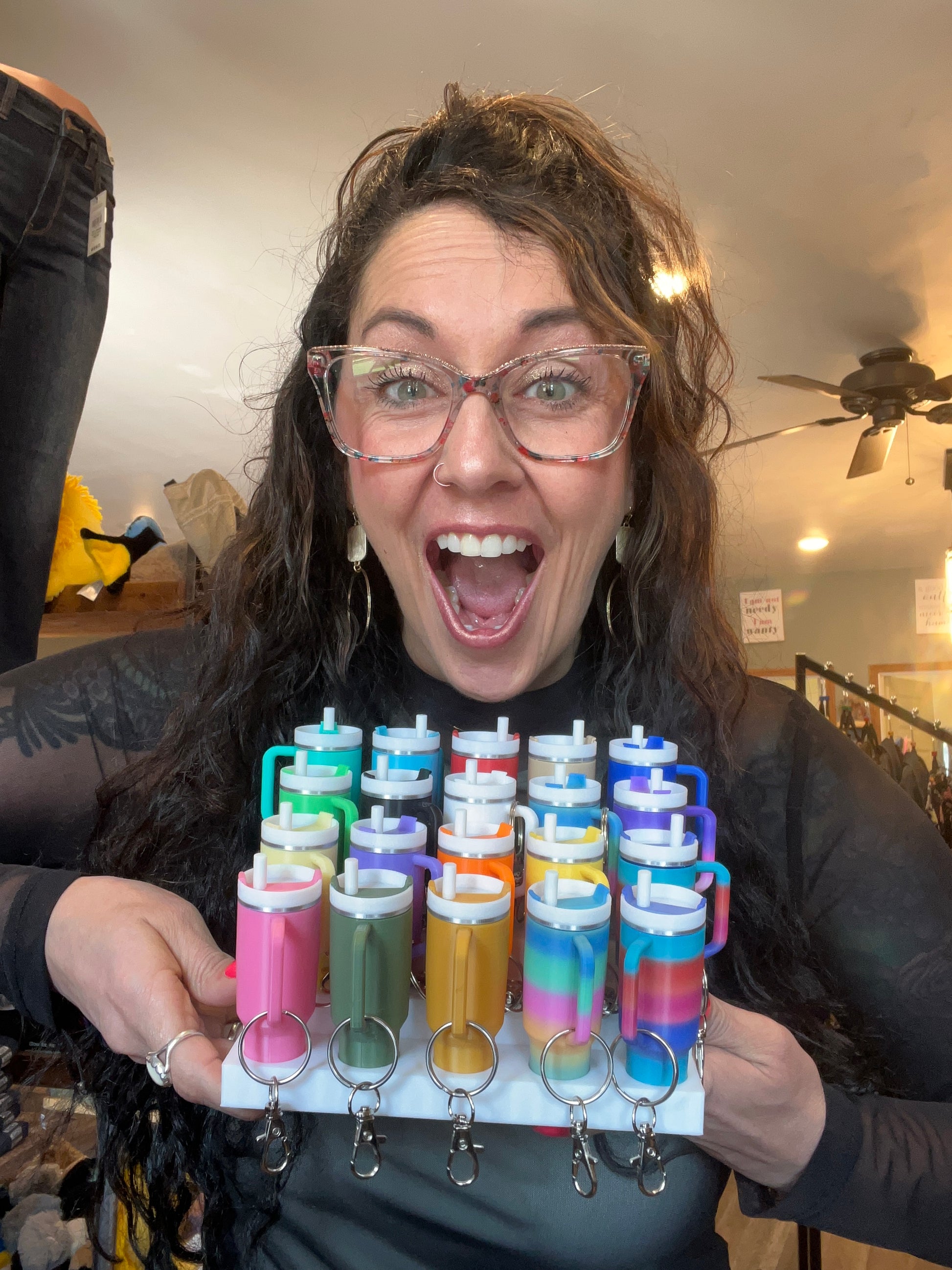 This Tumbler Keychain Chapstick Holder is a stylish and convenient accessory for your everyday needs. Never lose your chapstick again with its secure keychain attachment, while keeping your favorite lip balm close at hand. Perfect for on-the-go use, you'll always have moisturized lips with this must-have accessory.