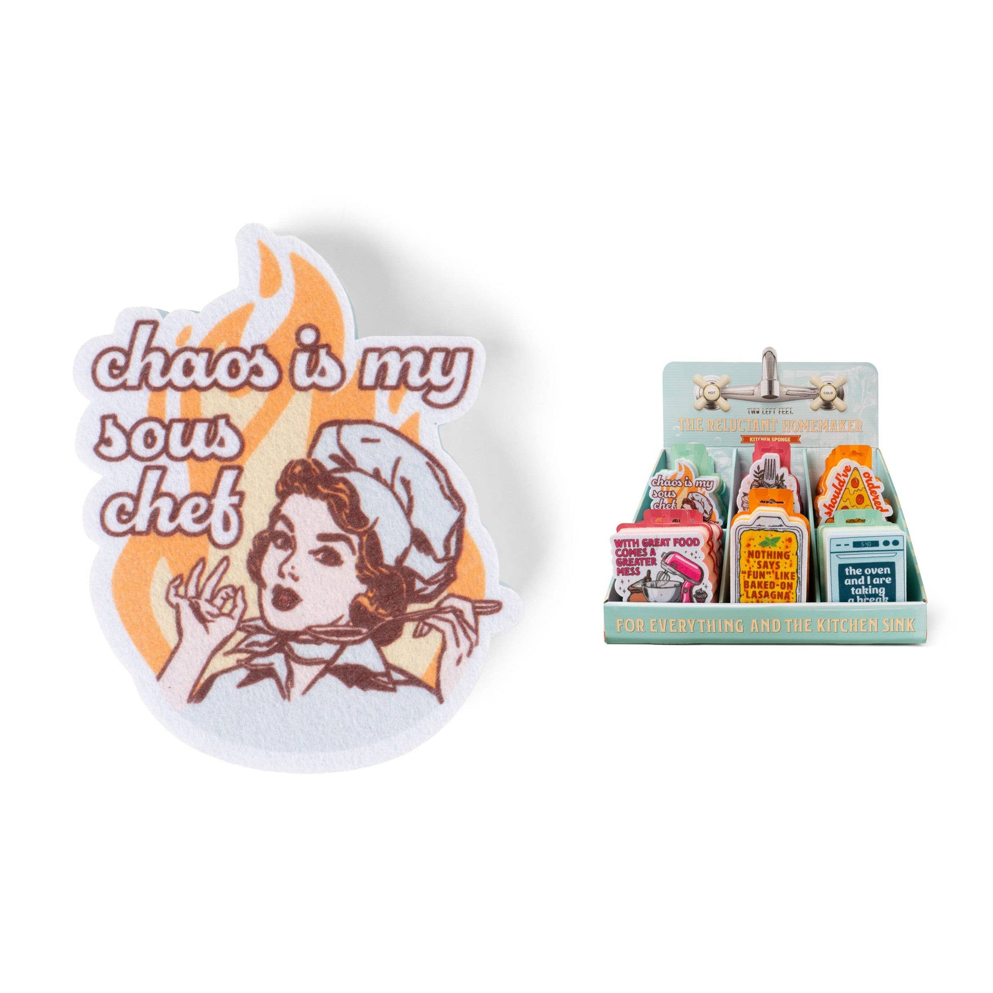 Ready for everything and the kitchen sink, these super absorbent sponges feature two types of scrub pads for light and tough messes. Available in six relatable, tongue-in-cheek designs for gifting and impulse purchases. Quick Features: Cheeky, quotable sponges Super absorbent Non-scratch pad for light scrubbing Durable scrubbing pad for tough messes