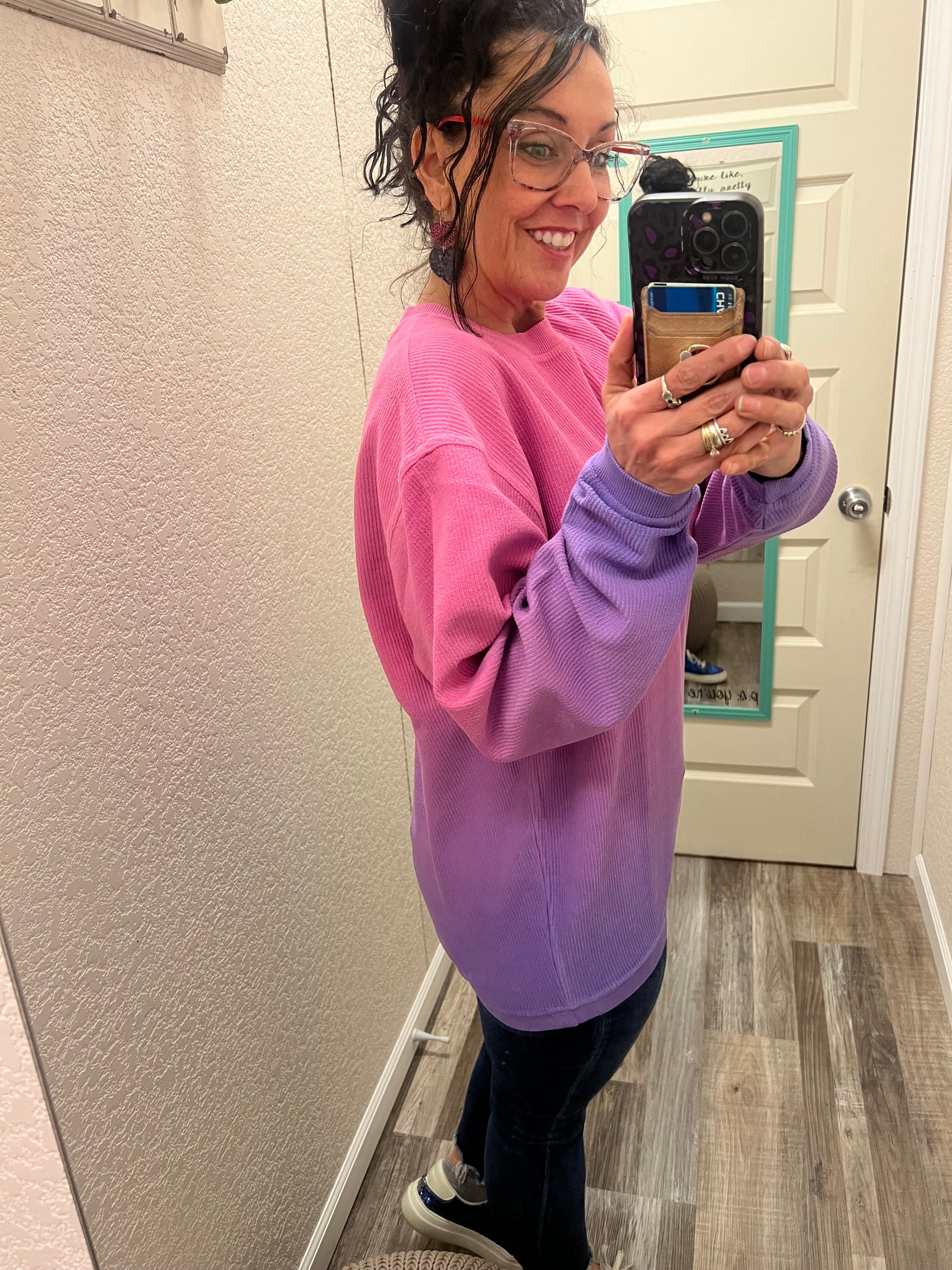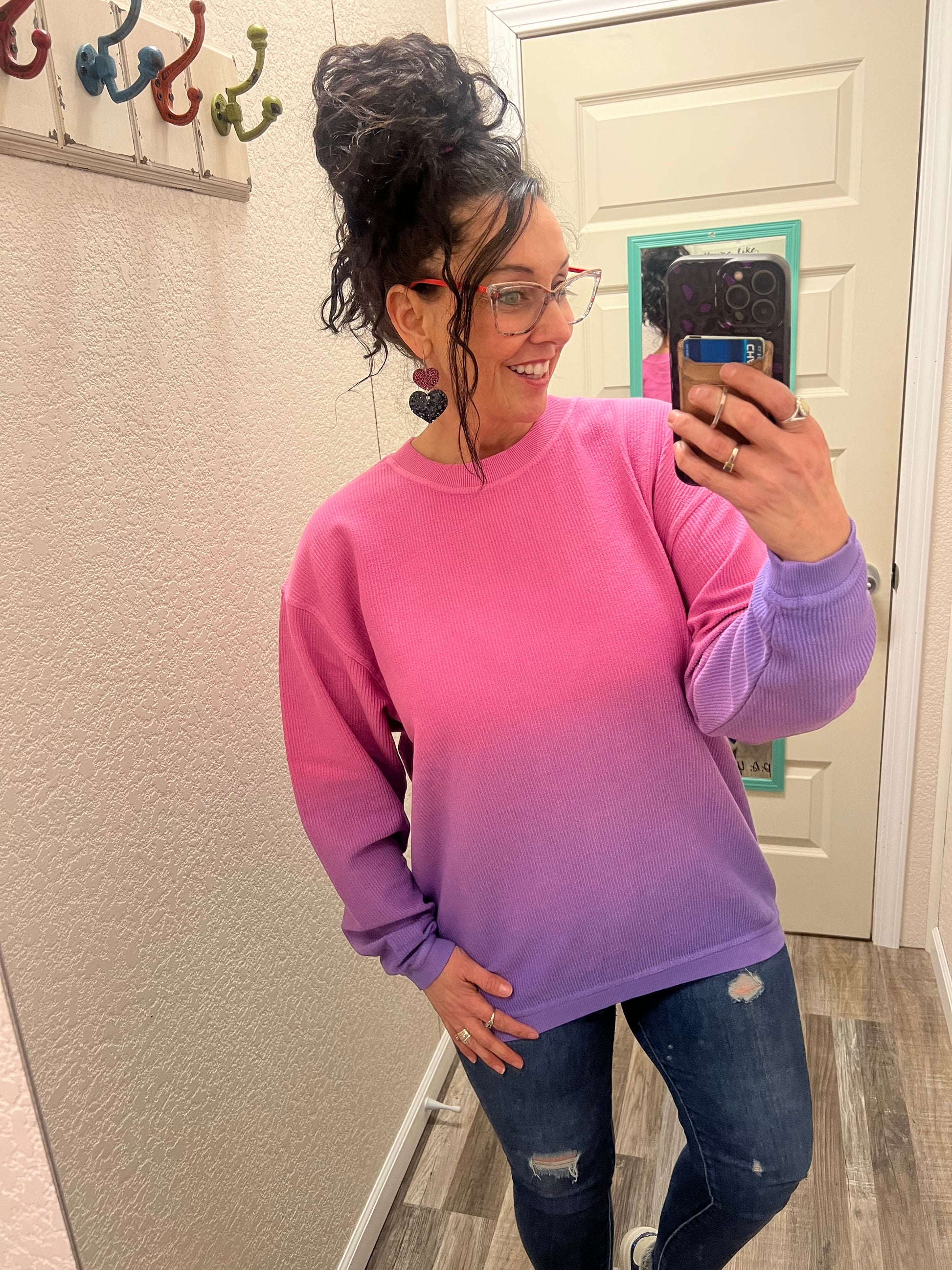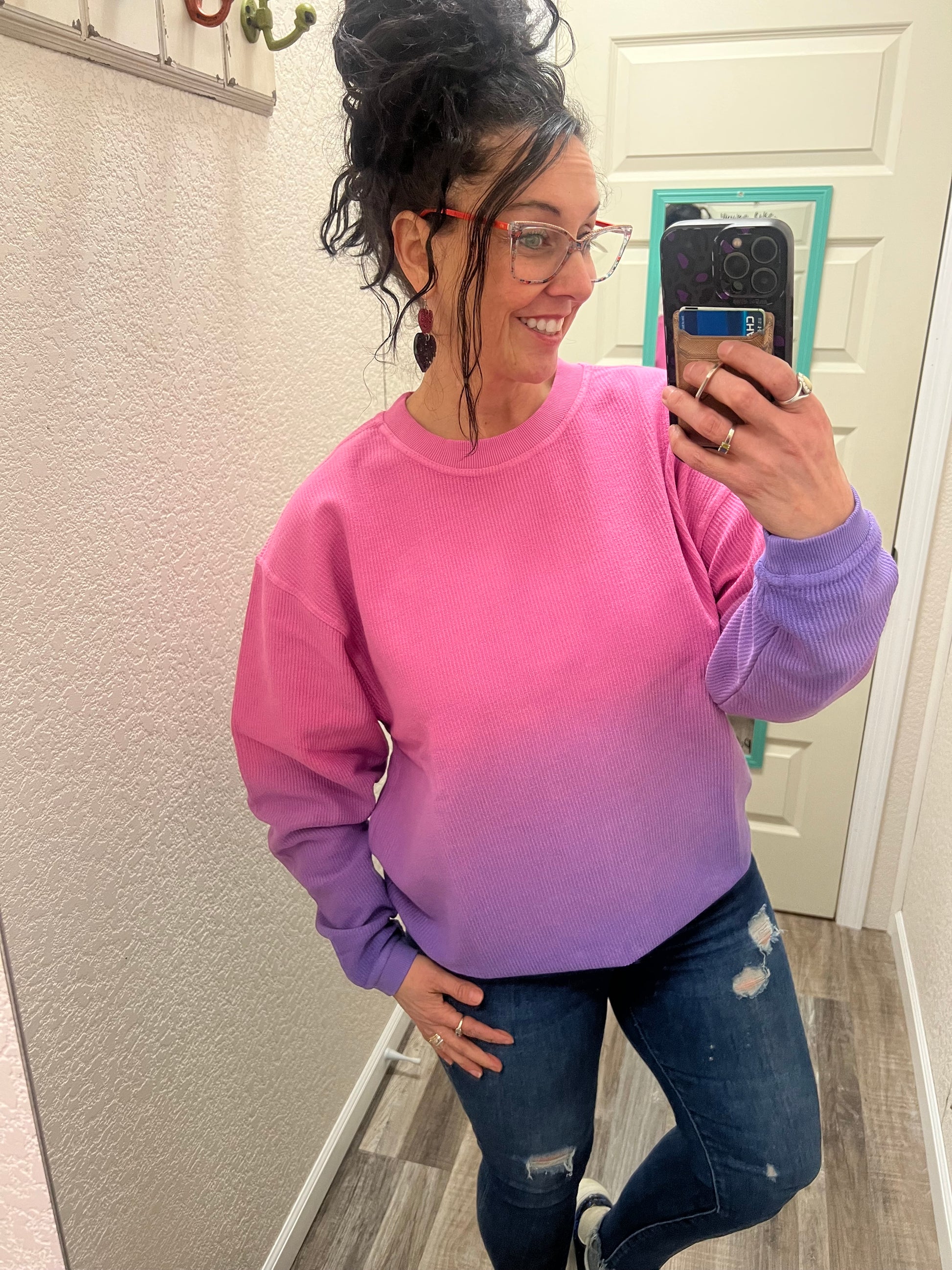 Expertly crafted with a custom dye and snow wash technique, the Unicorn Kisses Cozy Corded Crew offers a vintage look and unbeatable softness. Made from 100% preshrunk cotton, this crew offers an oversized, cozy fit for ultimate comfort. Perfect for lounging or layering up in colder weather.
