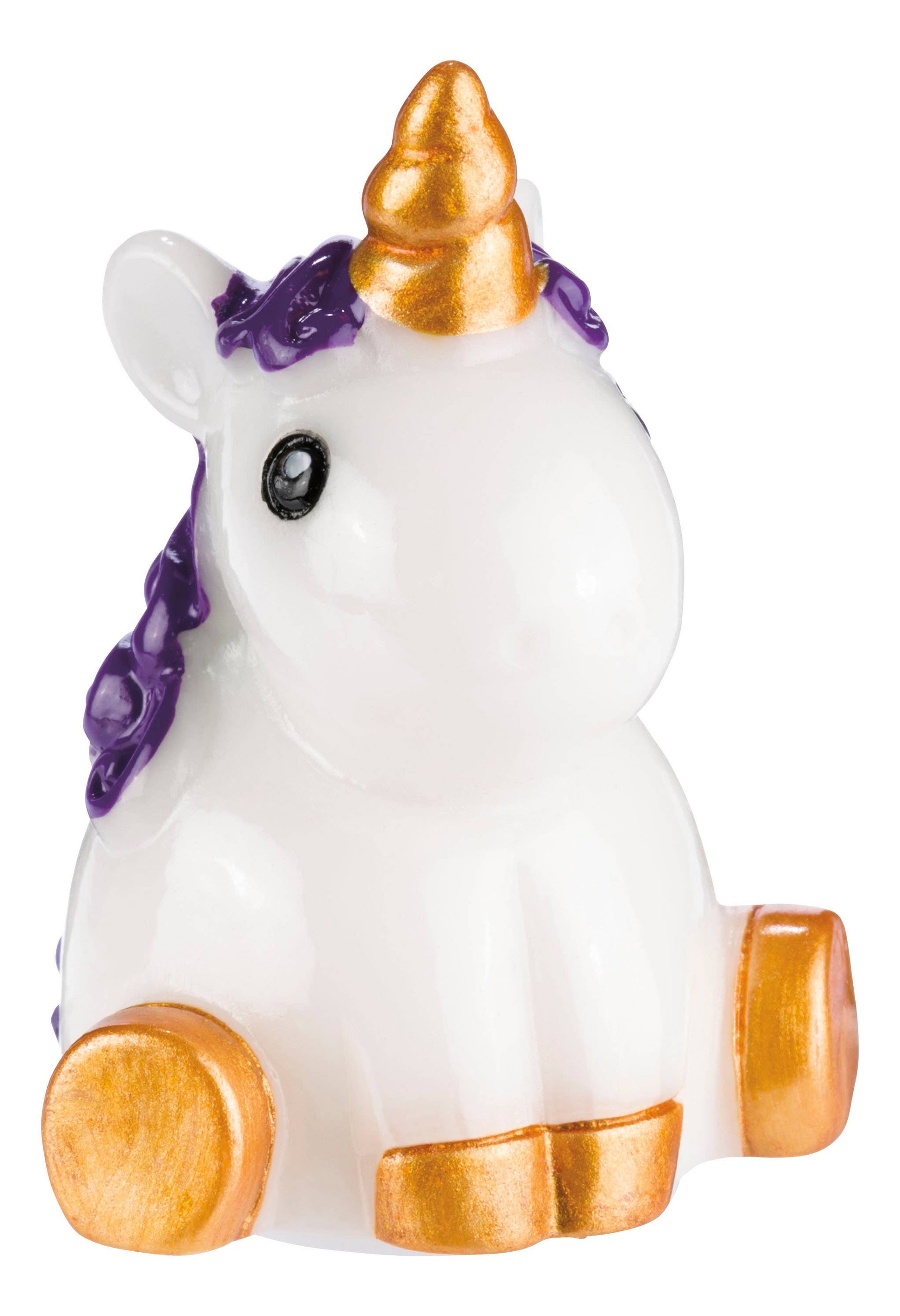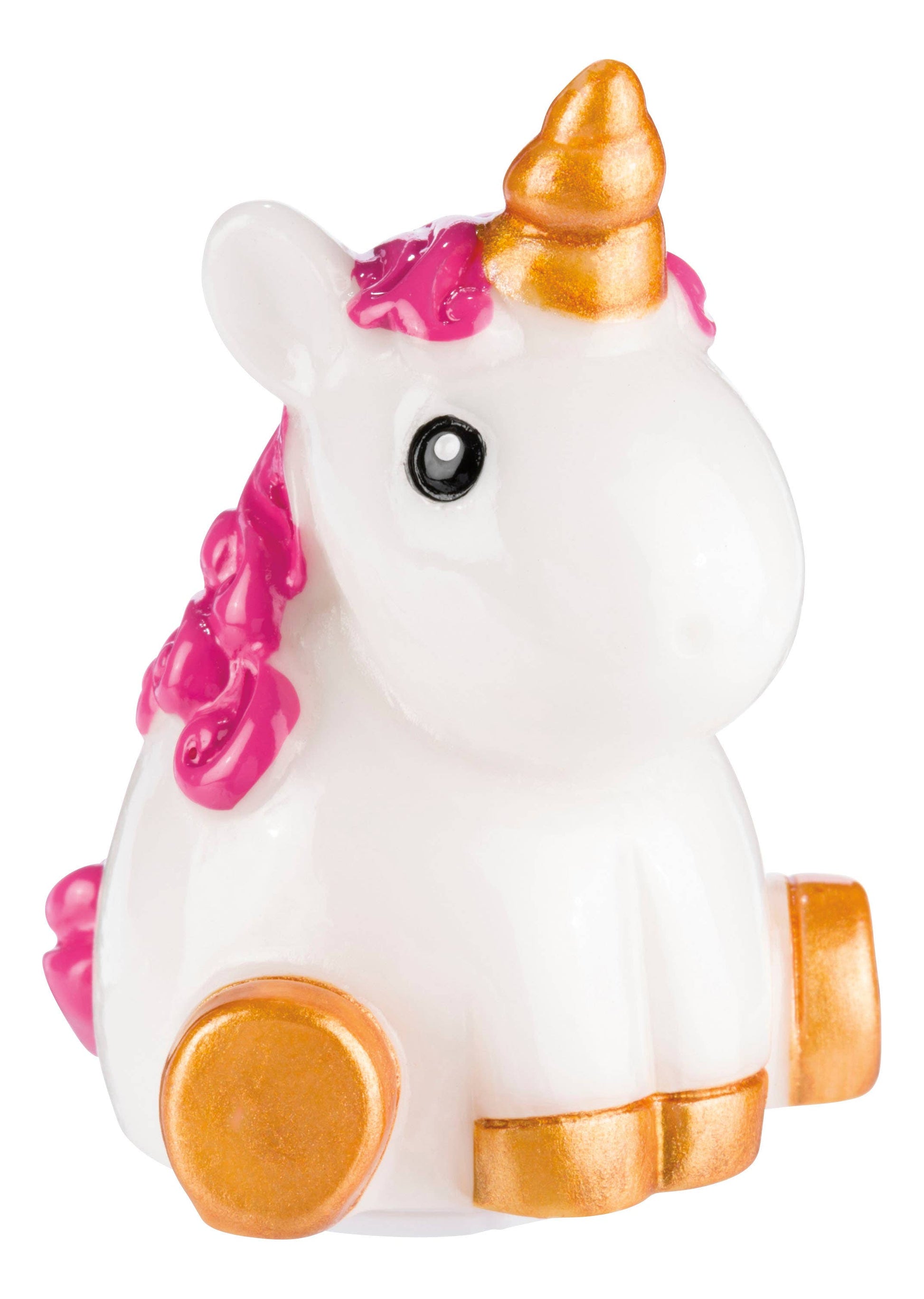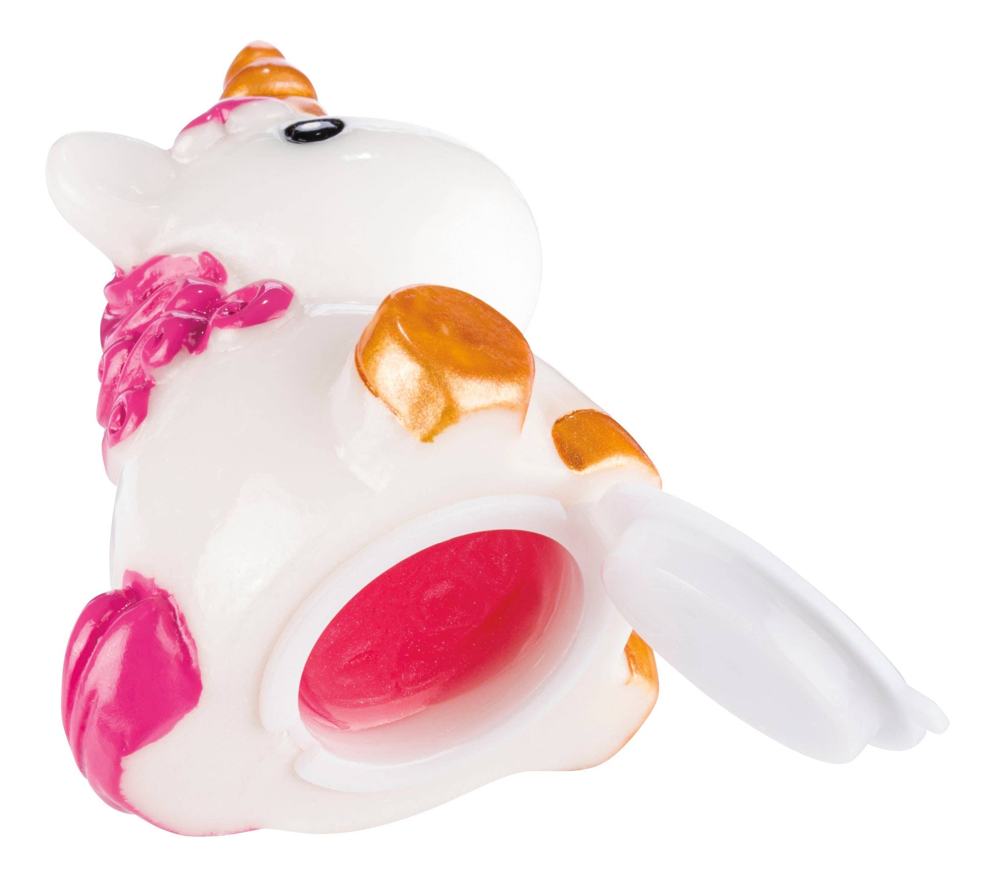 Unicorn Lip Gloss is a clear, kid-safe gloss packaged inside a beautiful 2-inch-tall plastic seated unicorn container. Each adorable unicorn has soft black eyes, a shiny white body, golden hooves, a gold spiral horn, and dark purple or pink manes. Each chubby unicorn holds 0.05 ounces of clear, lightly scented kid-safe lip gloss. Get an assortment of Unicorn Lip Gloss items with an 8.35 x 6.5-inch teal and rainbow display case. • Age Grade: 5+ •