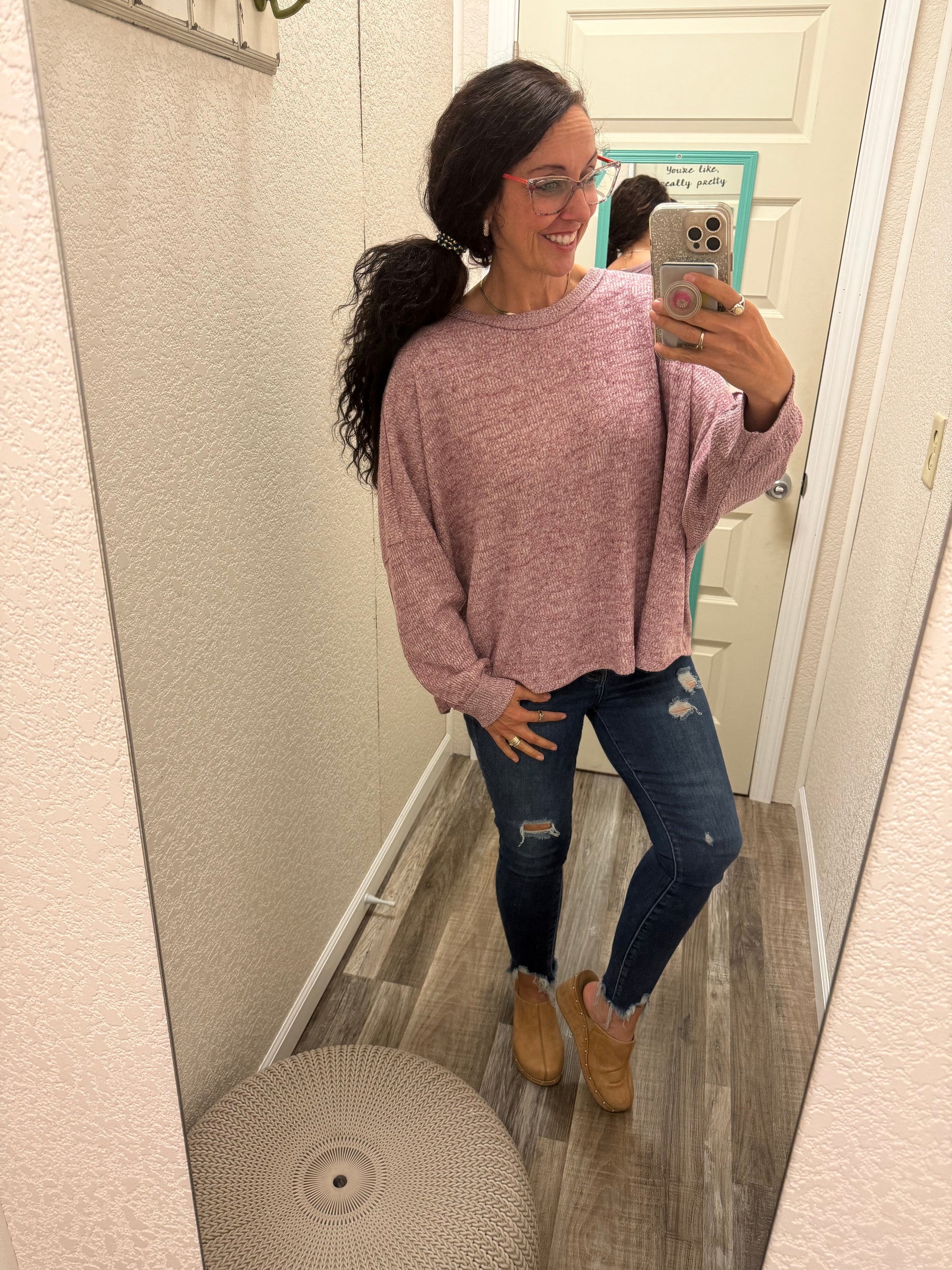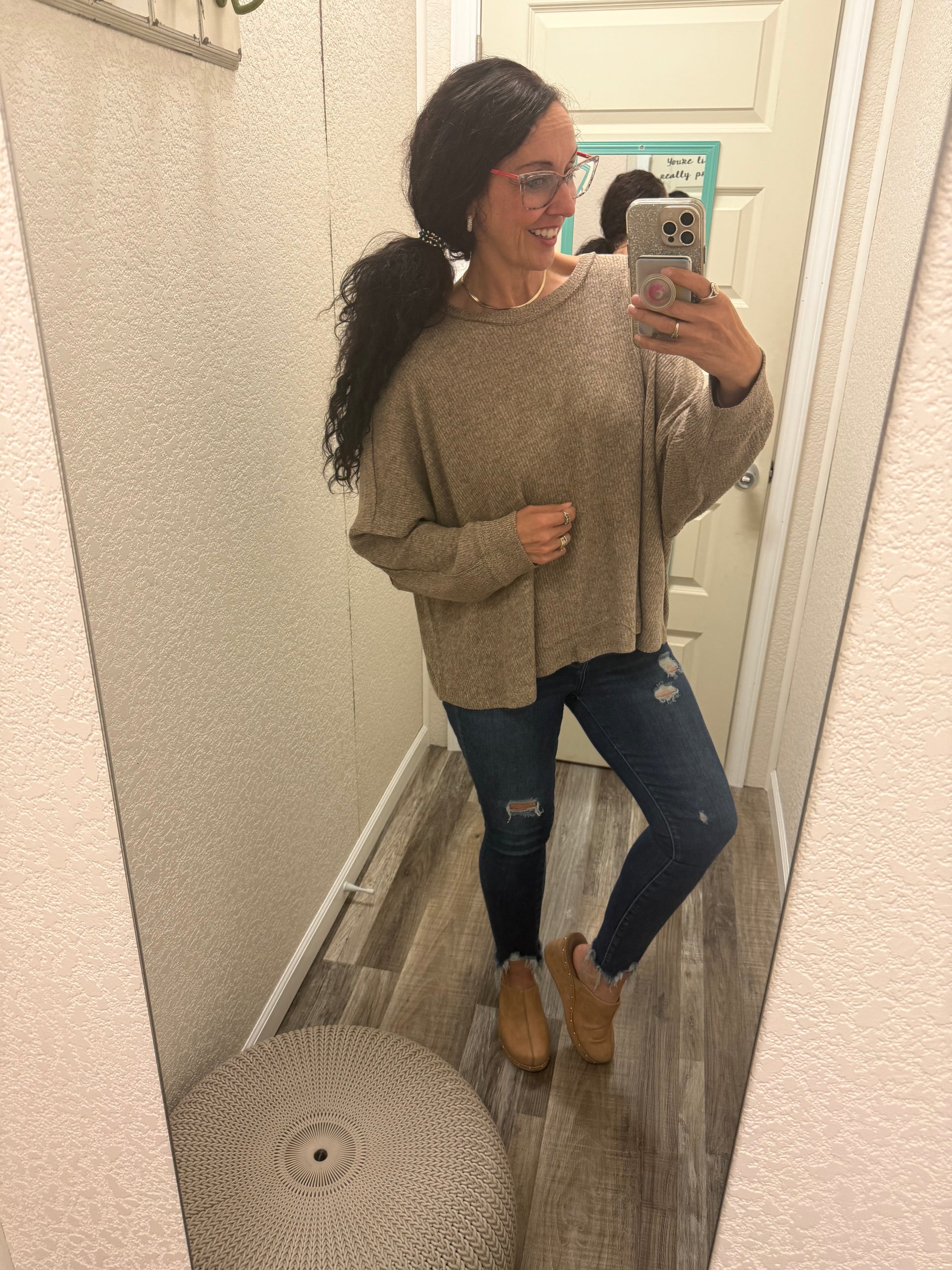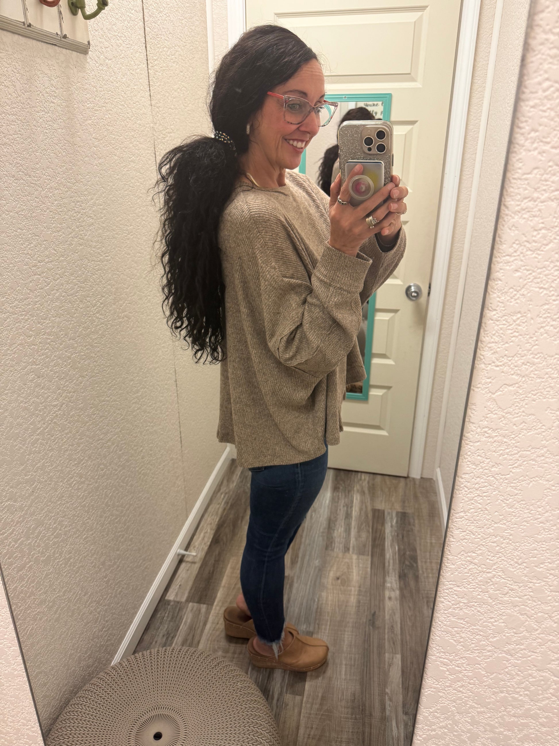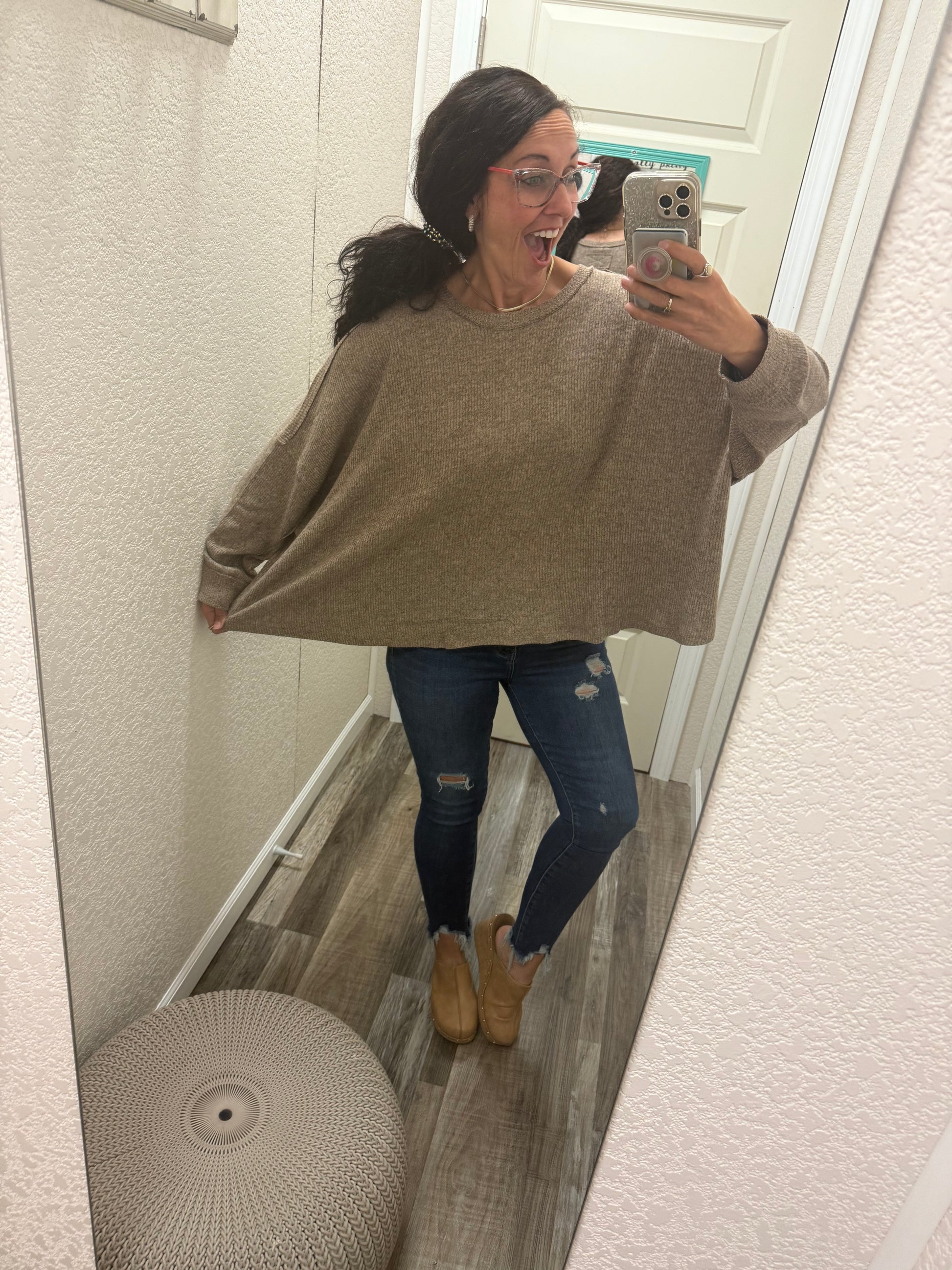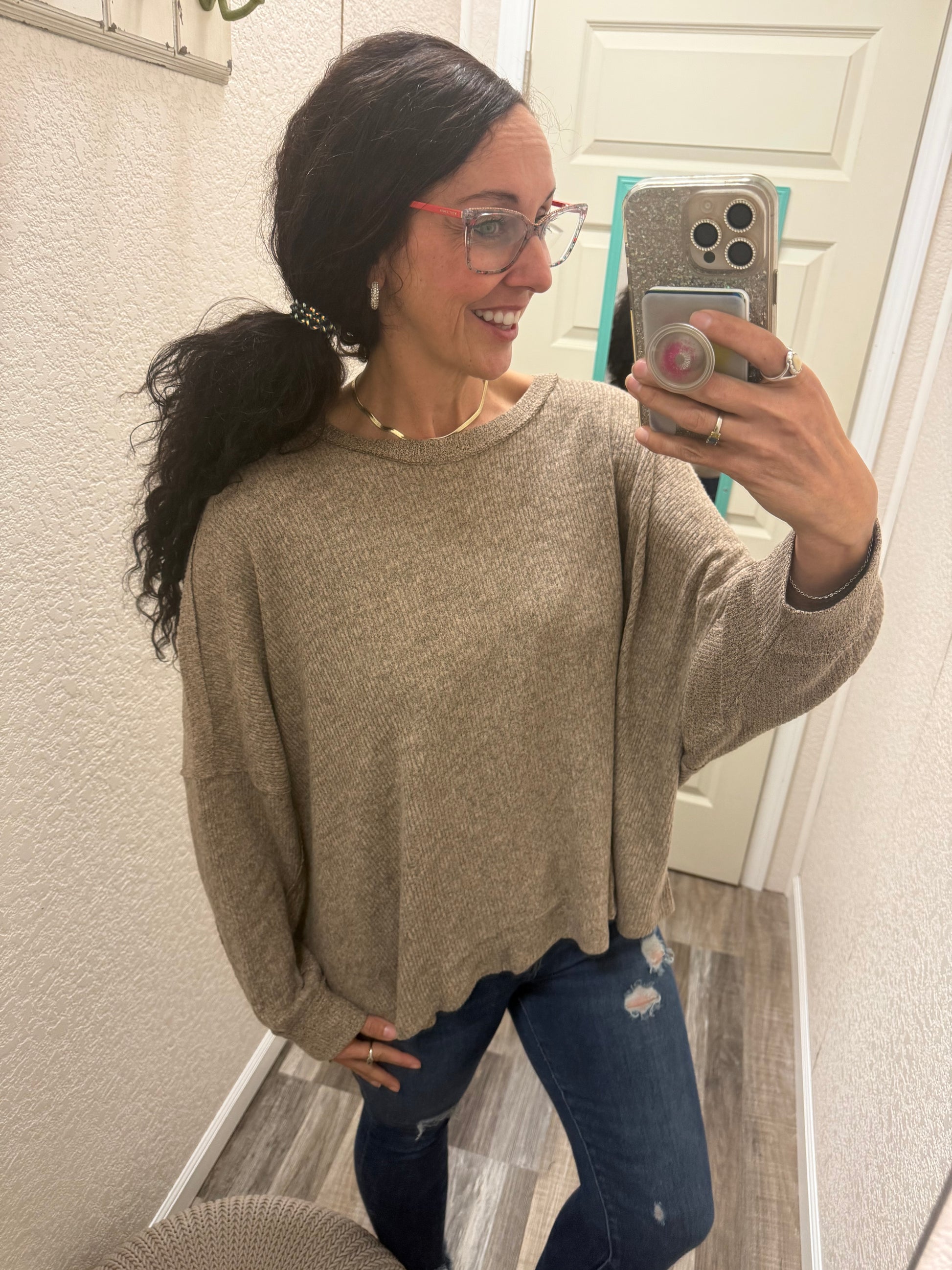 Hallie Oversized Long Sleeve Two Tone Solid Top