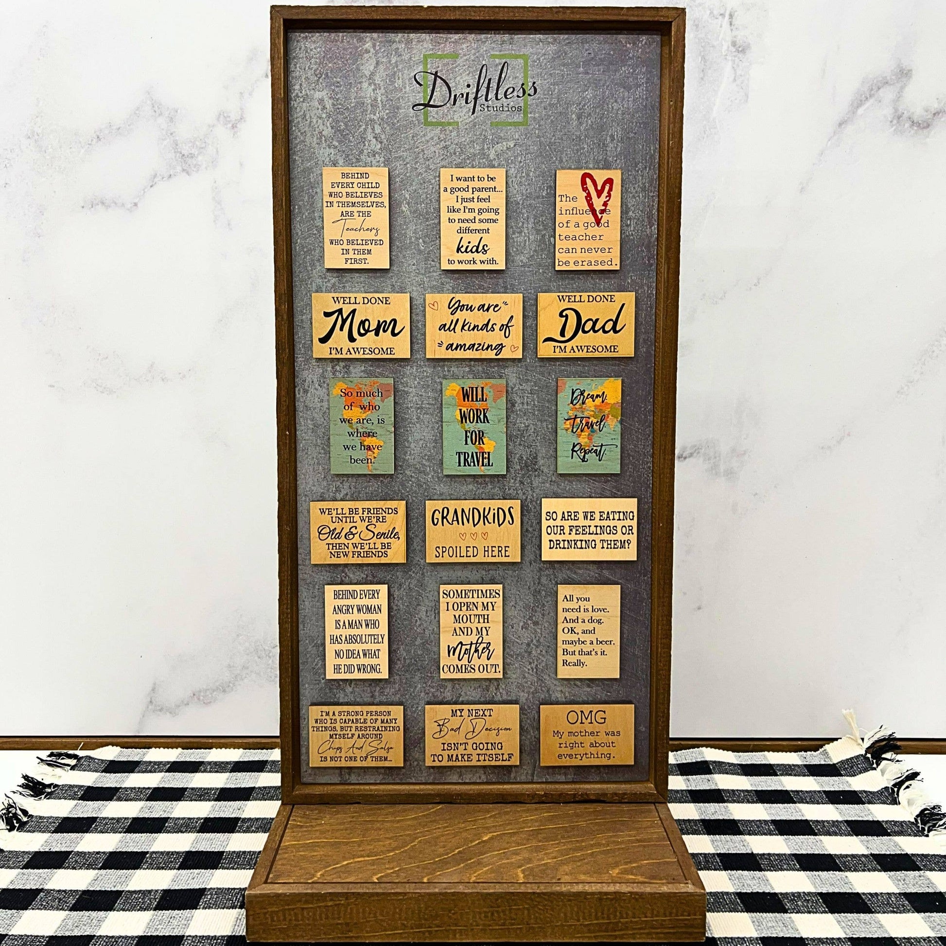 Wood Magnets are 2x3 inches with the sentiment printed directly onto the wood so it will never peel or fade.